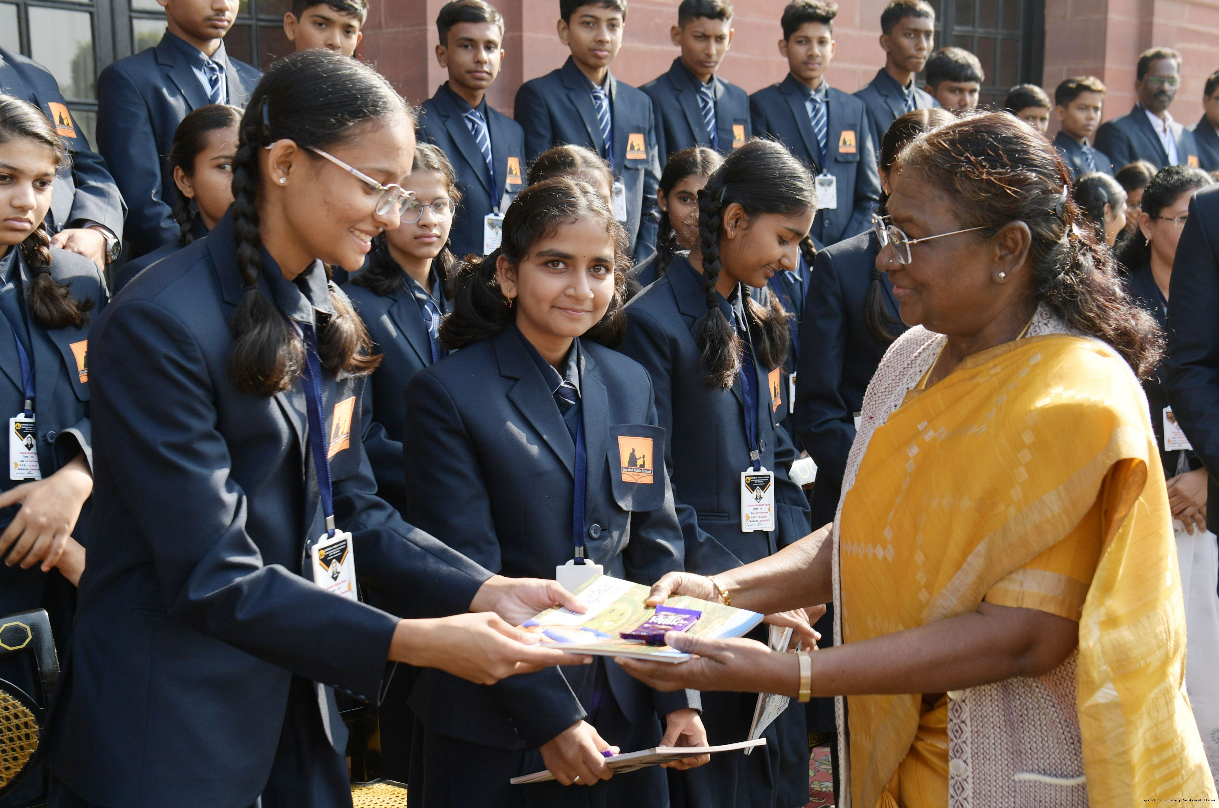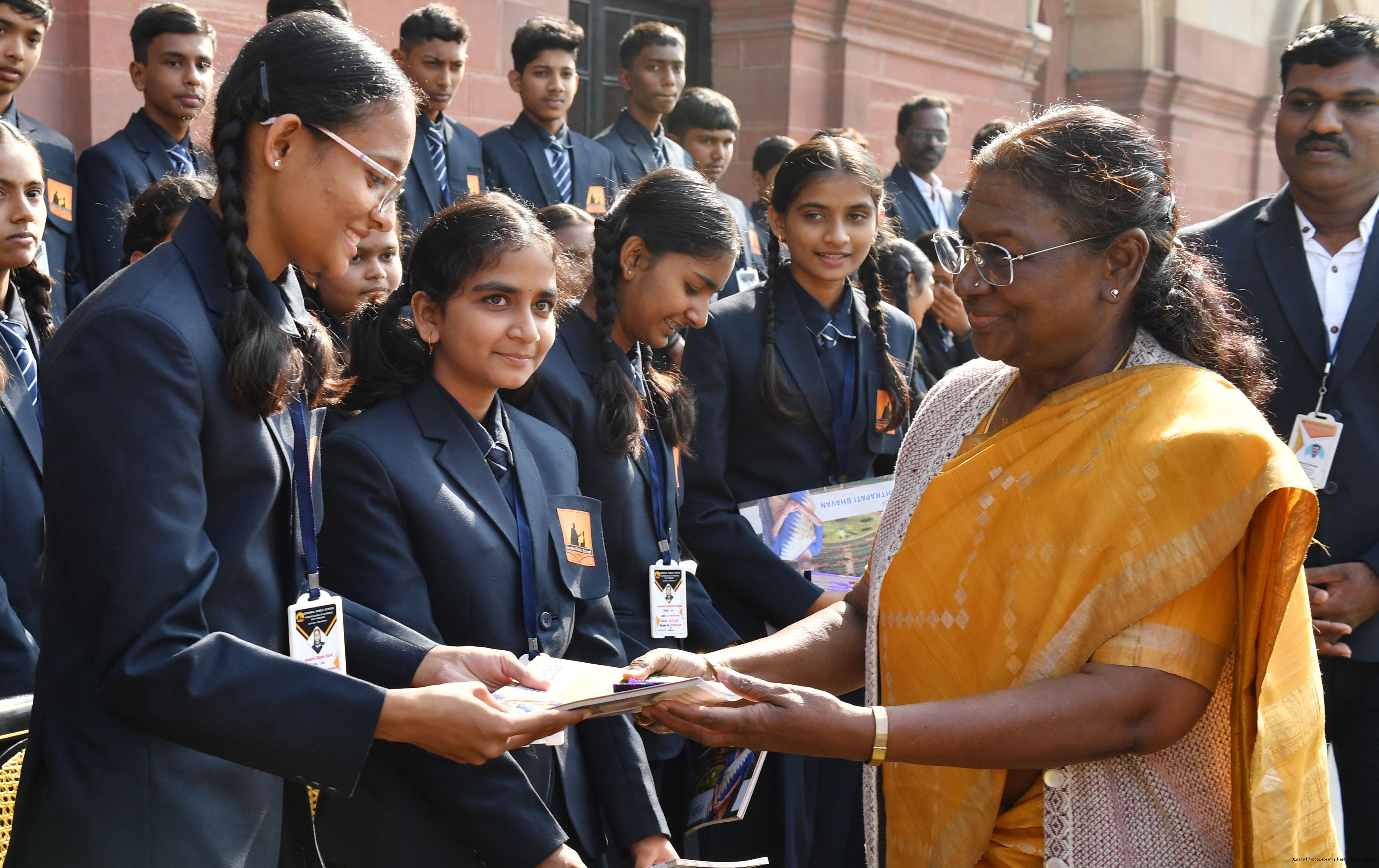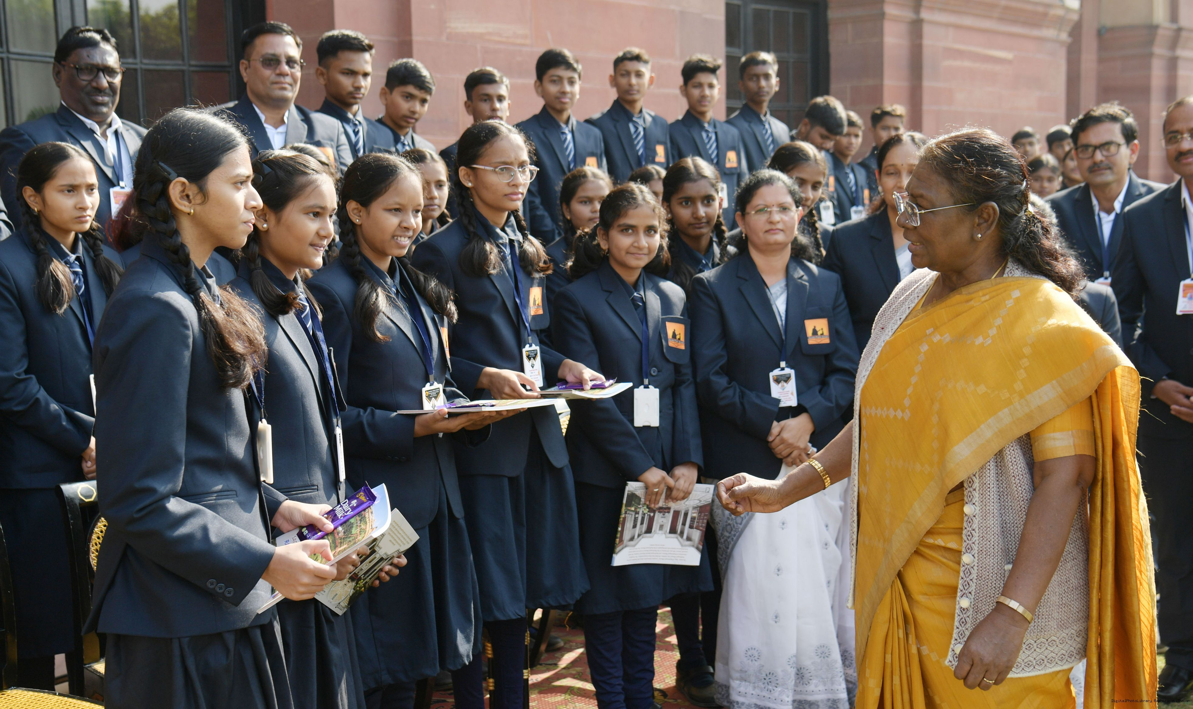 | Caption: | Shri Ashish Balkrishan Mankar along with 09 teachers and 39 students meeting with the President of India, Smt. Droupadi Murmu at Rashtrapati Bhavan on December 2, 2024. |