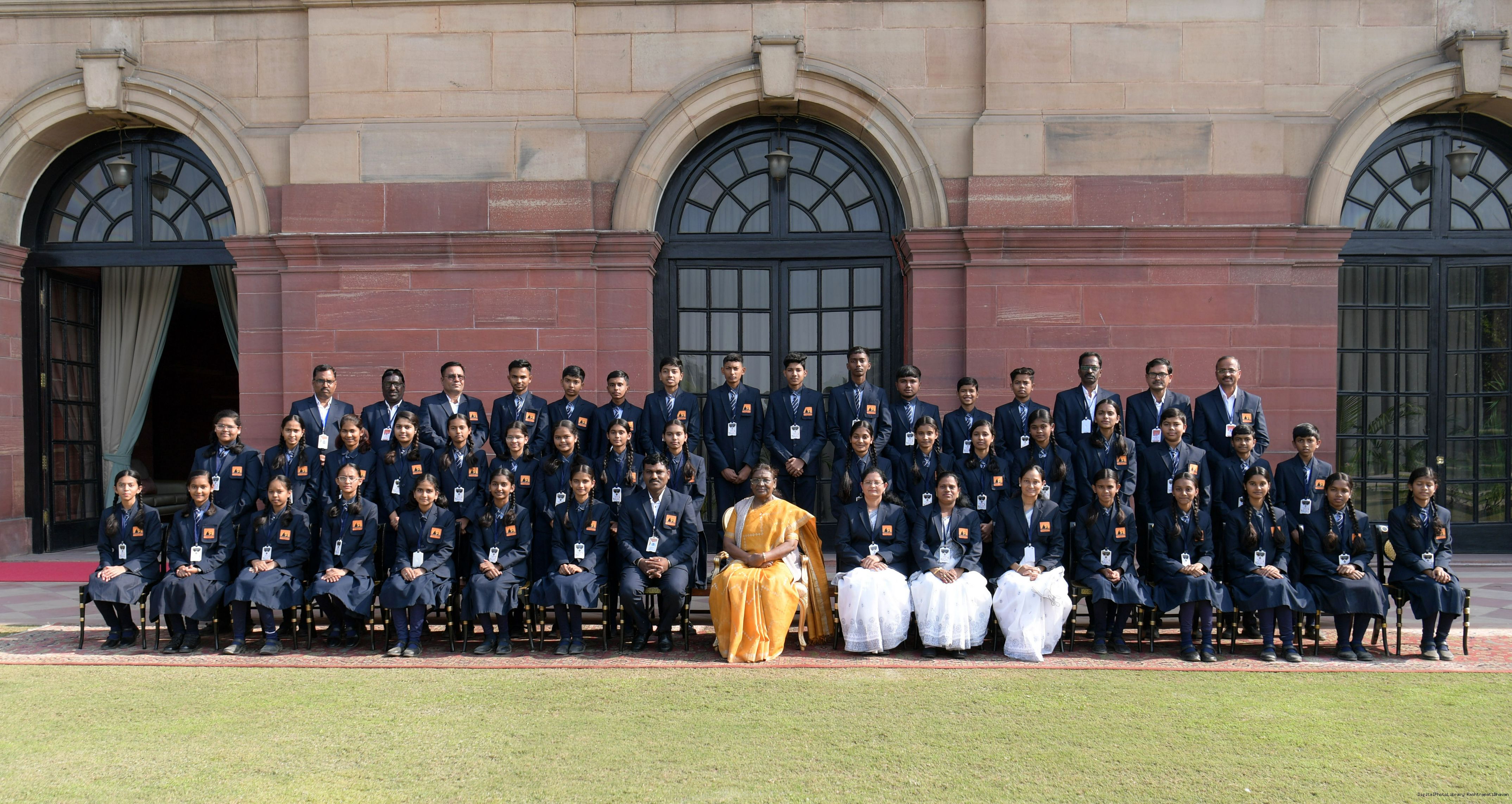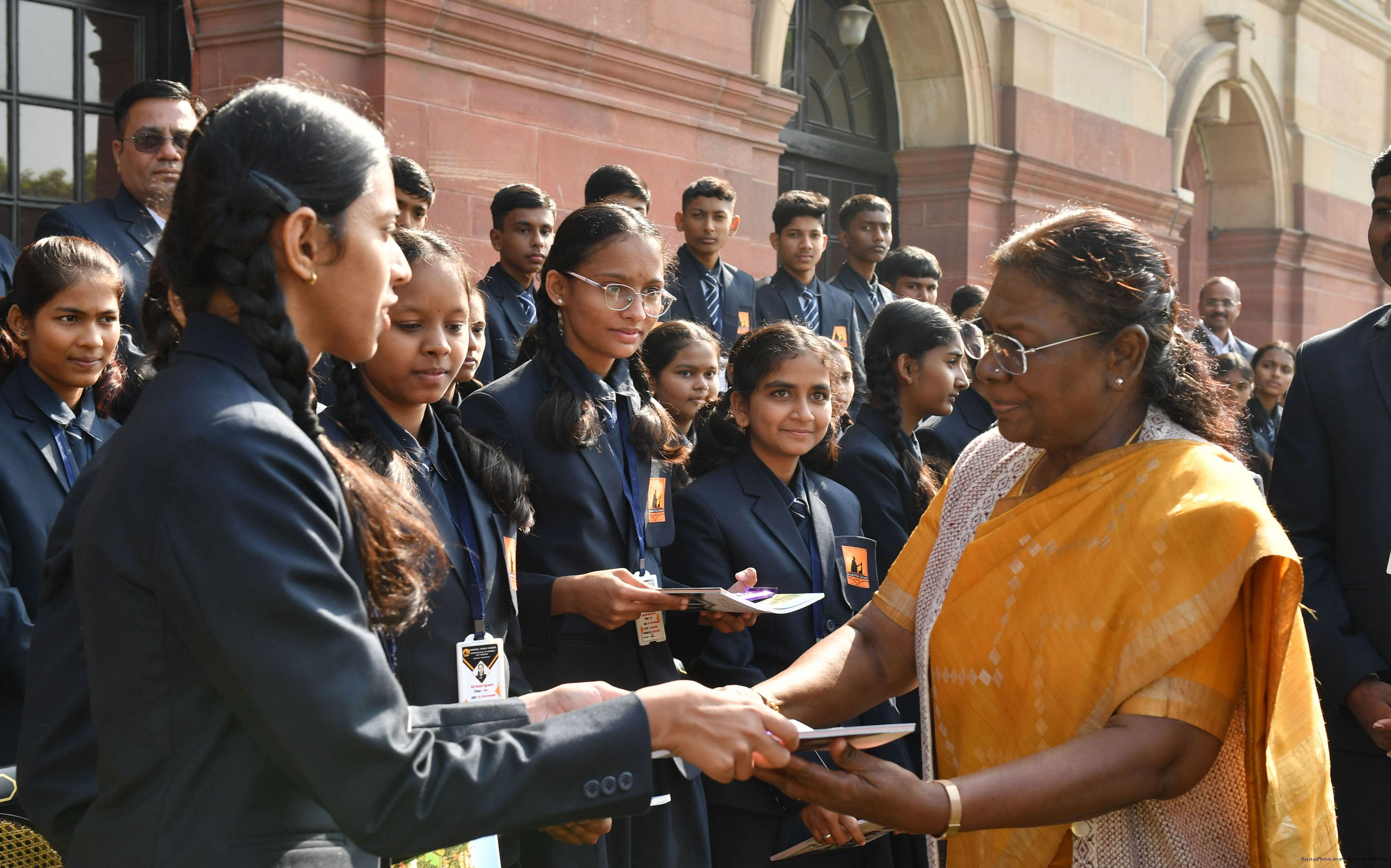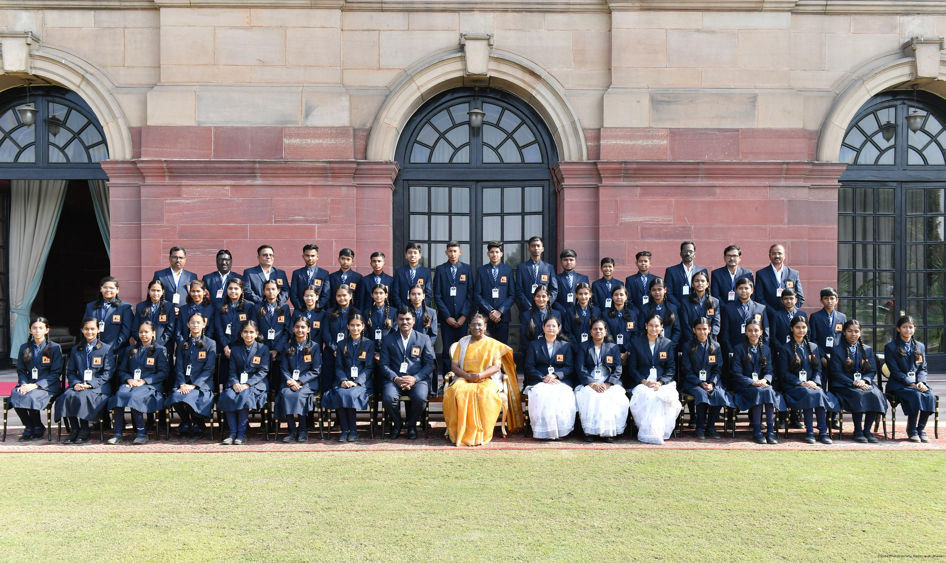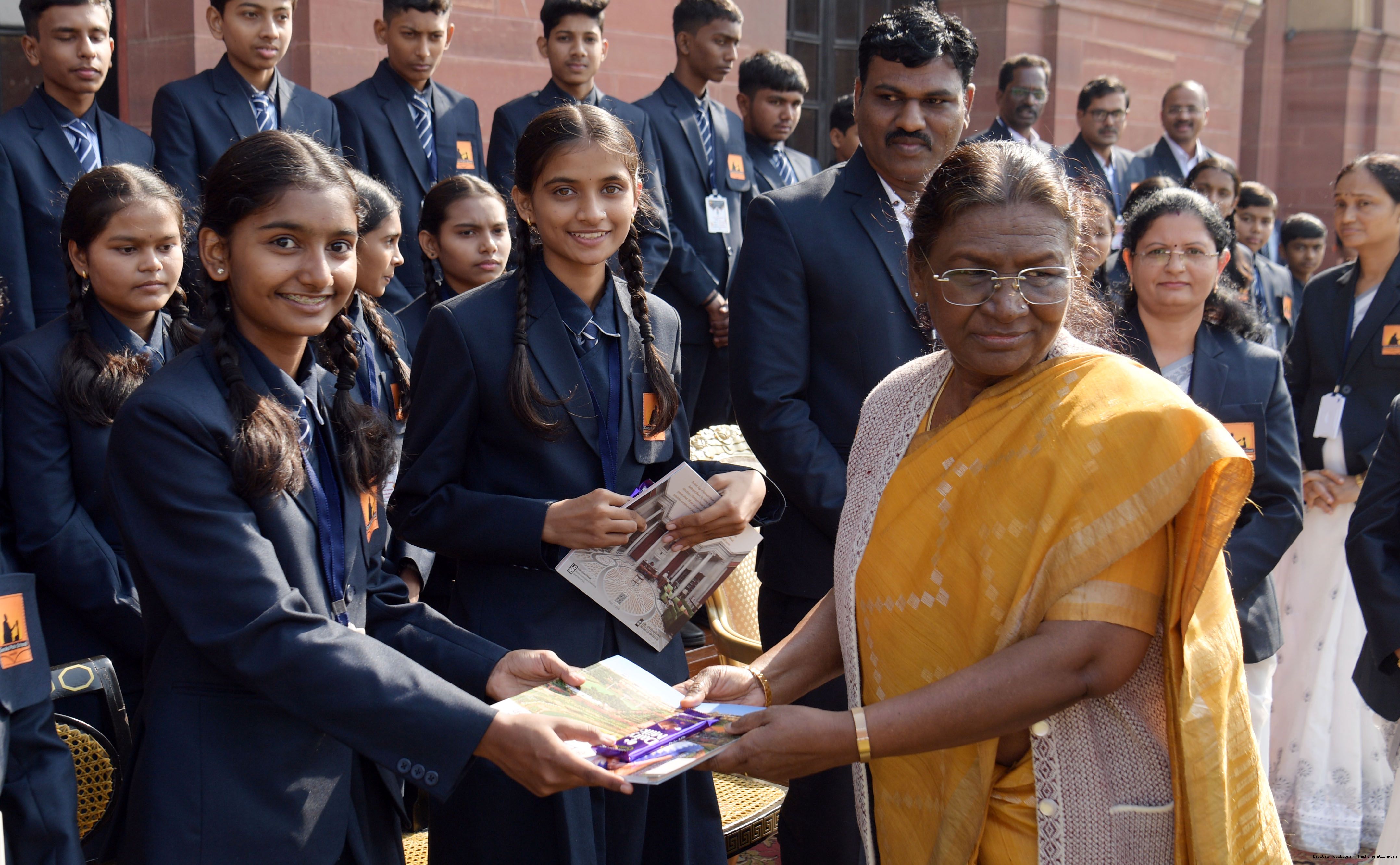 | Caption: | Shri Ashish Balkrishan Mankar along with 09 teachers and 39 students meeting with the President of India, Smt. Droupadi Murmu at Rashtrapati Bhavan on December 2, 2024. |