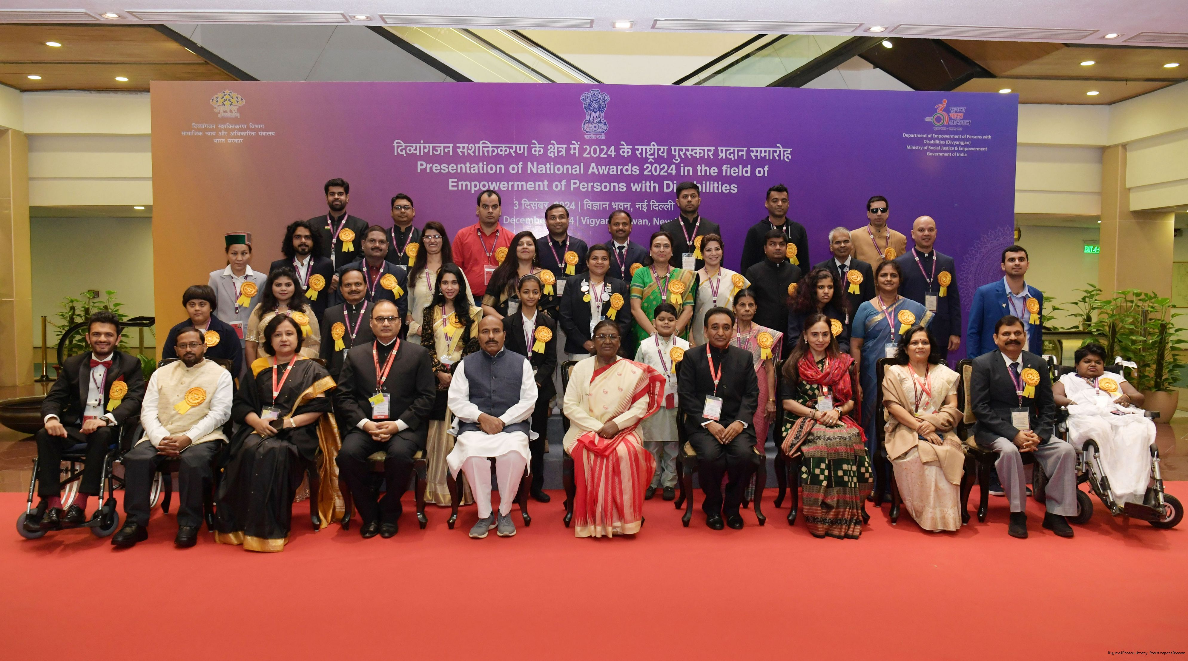 | Caption: | The President of India, Smt Droupadi Murmu presented the National Awards for the Empowerment of Persons with Disabilities for the year 2024 in New Delhi on December 3, 2024 on the occasion of the International Day of Persons with Disabilities. |