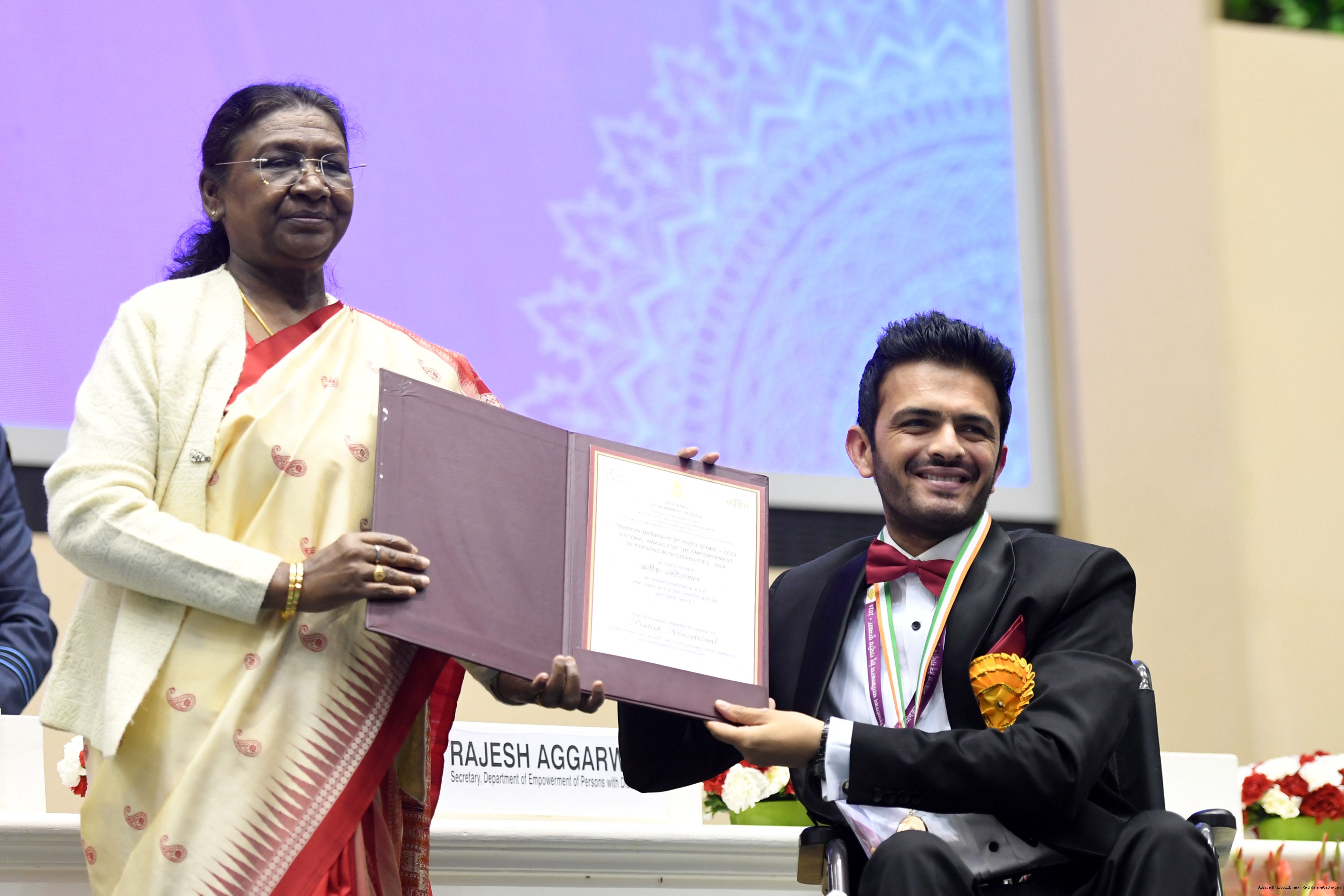 | Caption: | The President of India, Smt Droupadi Murmu presented the National Awards for the Empowerment of Persons with Disabilities for the year 2024 in New Delhi on December 3, 2024 on the occasion of the International Day of Persons with Disabilities. |