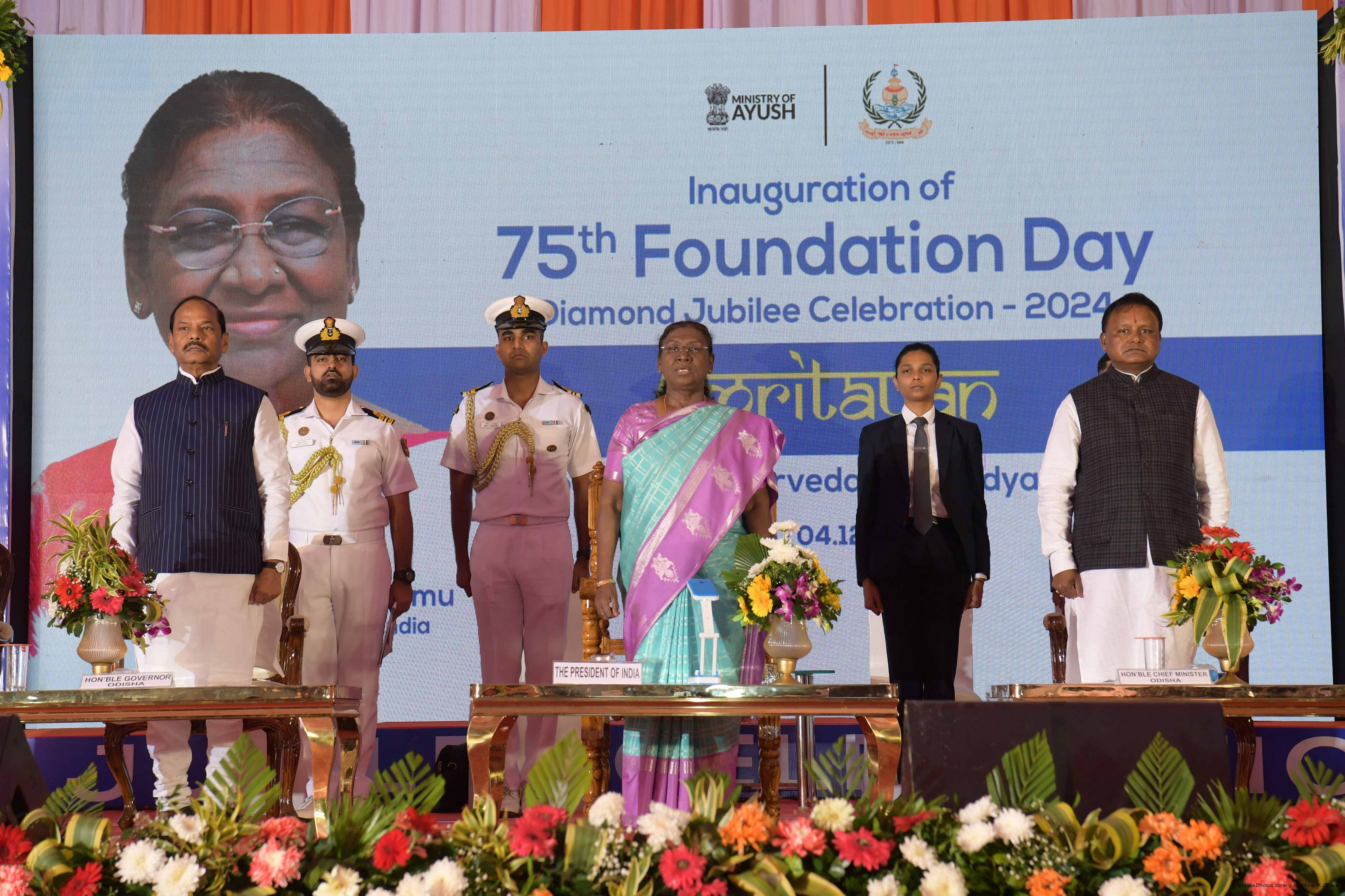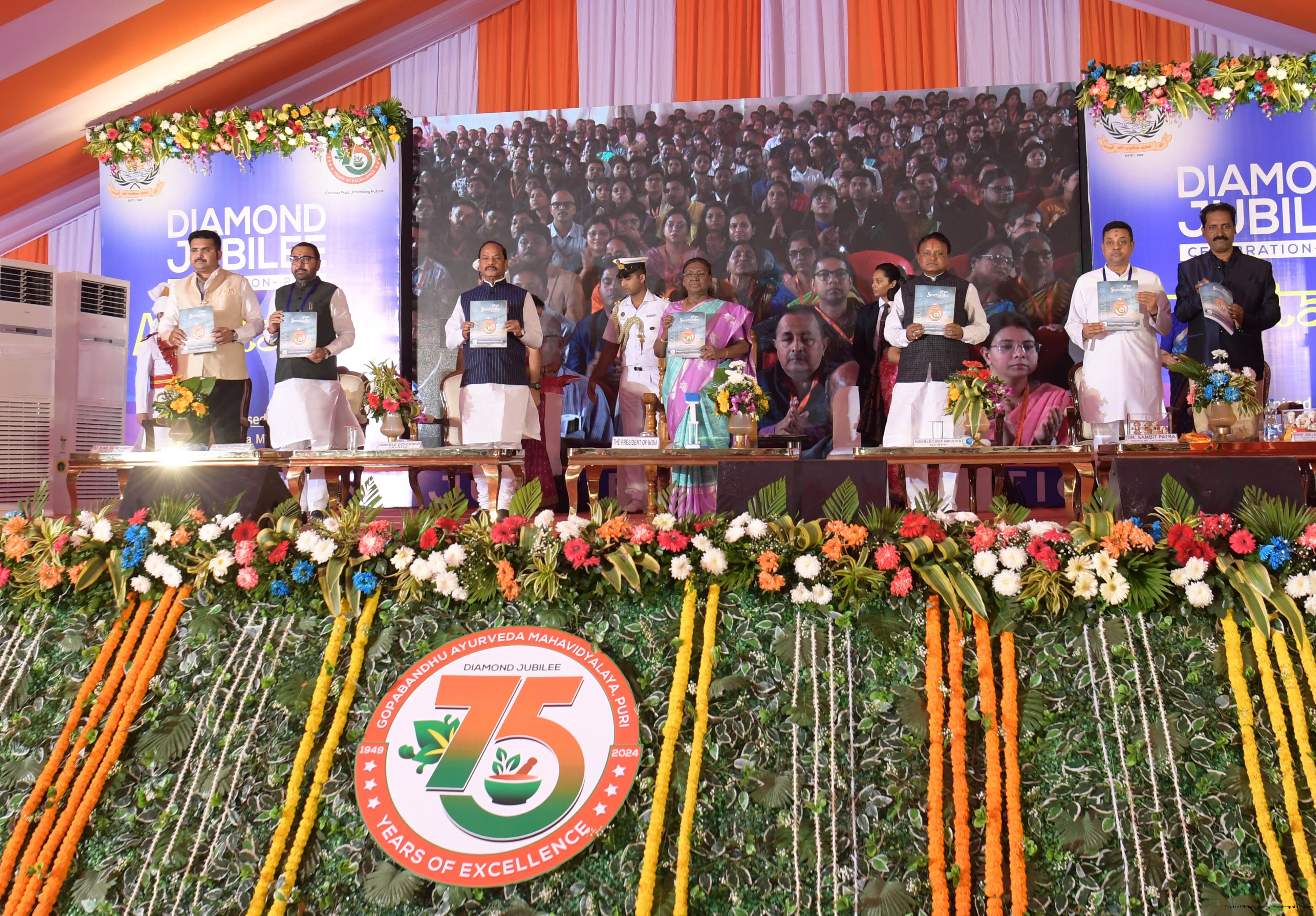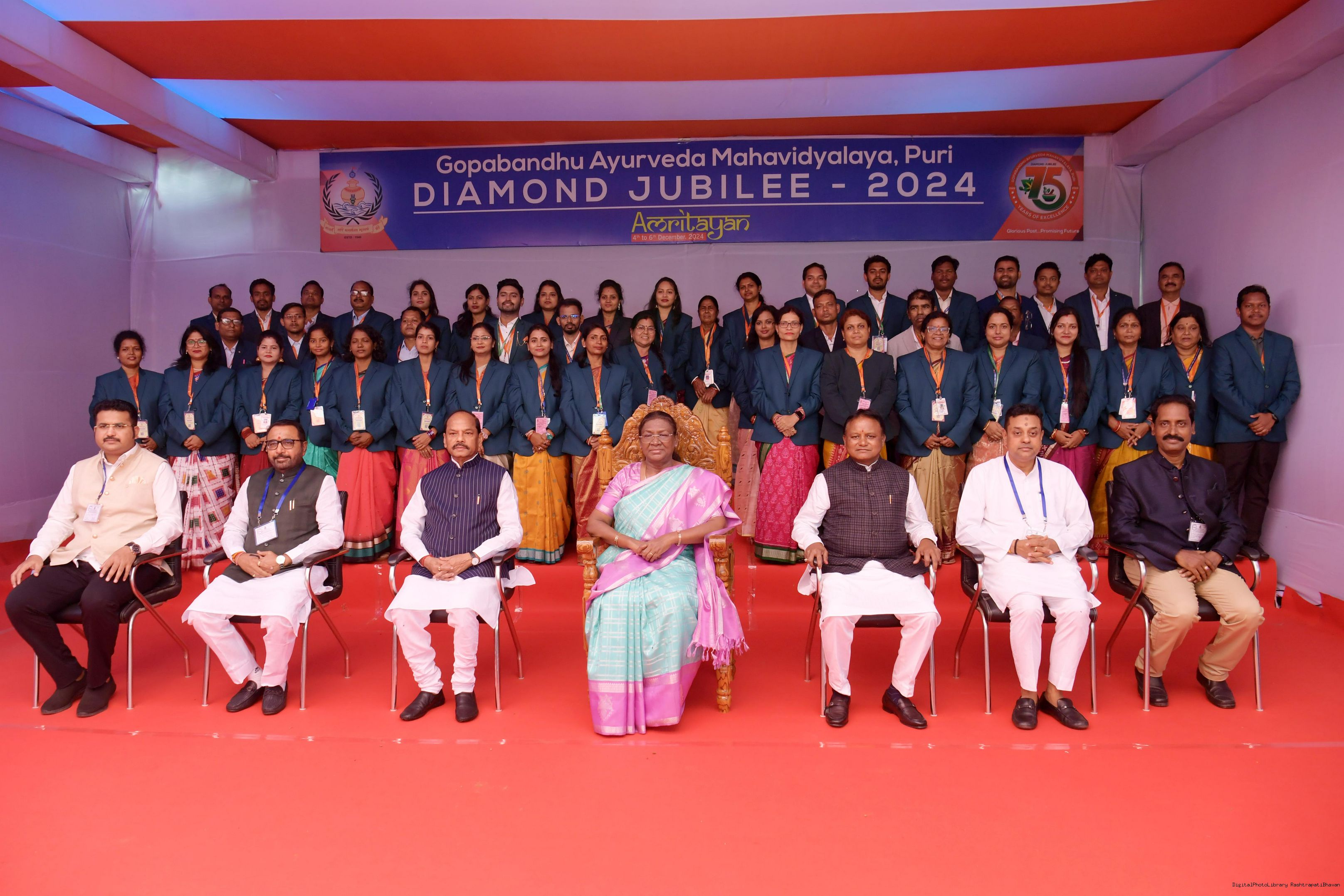 | Caption: | The President of India Smt. Droupadi Murmu graced the 75th anniversary celebration of Gopabandhu Ayurveda Mahavidyalaya at Puri, Odisha on December 4, 2024. |