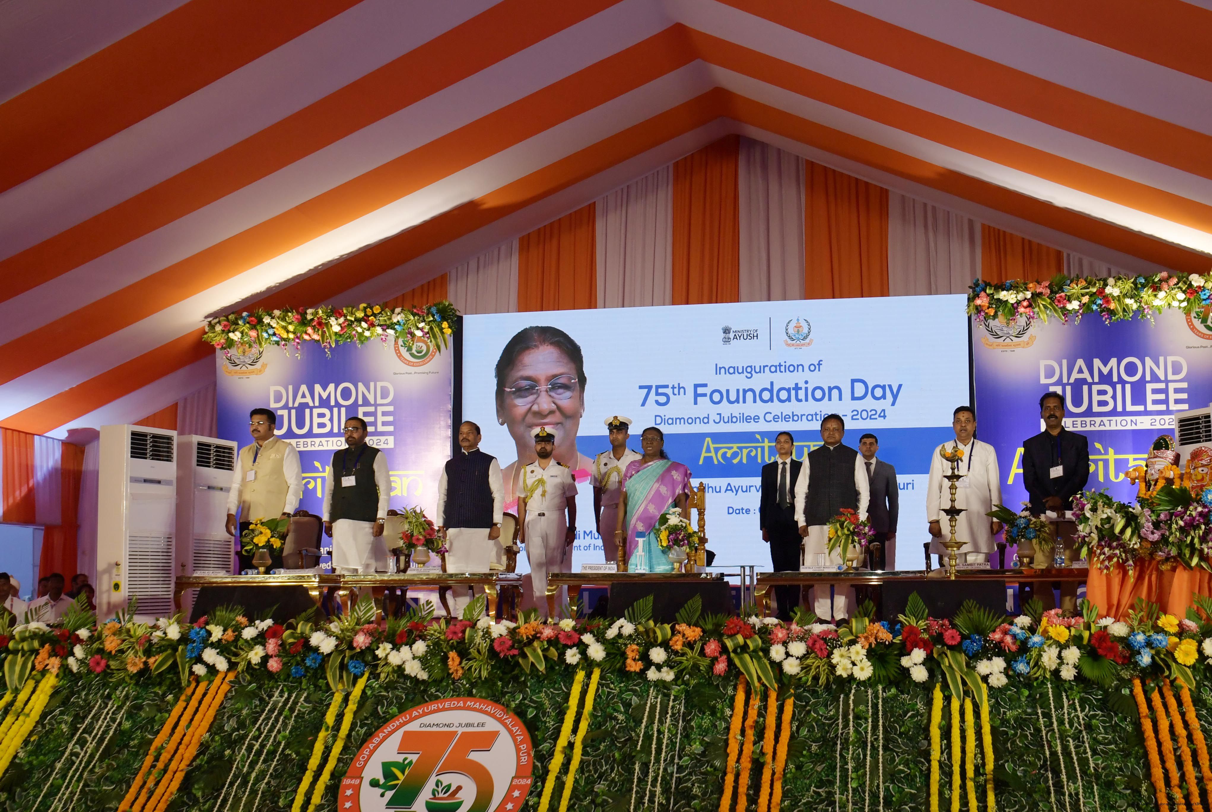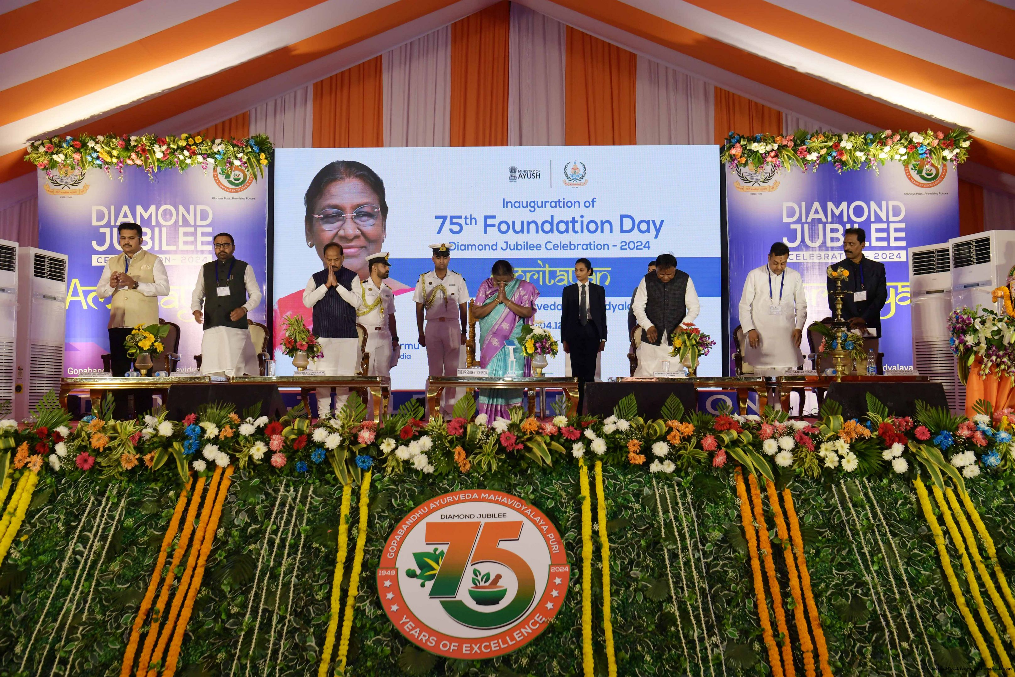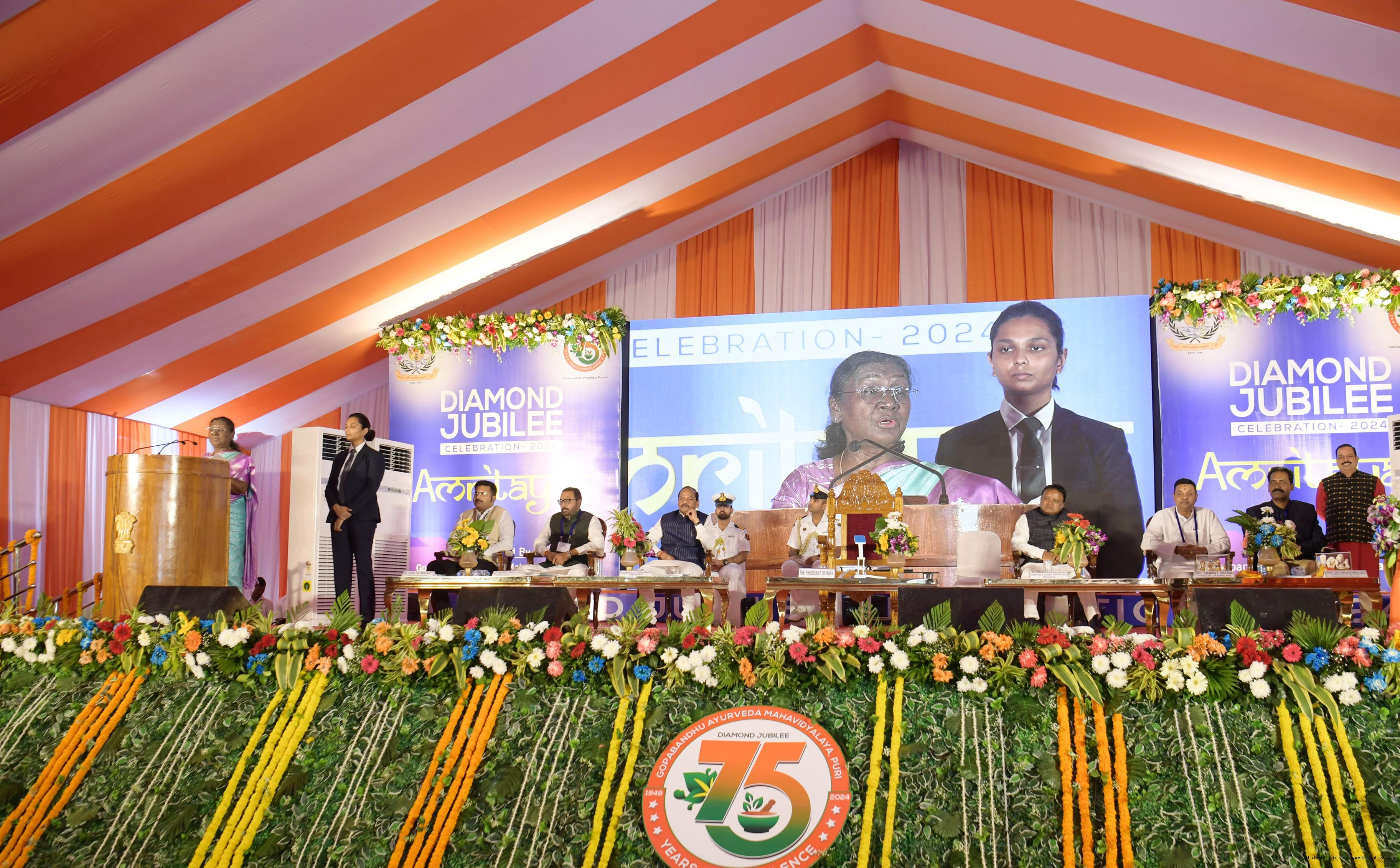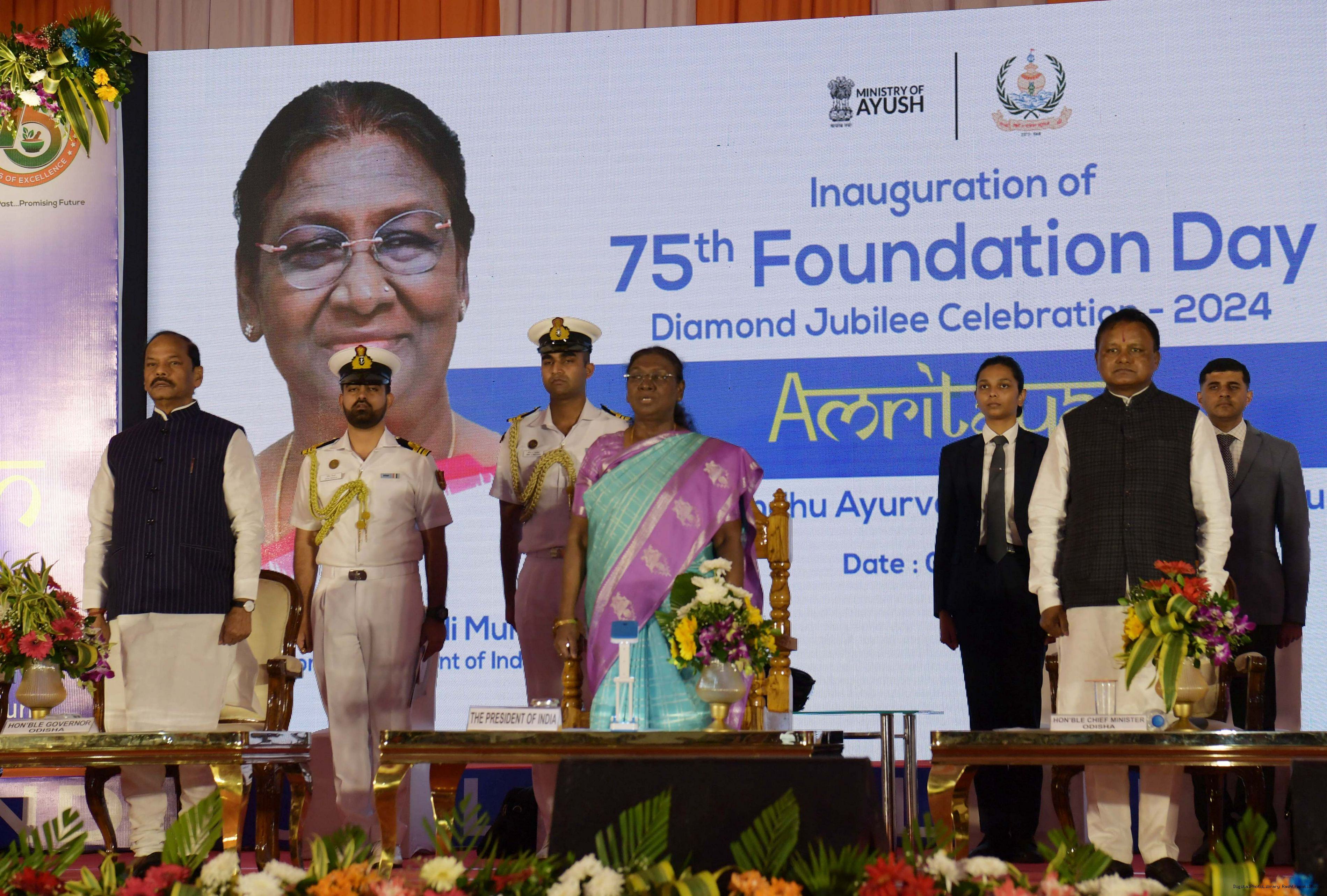 | Caption: | The President of India Smt. Droupadi Murmu graced the 75th anniversary celebration of Gopabandhu Ayurveda Mahavidyalaya at Puri, Odisha on December 4, 2024. |