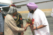 | Caption: | The President of India, Dr A P J Abdul Kalam arriving at Bhatinda AF Station in Punjab on May 16, 2005 |