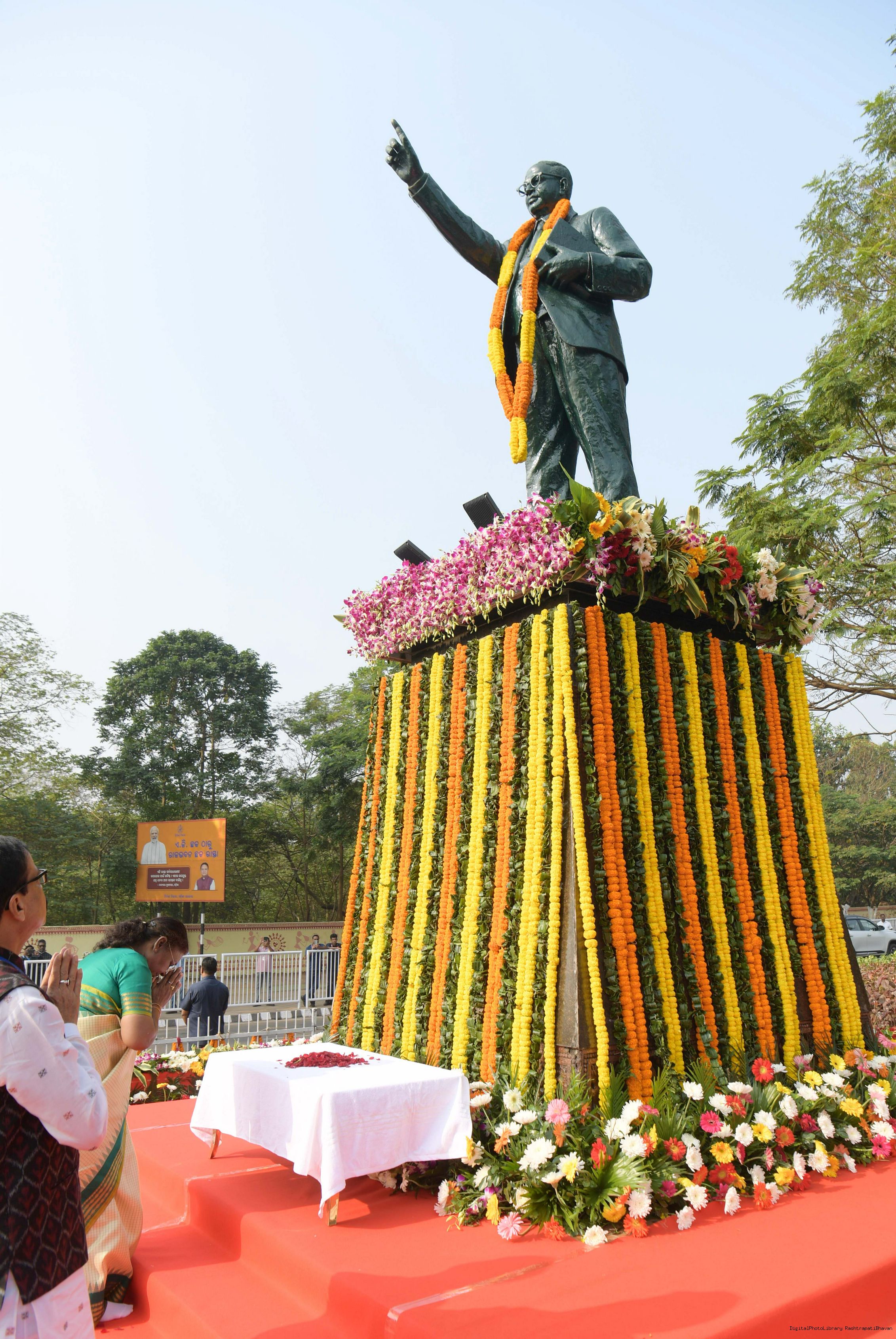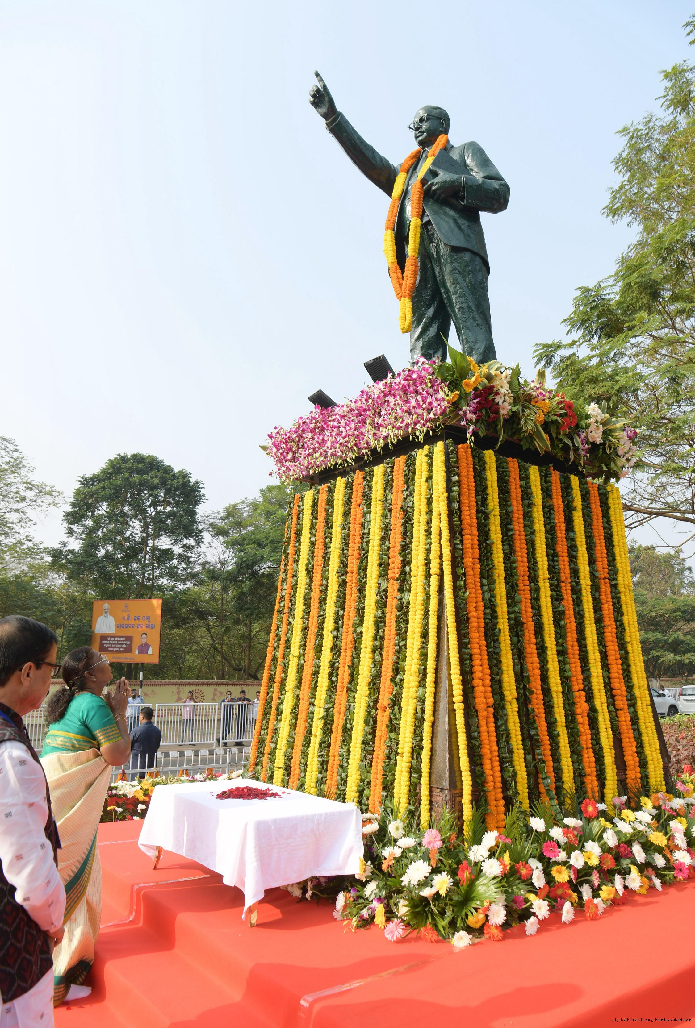 | Caption: | The President of India Smt. Droupadi Murmu paid floral tributes to Babasaheb Dr B.R. Ambedkar, the chief architect of Indian Constitution, on his Mahaparinirvan Diwas at Bhubaneswar, Odisha on December 6, 2024. |