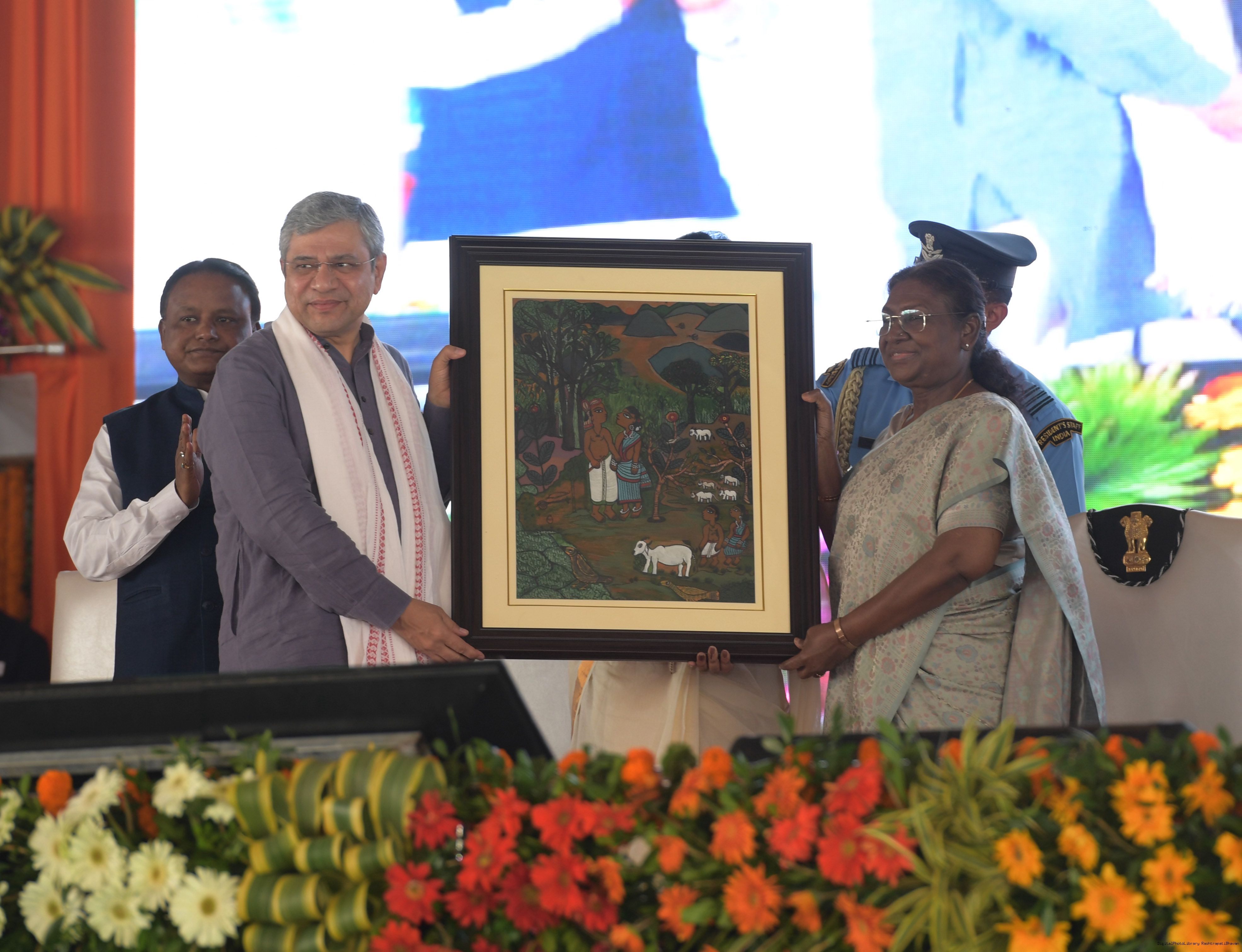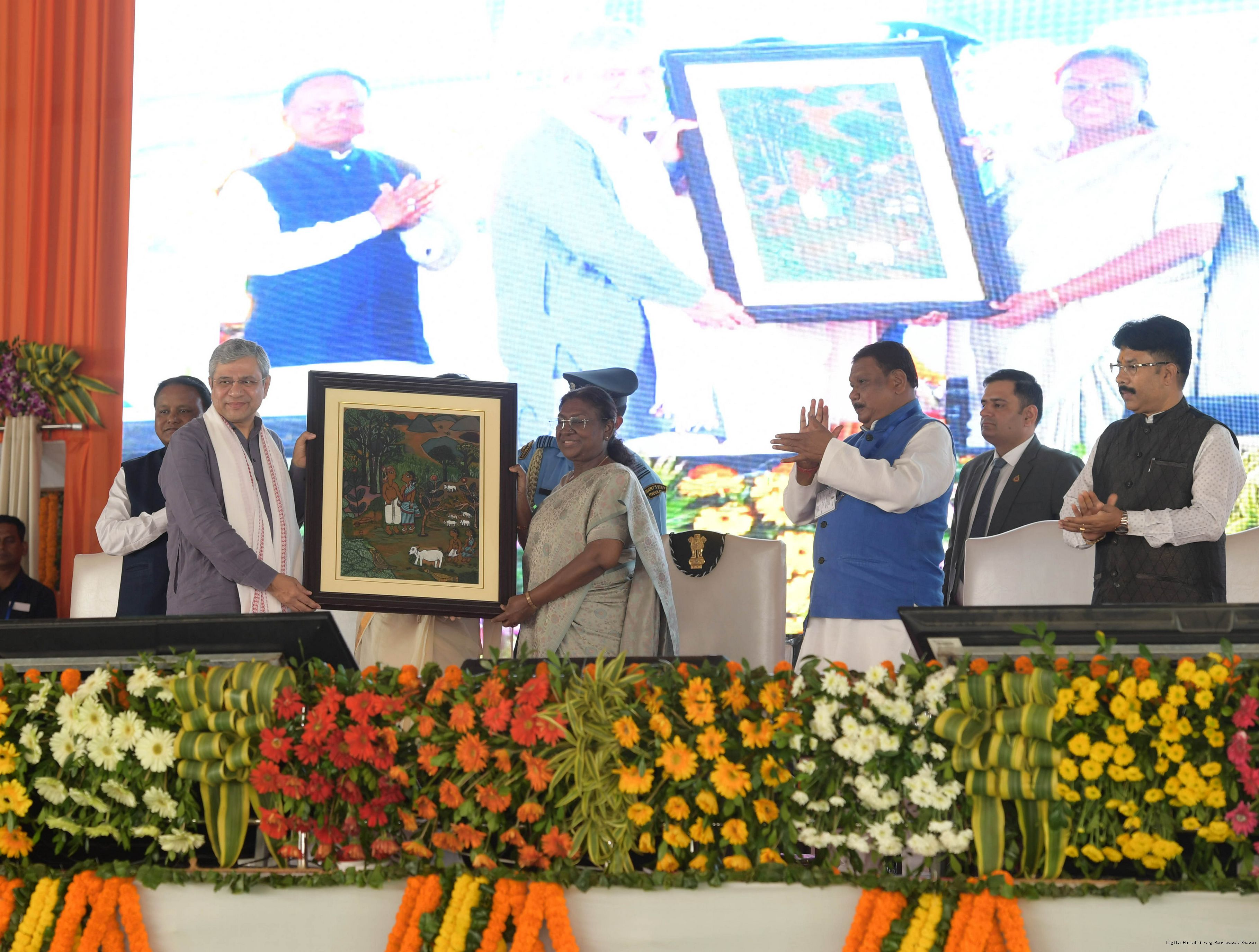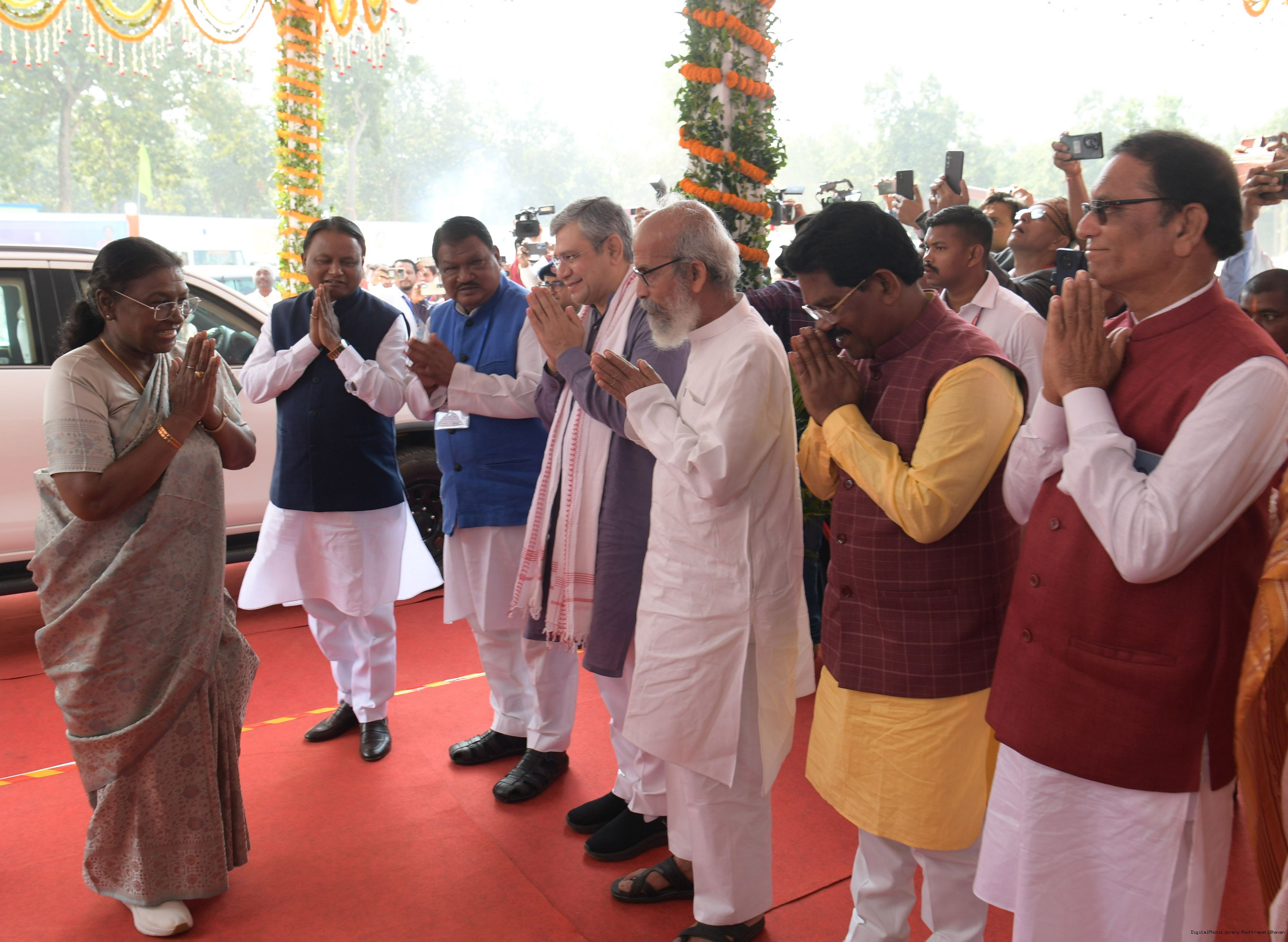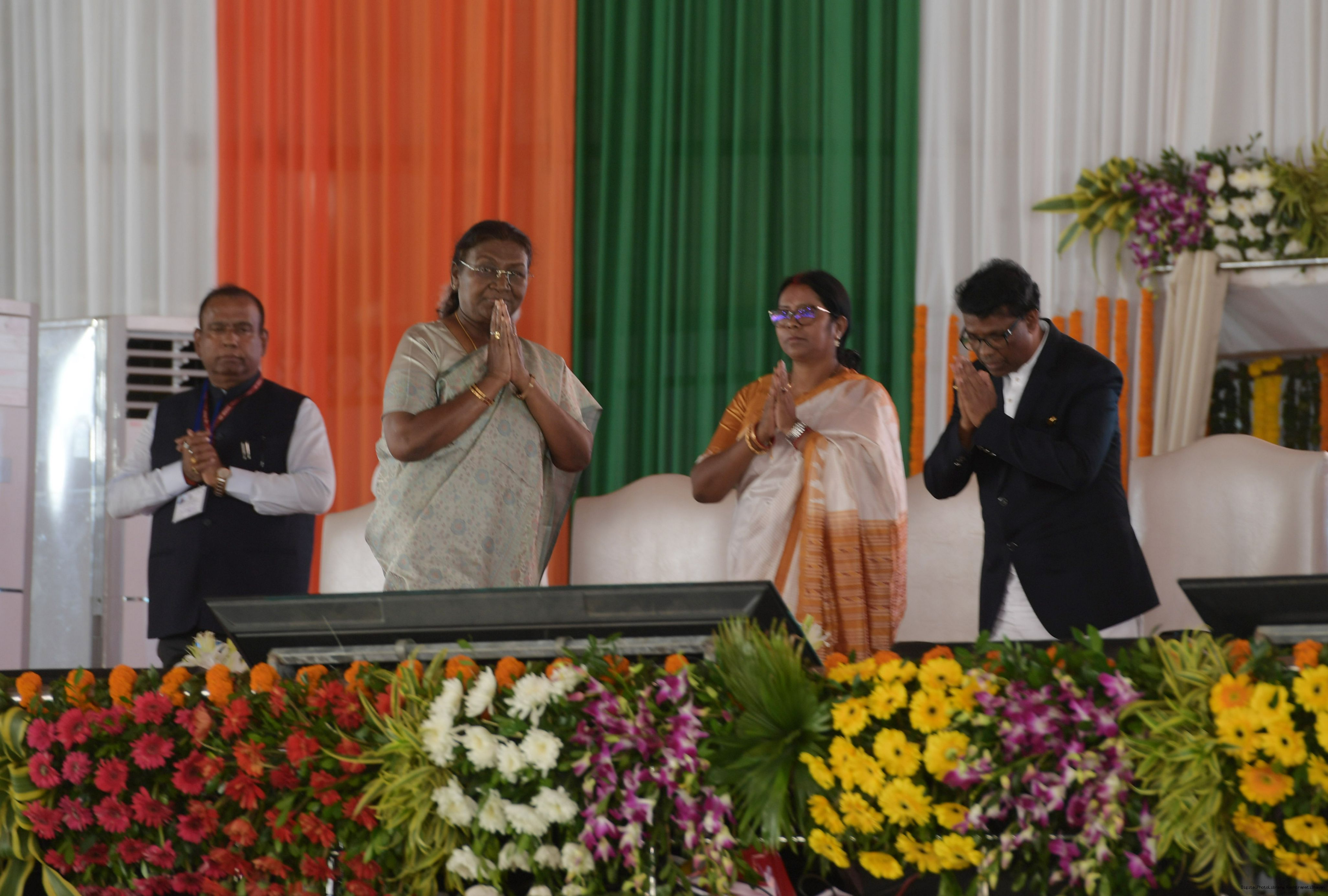 | Caption: | The President of India Smt. Droupadi Murmu laid the foundation stones for various developmental projects at Rairangpur, Odisha on December 7, 2024. |