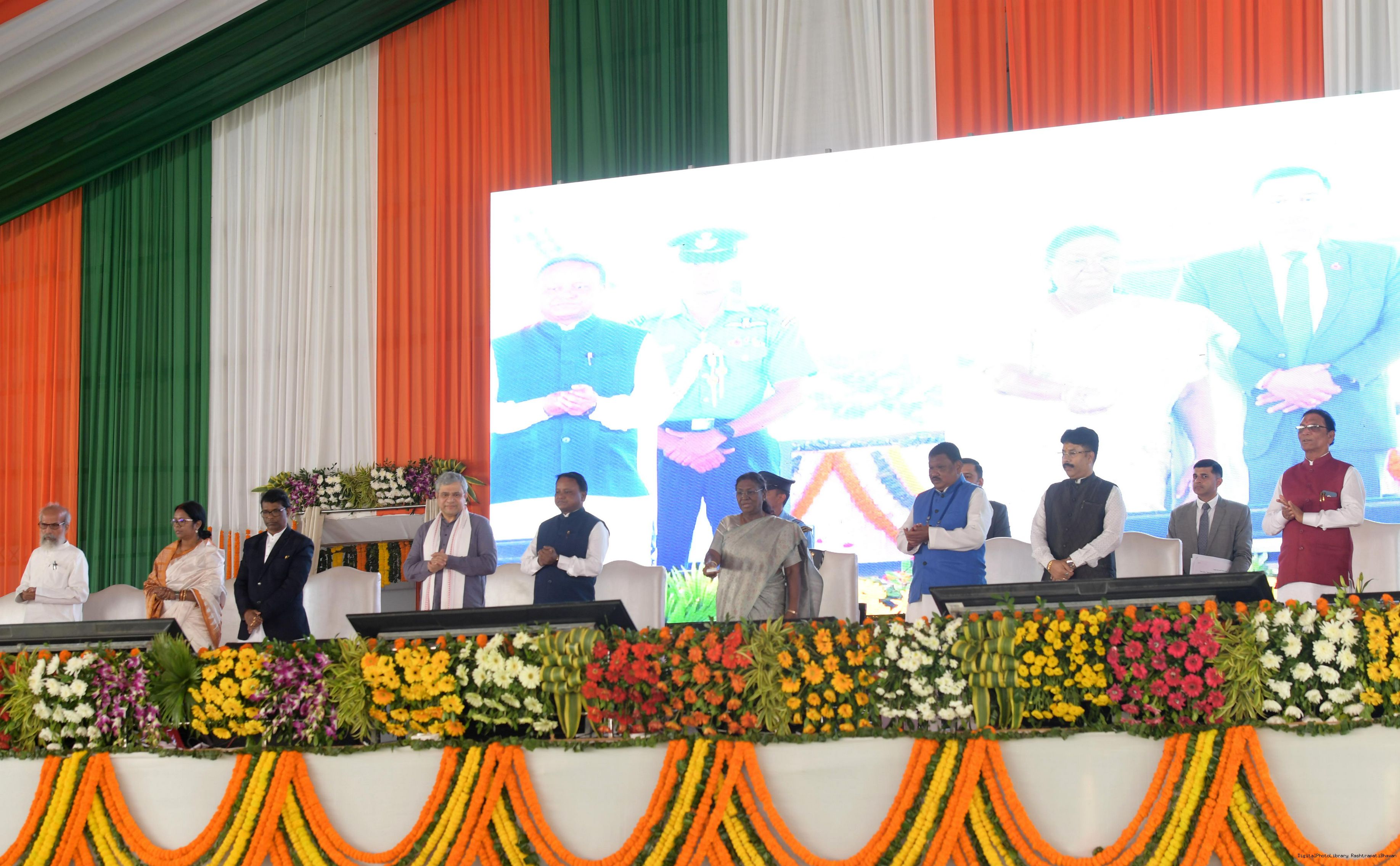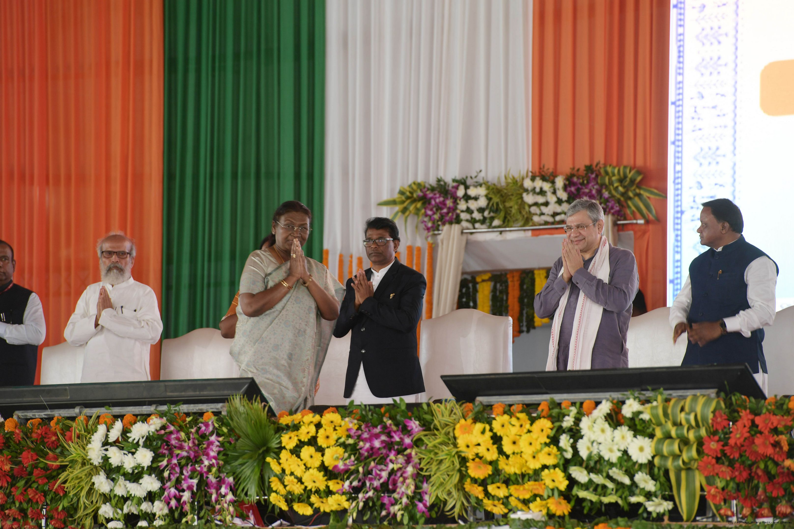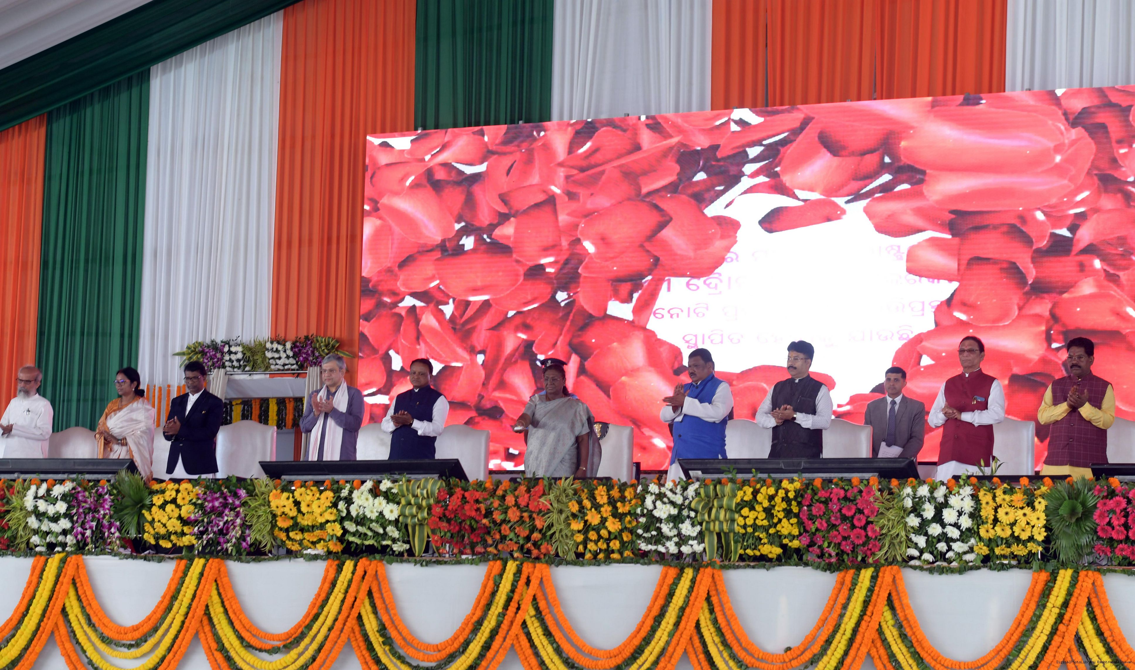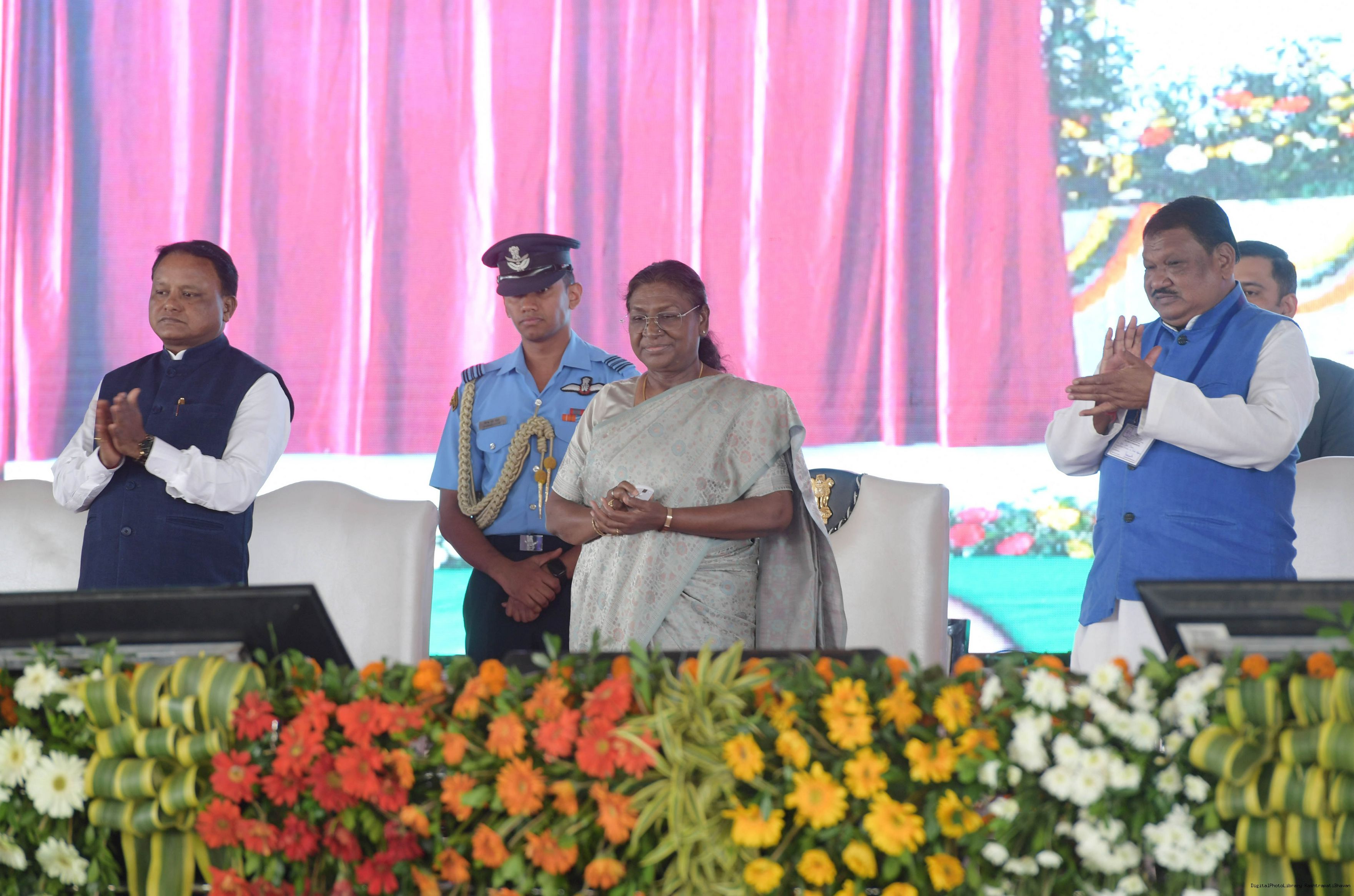 | Caption: | The President of India Smt. Droupadi Murmu laid the foundation stones for various developmental projects at Rairangpur, Odisha on December 7, 2024. |