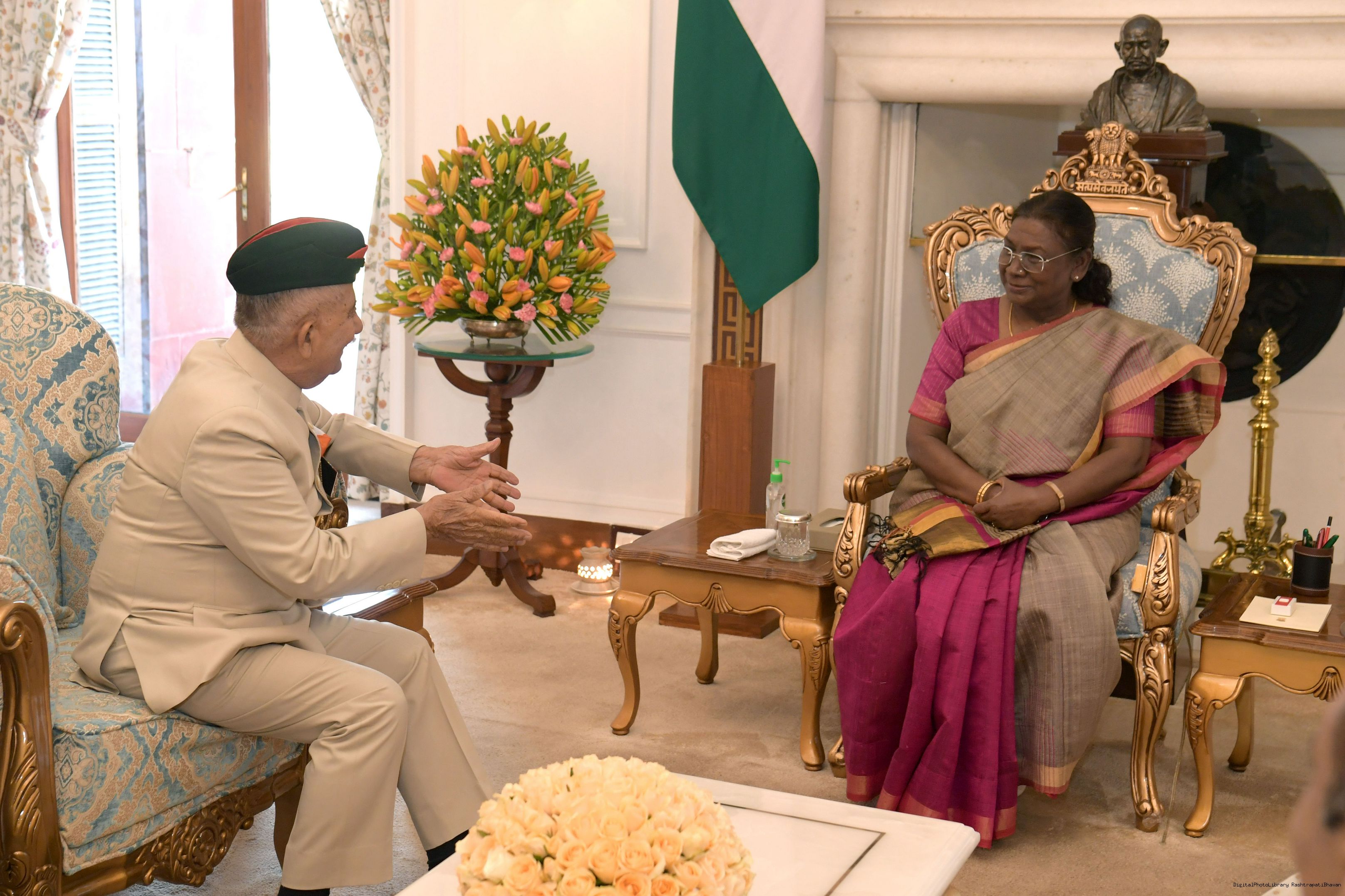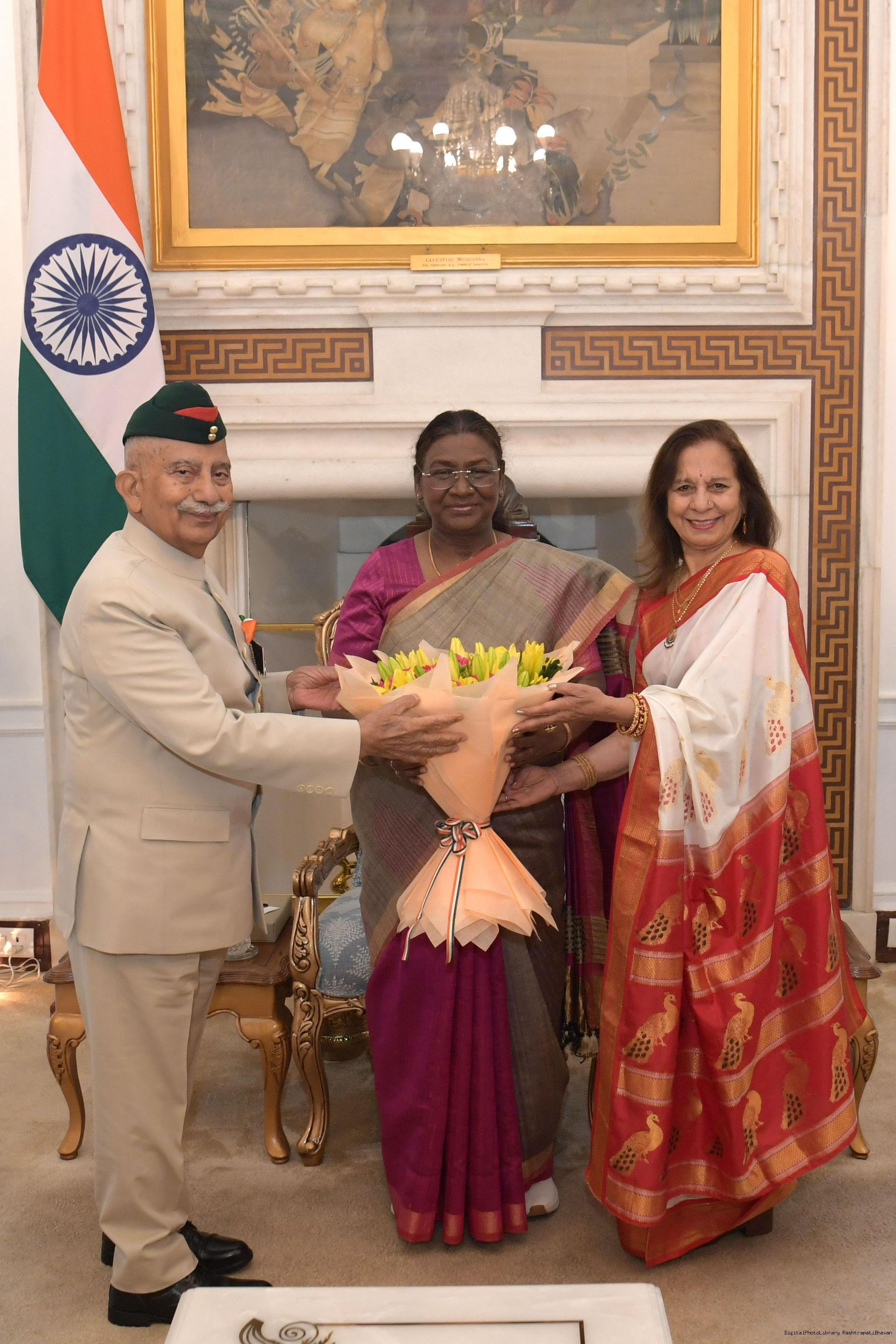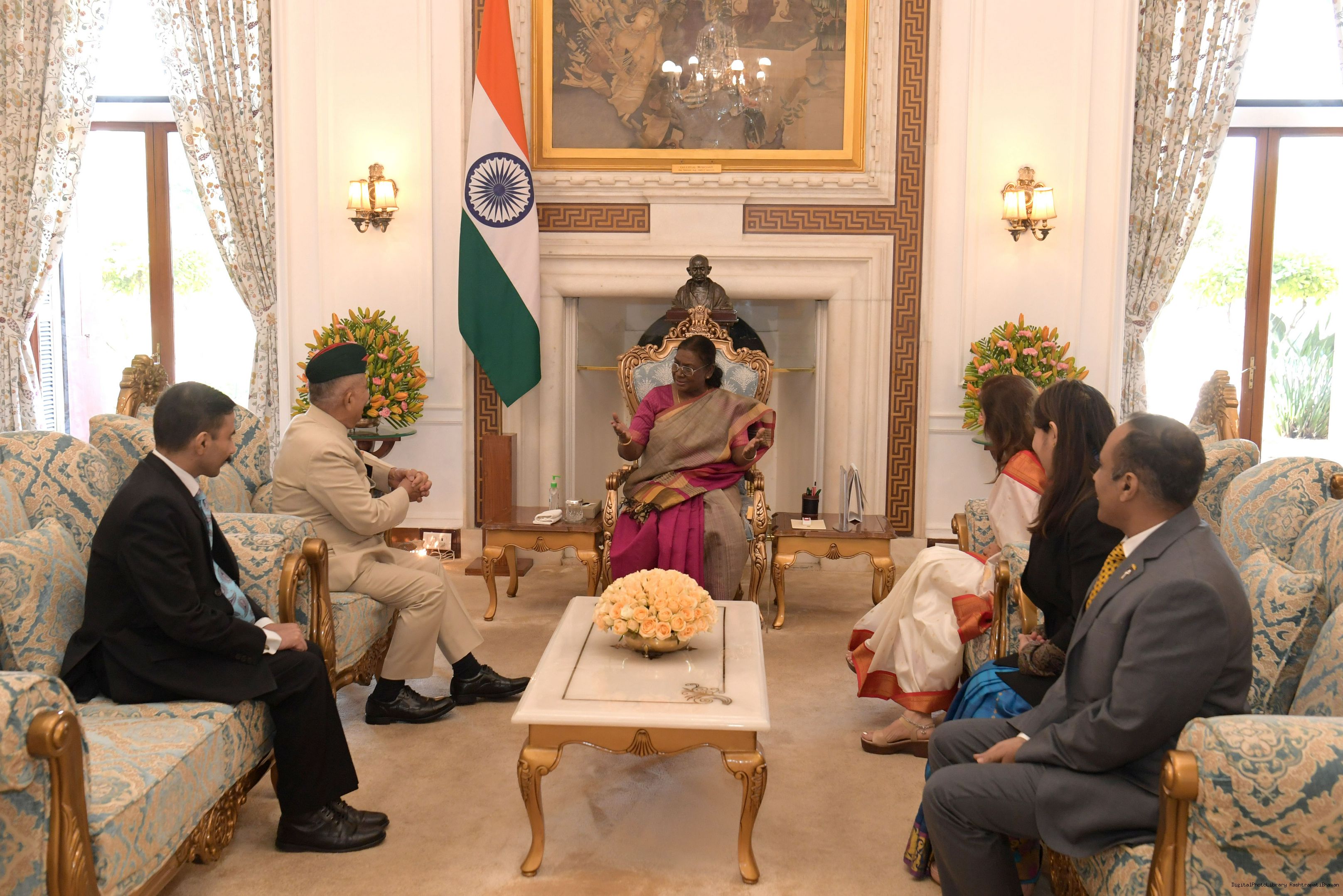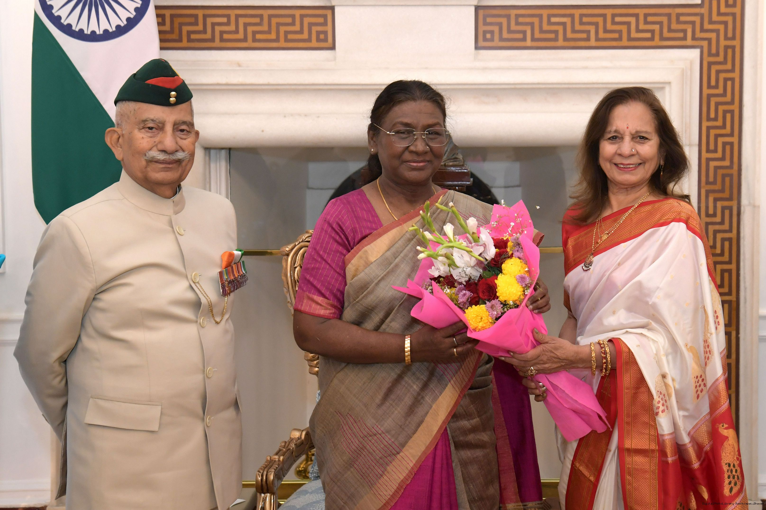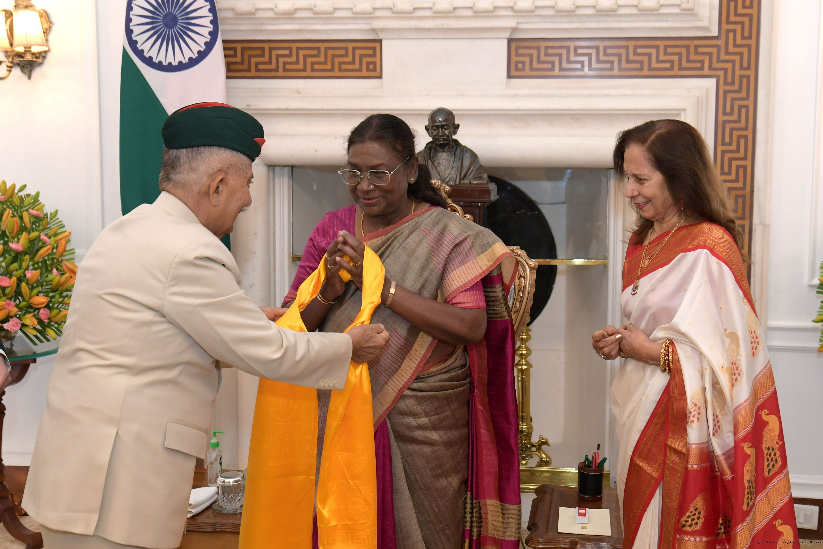 | Caption: | The Lt Governor of Ladakh, Brig. (Dr.) B.D. Mishra along with his wife called on the President of India Smt. Droupadi Murmu at Rashtrapati Bhavan on December 11, 2024. |
