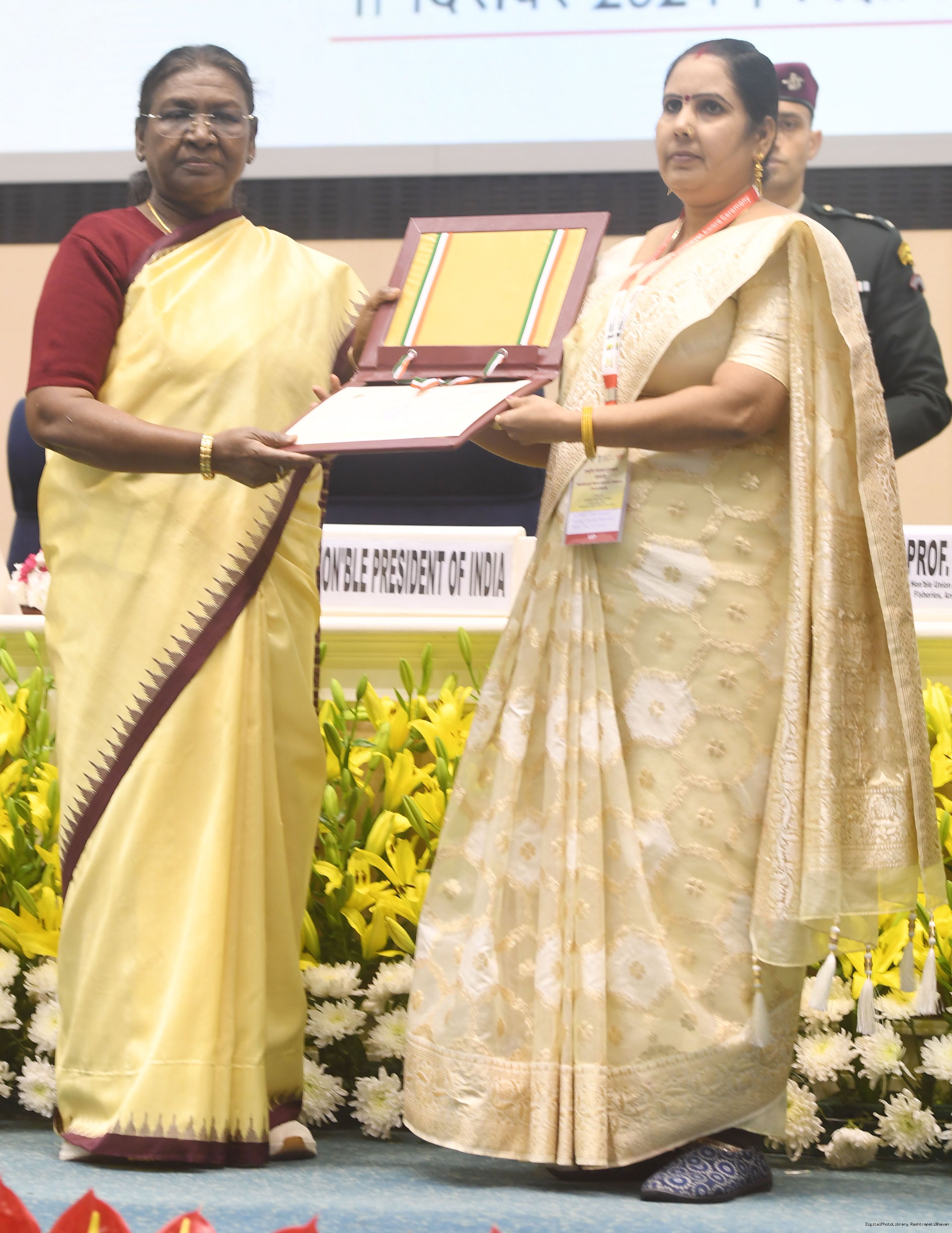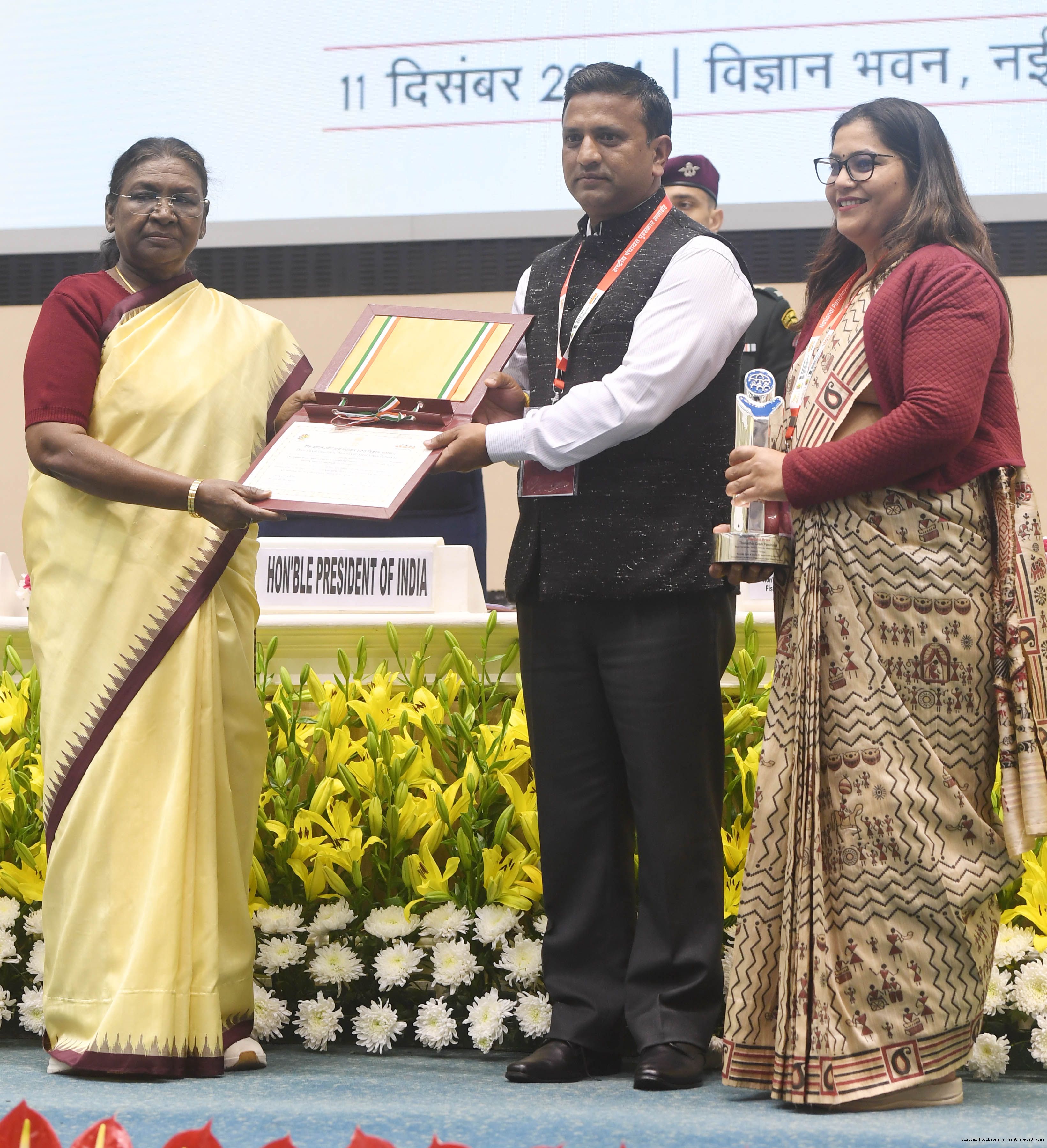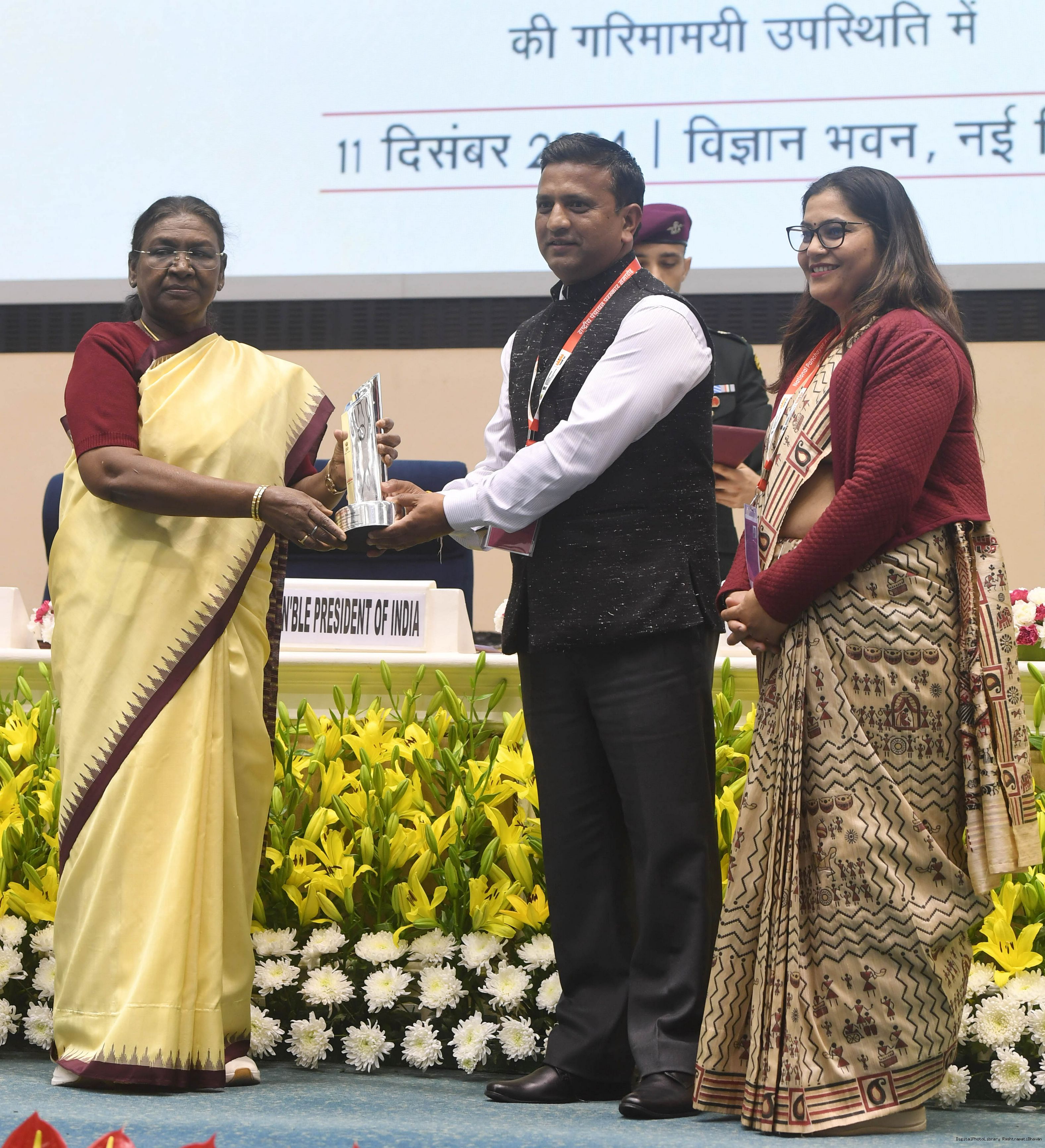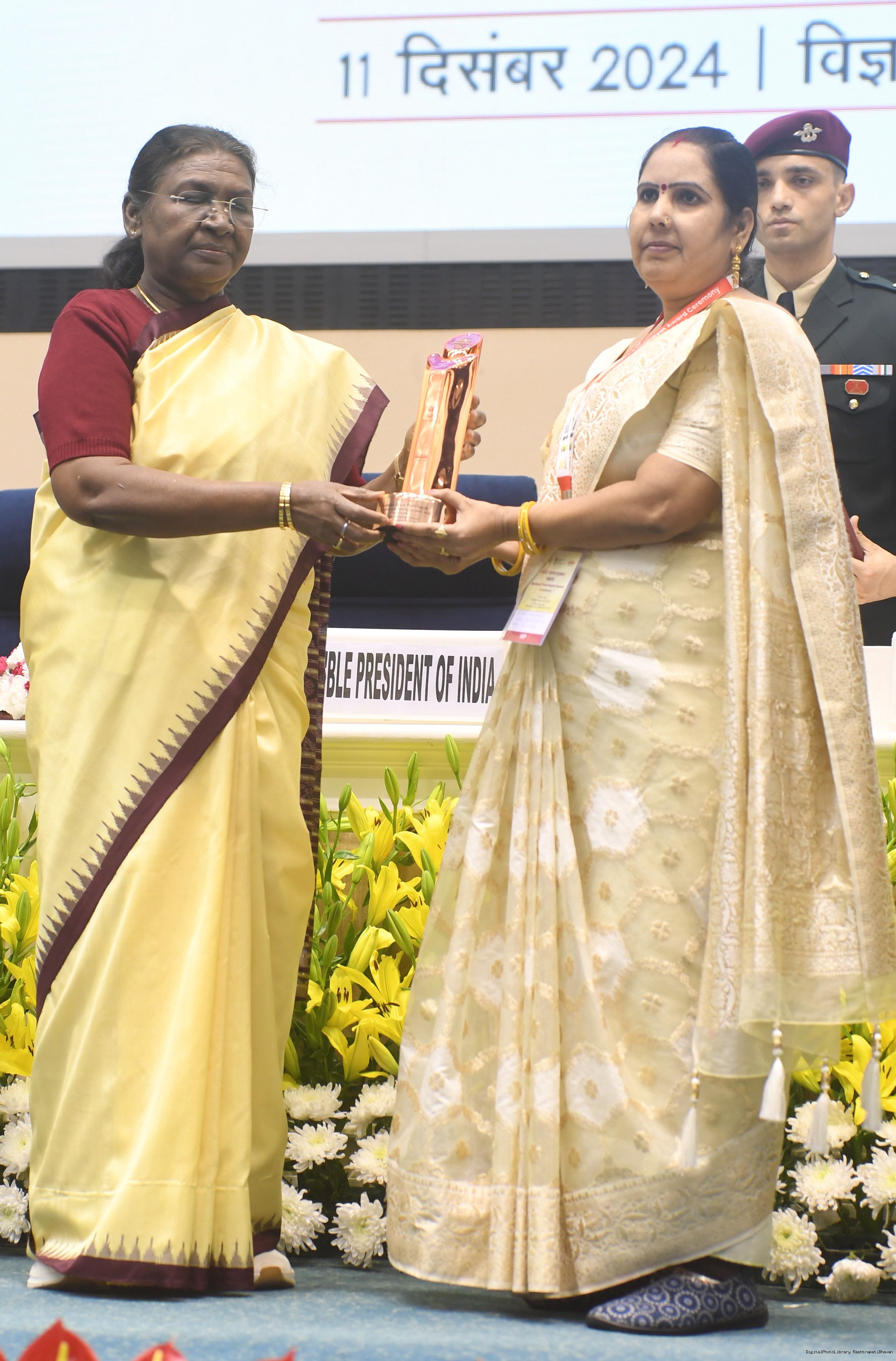 | Caption: | The President of India, Smt Droupadi Murmu conferred the National Panchayat Awards upon 45 awardees, selected across various categories, recognizing their exemplary contributions to the themes of sustainable and inclusive development, in New Delhi on December 11, 2024. |