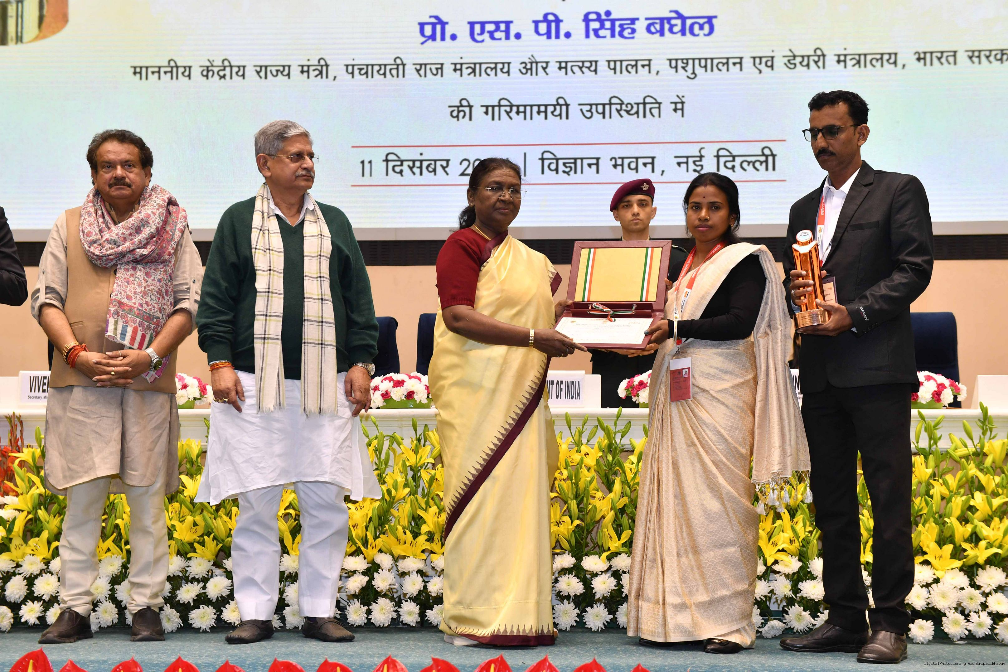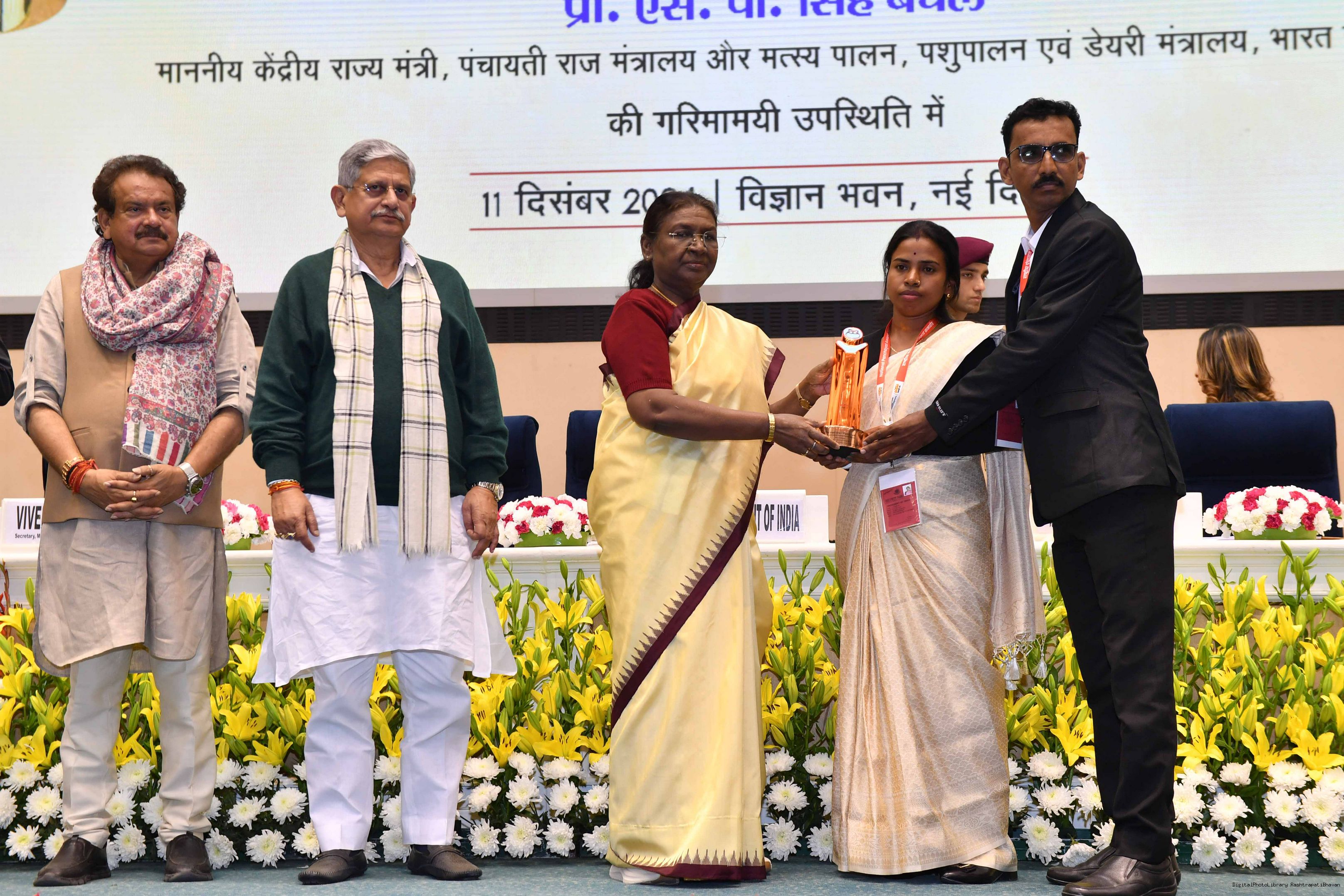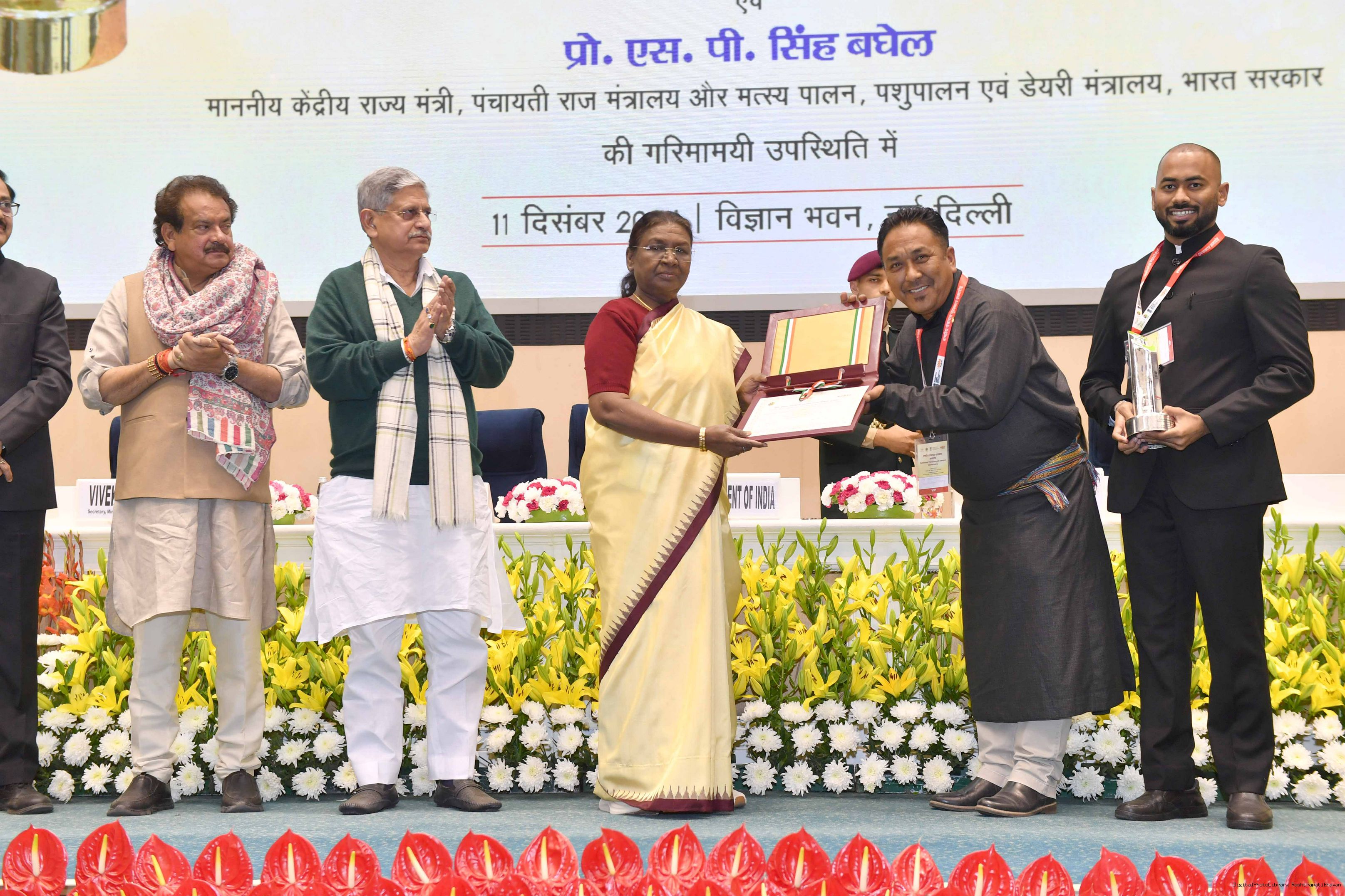 | Caption: | The President of India, Smt Droupadi Murmu conferred the National Panchayat Awards upon 45 awardees, selected across various categories, recognizing their exemplary contributions to the themes of sustainable and inclusive development, in New Delhi on December 11, 2024. |