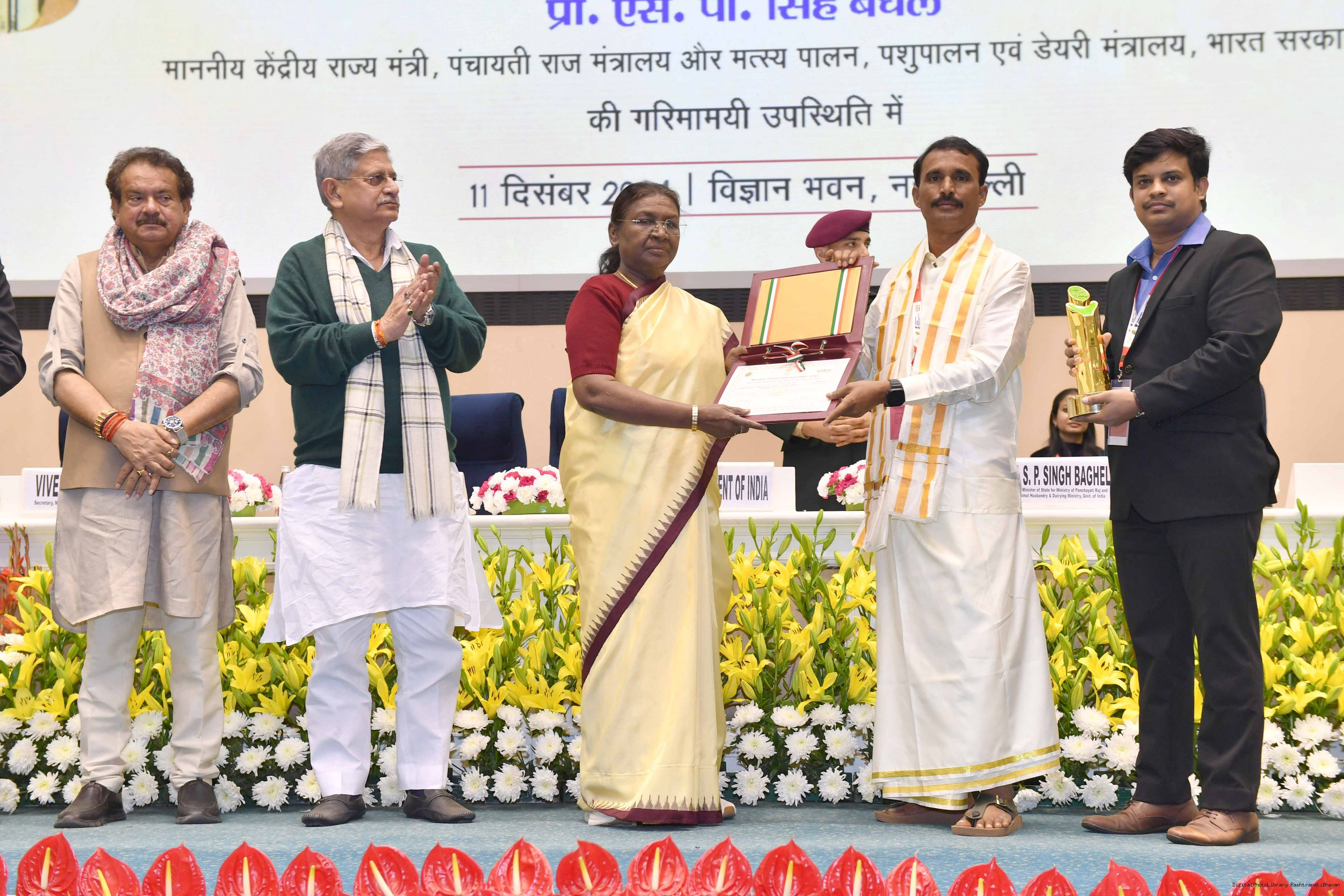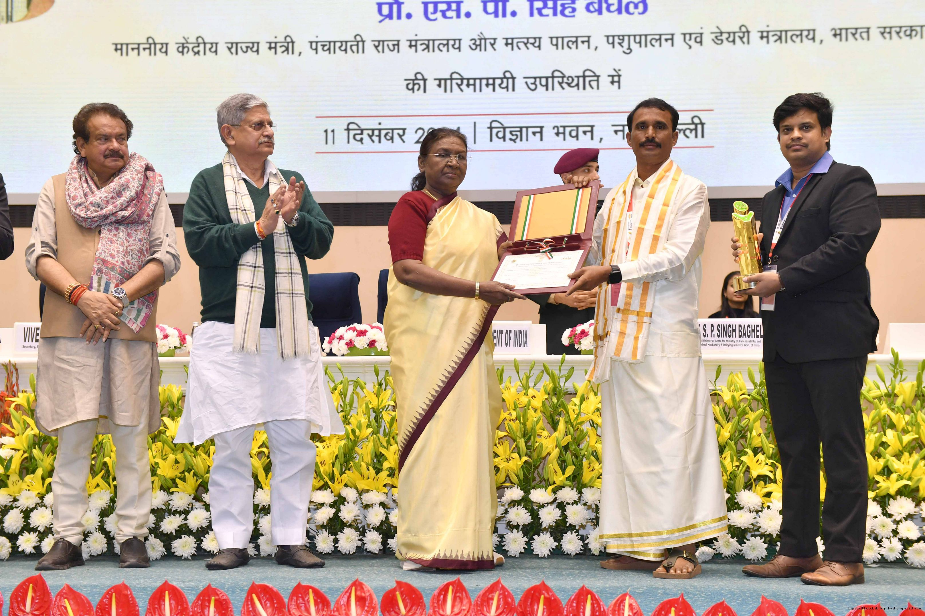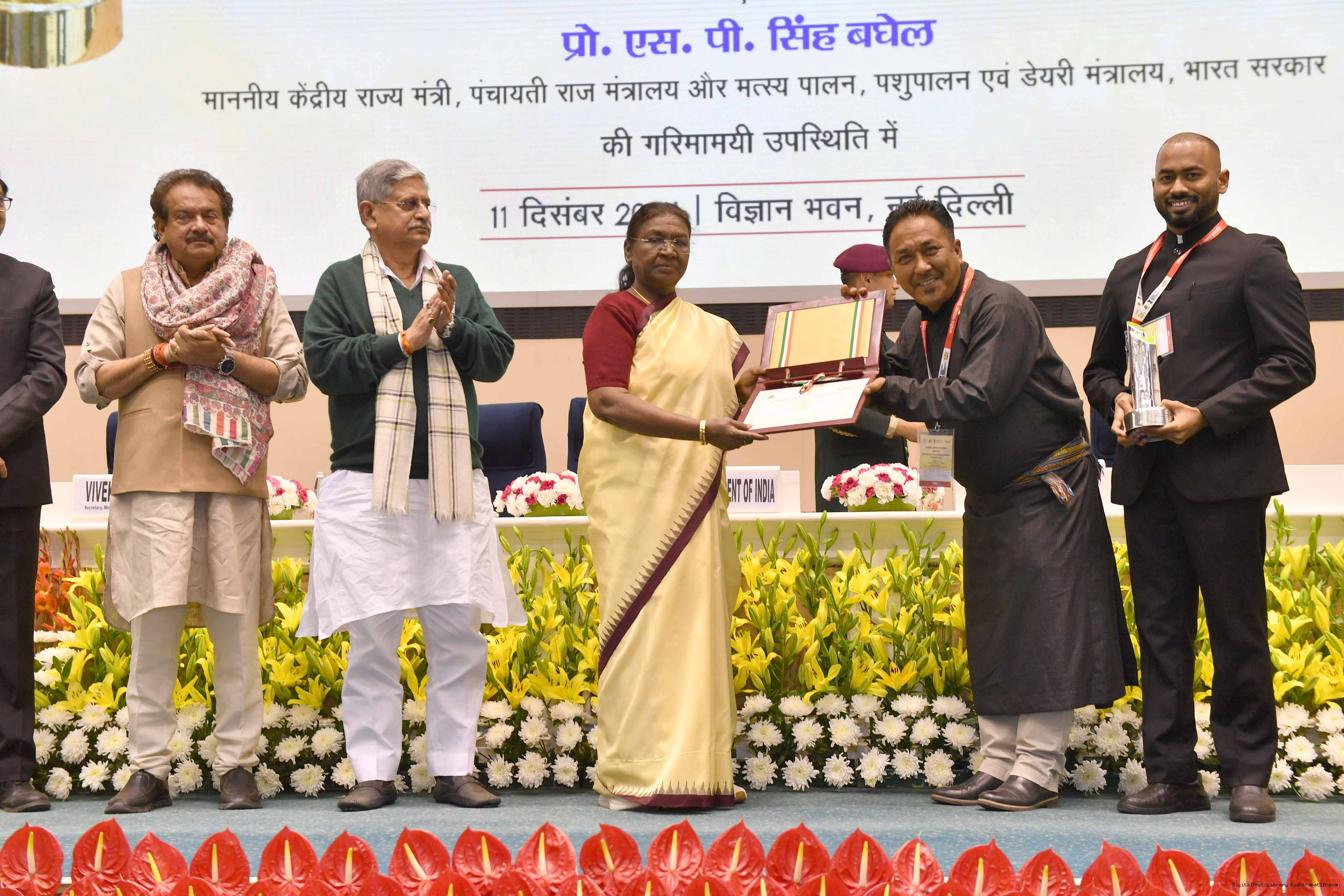 | Caption: | The President of India, Smt Droupadi Murmu conferred the National Panchayat Awards upon 45 awardees, selected across various categories, recognizing their exemplary contributions to the themes of sustainable and inclusive development, in New Delhi on December 11, 2024. |
