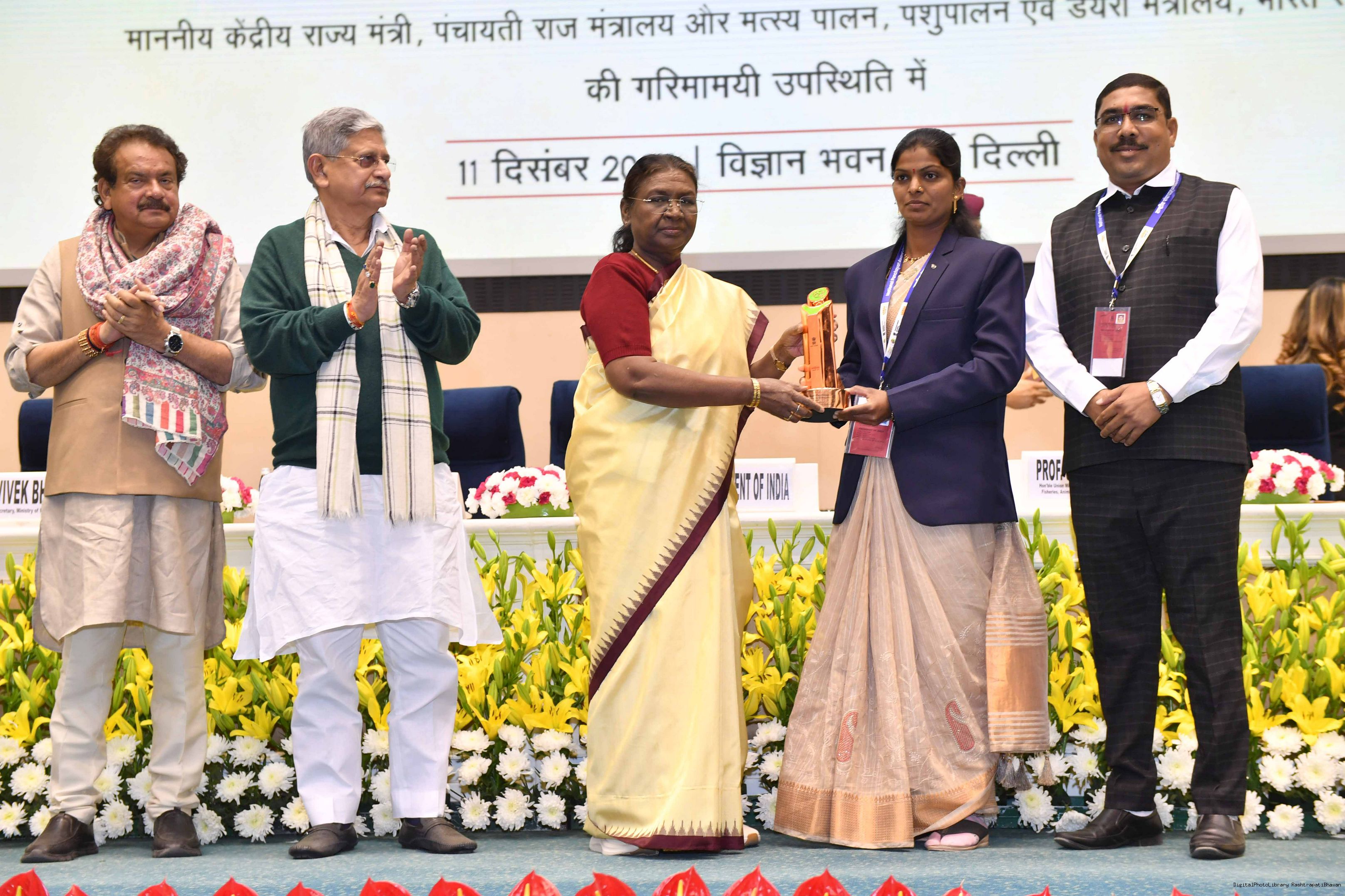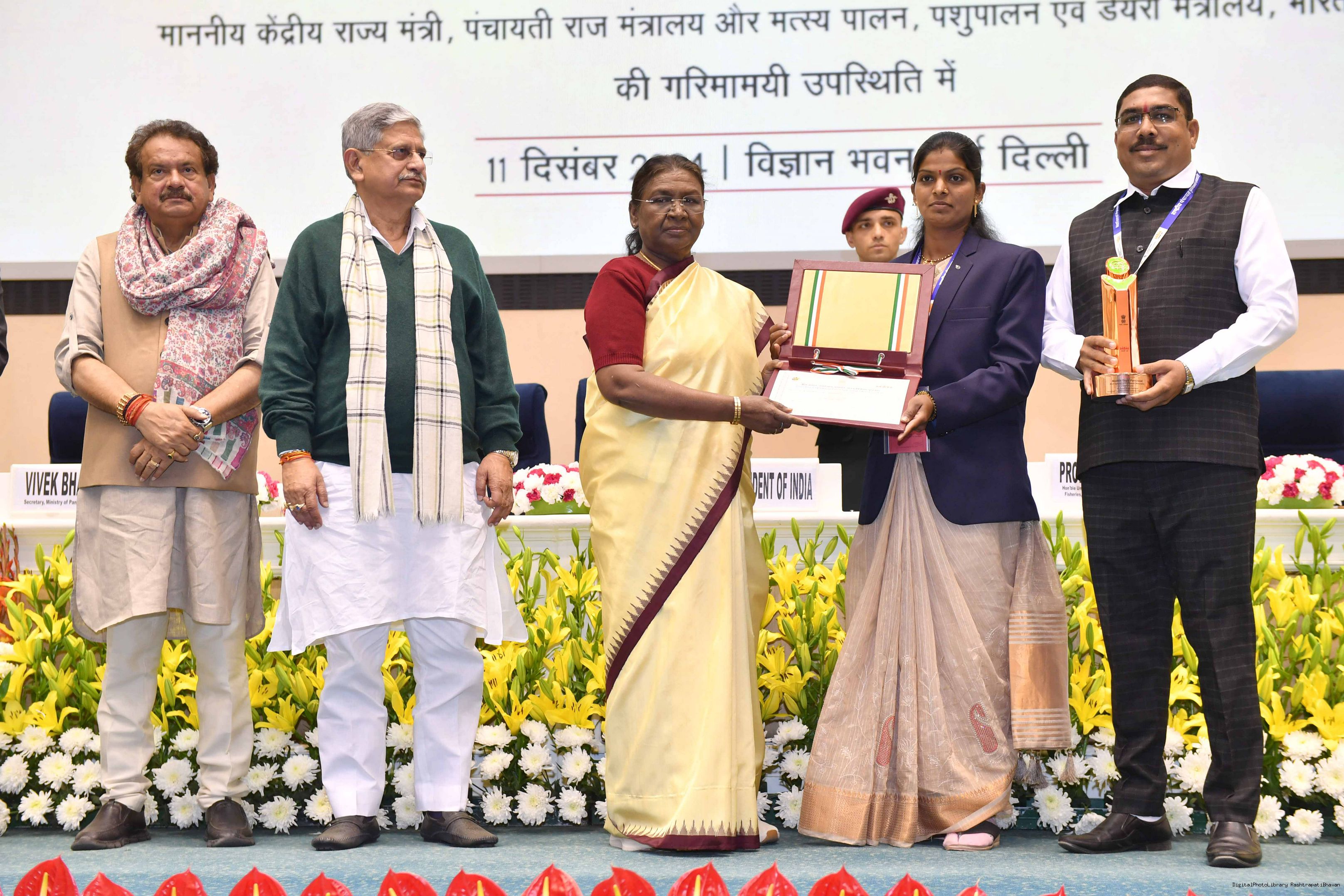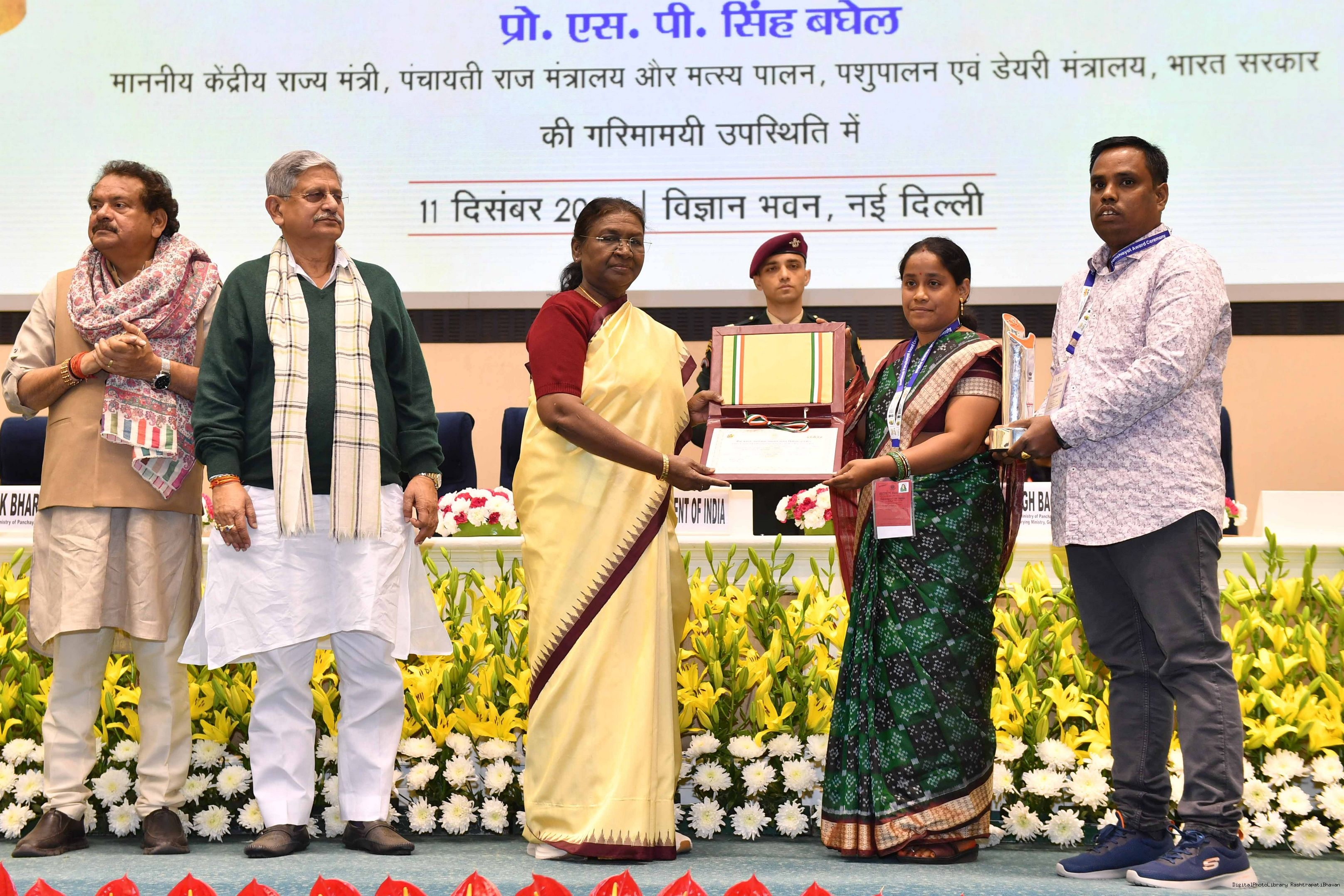 | Caption: | The President of India, Smt Droupadi Murmu conferred the National Panchayat Awards upon 45 awardees, selected across various categories, recognizing their exemplary contributions to the themes of sustainable and inclusive development, in New Delhi on December 11, 2024. |