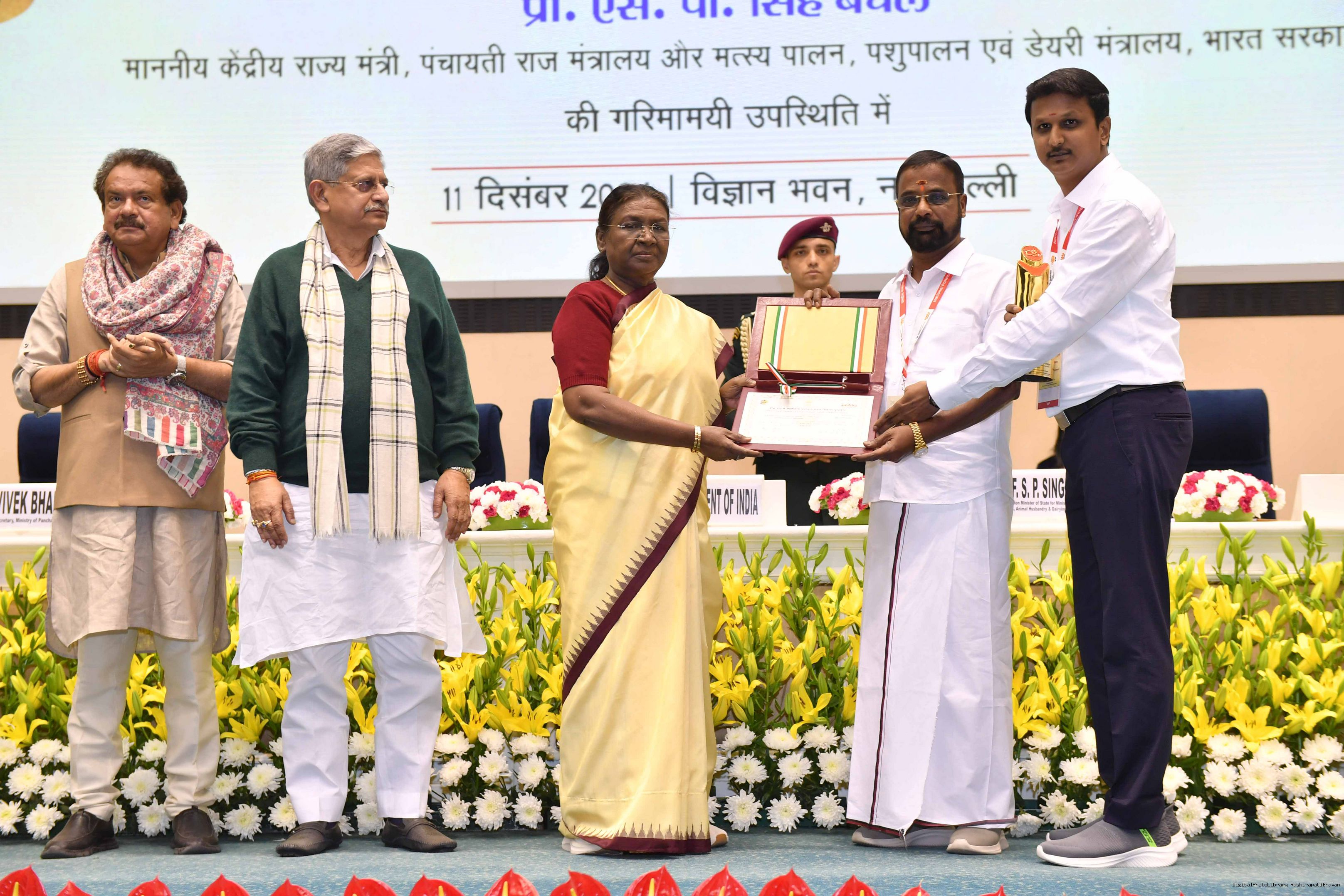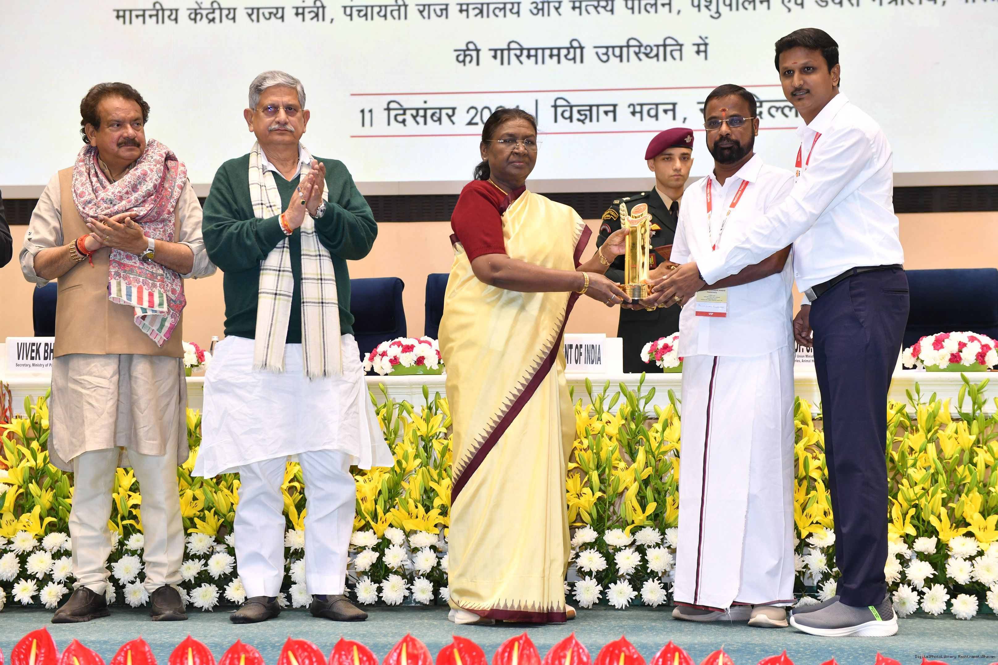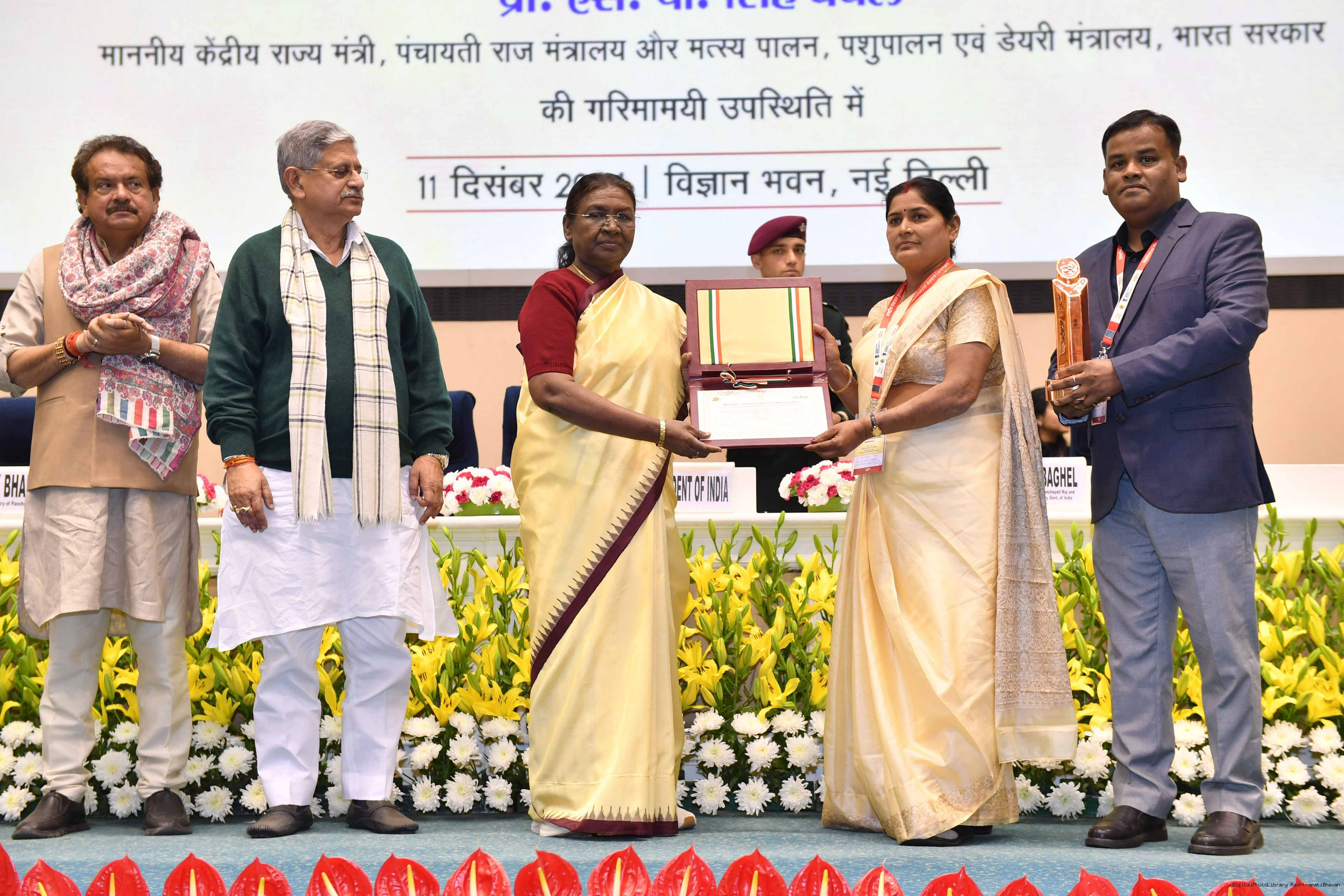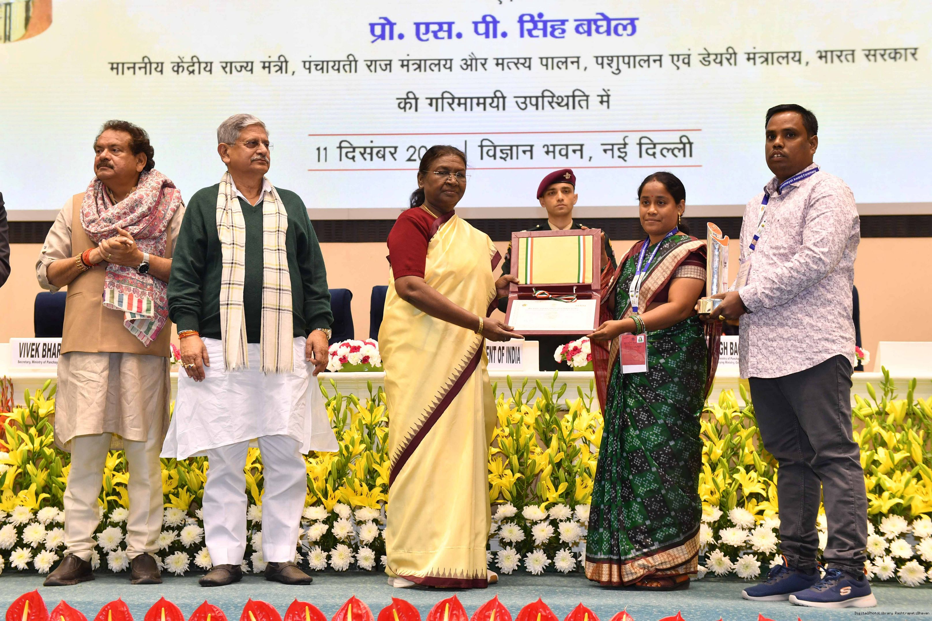 | Caption: | The President of India, Smt Droupadi Murmu conferred the National Panchayat Awards upon 45 awardees, selected across various categories, recognizing their exemplary contributions to the themes of sustainable and inclusive development, in New Delhi on December 11, 2024. |