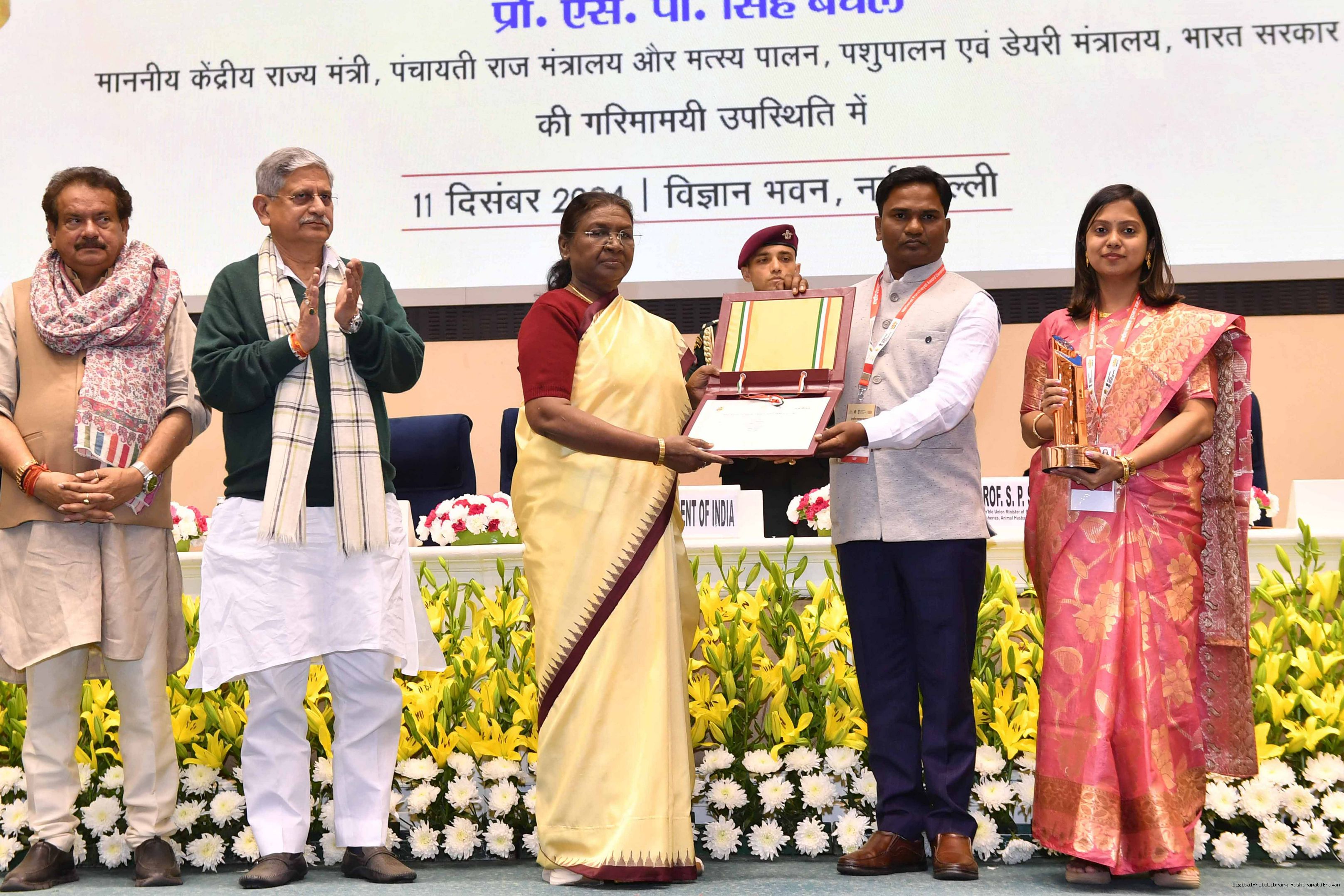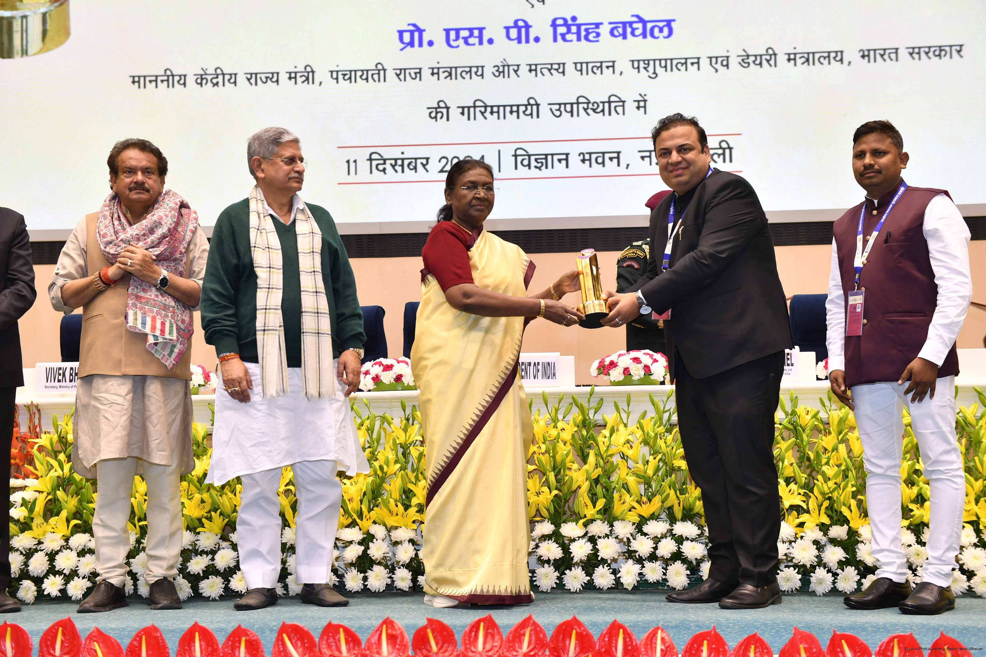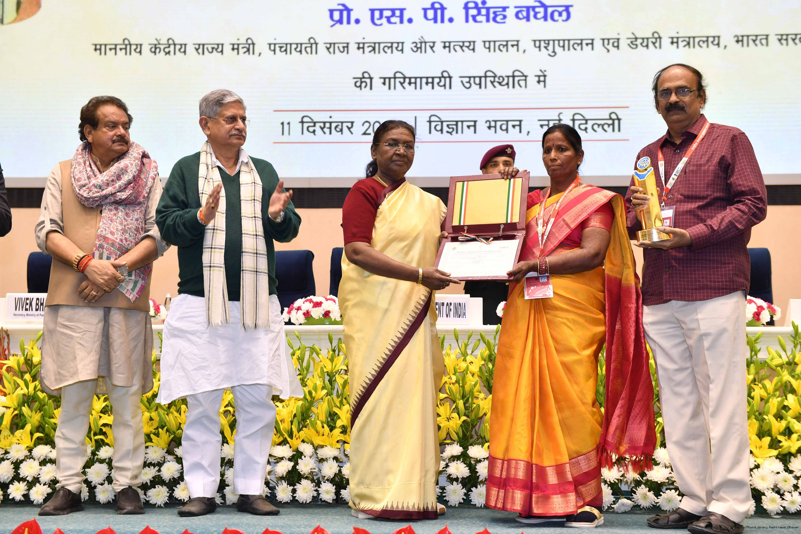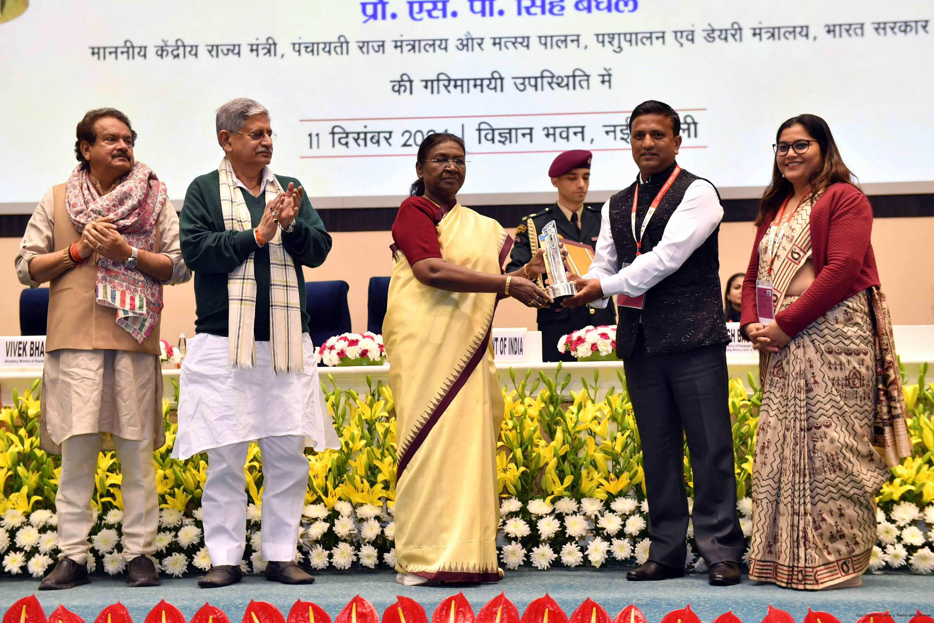 | Caption: | The President of India, Smt Droupadi Murmu conferred the National Panchayat Awards upon 45 awardees, selected across various categories, recognizing their exemplary contributions to the themes of sustainable and inclusive development, in New Delhi on December 11, 2024. |