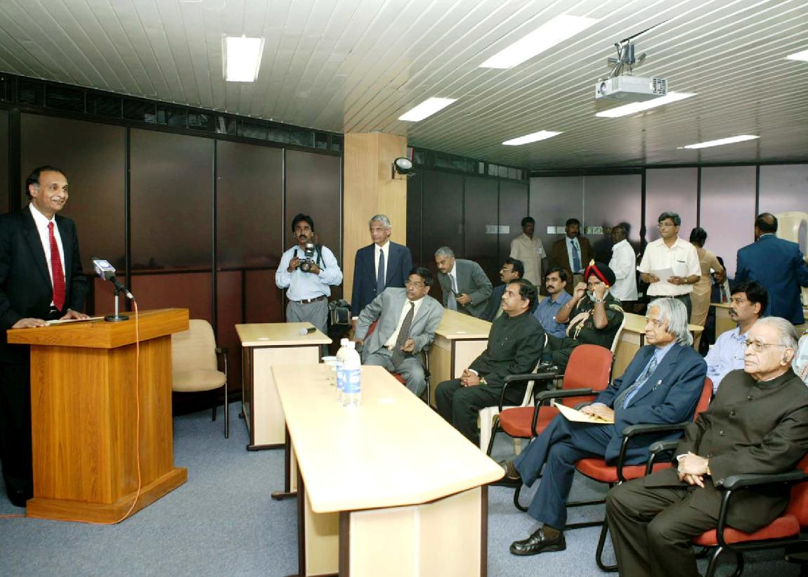 | Caption: | The President of India, Dr A P J Abdul Kalam interacting with the Indian and French Participants on Franco Indian Cyber University in Sciences (FICUS) at Bangalore in Karnataka on Jan 16, 2004 |