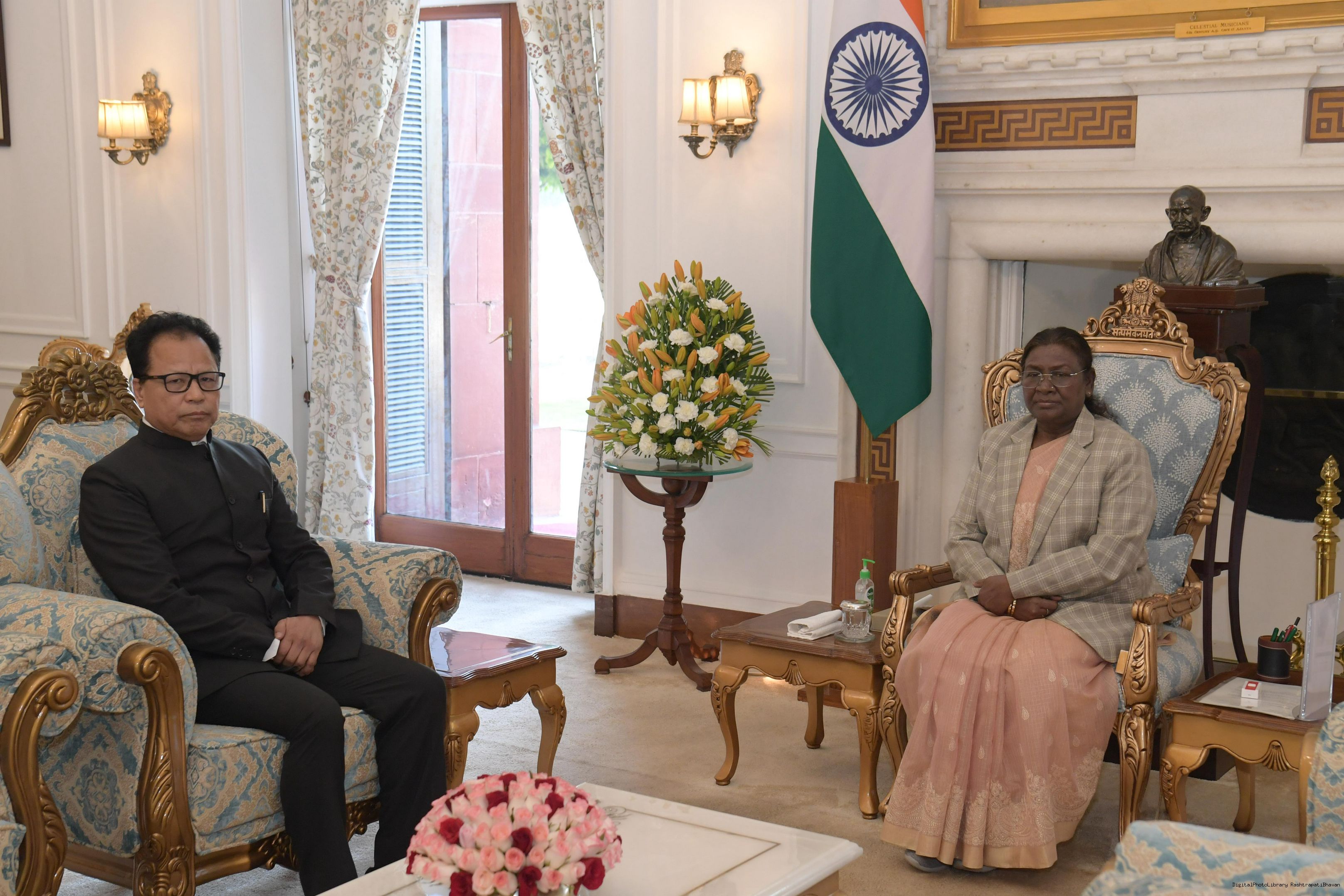 | Caption: | The Ambassador-designate of India to the Republic of Djibouti, Shri M. Keivom meeting with the President of India Smt. Droupadi Murmu at Rashtrapati Bhavan on December 13, 2024. |