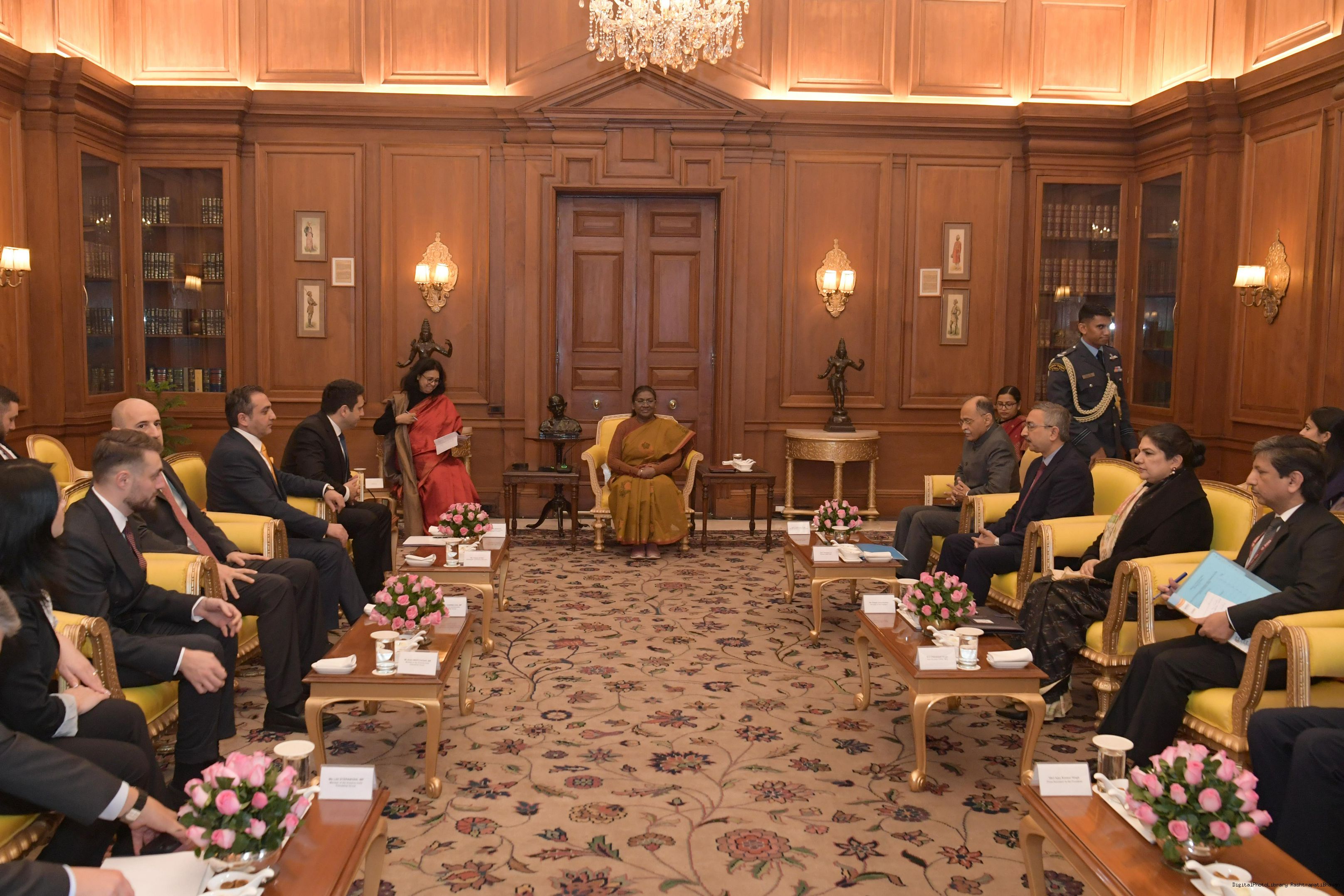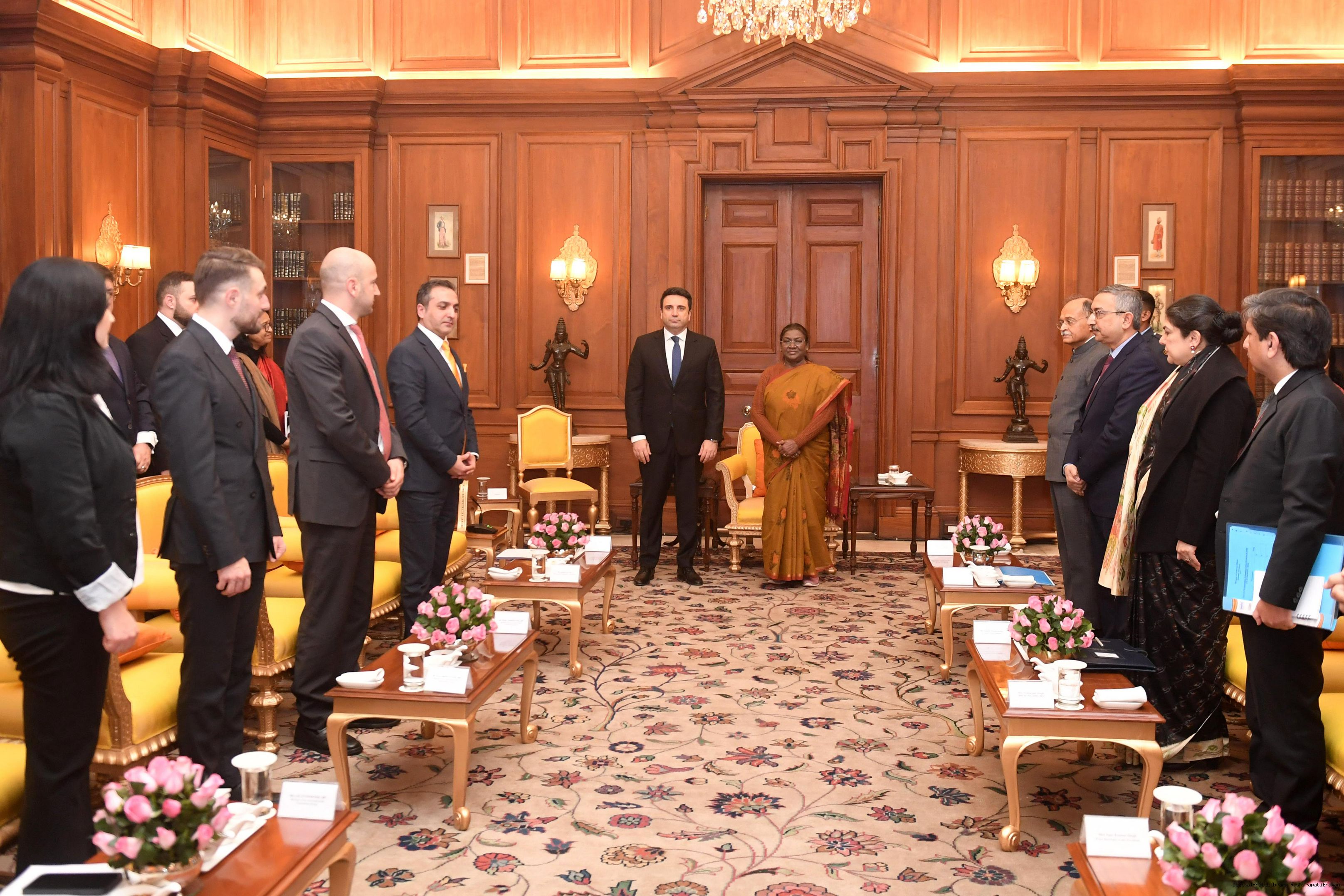| Caption: | A parliamentary delegation from the Republic of Armenia, led by H.E. Mr Alen Simonyan, President of the National Assembly of the Republic of Armenia, called on the President of India, Smt Droupadi Murmu at Rashtrapati Bhavan on December 16, 2024. |
