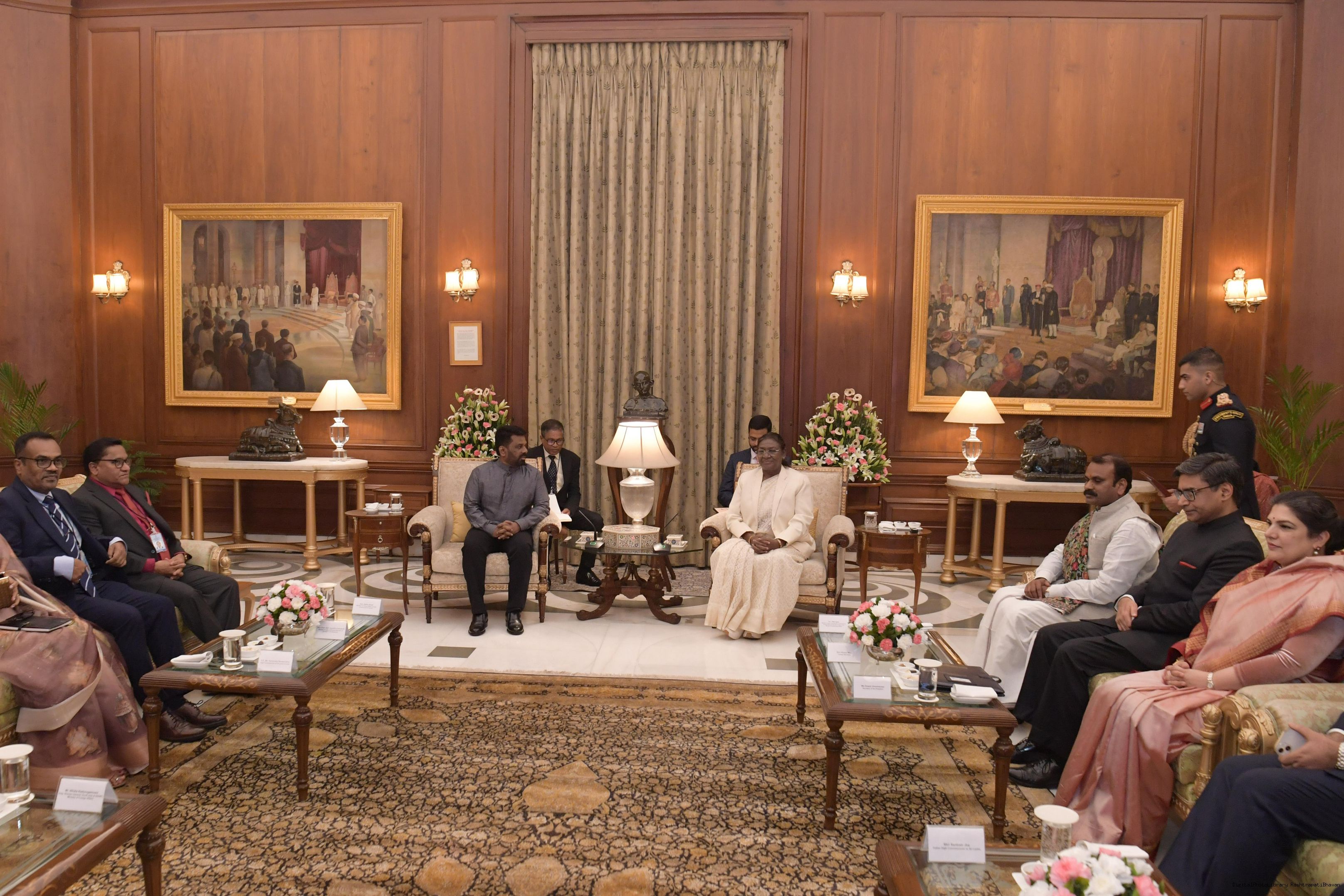 | Caption: | The President of India, Smt Droupadi Murmu received H.E. Mr Anura Kumara Disanayake, President of the Democratic Socialist Republic of Sri Lanka at Rashtrapati Bhavan on December 16, 2024. |