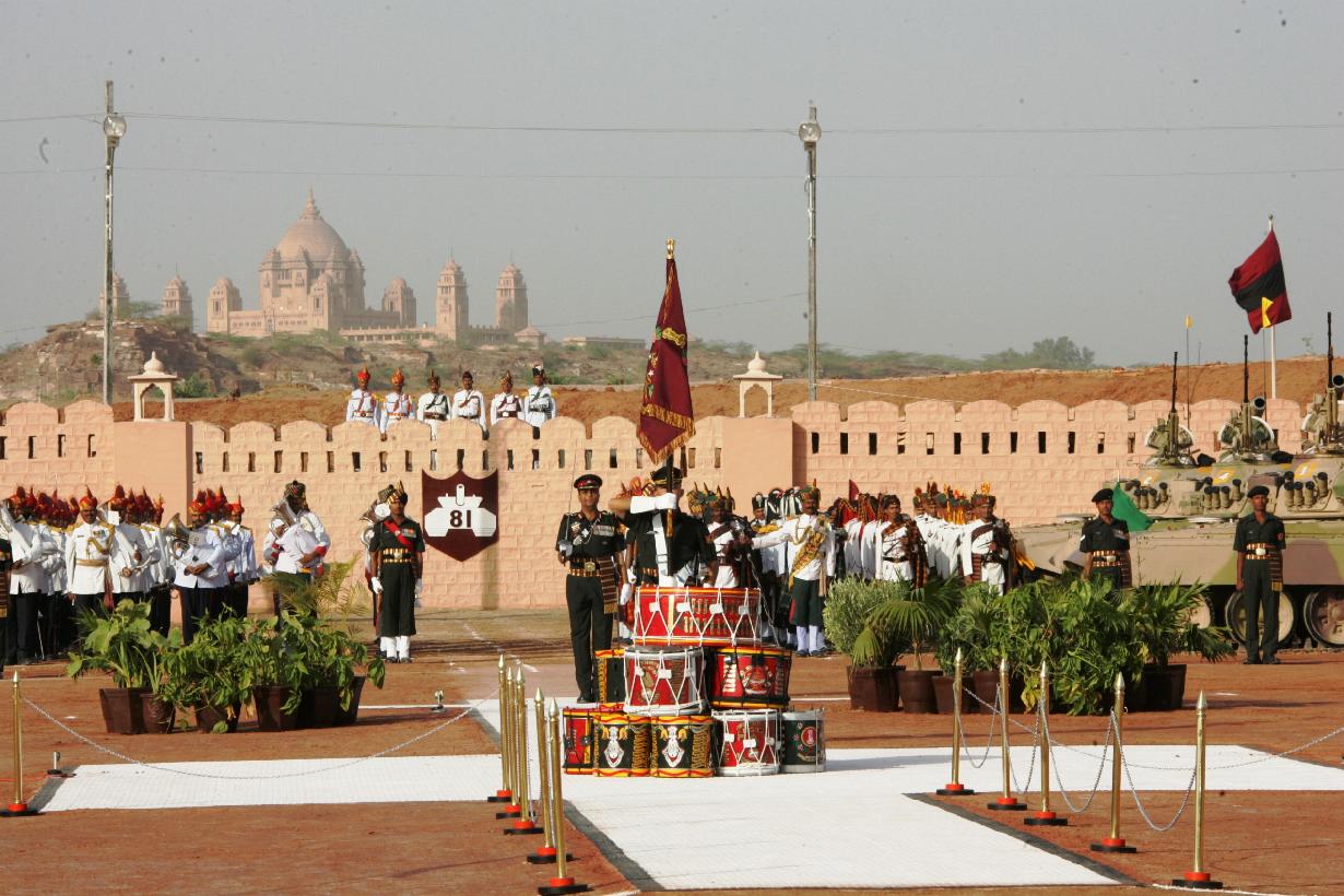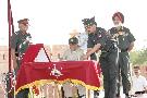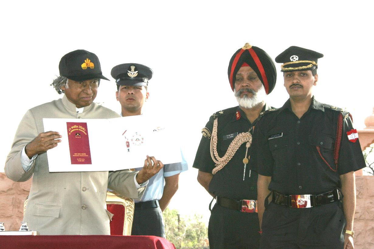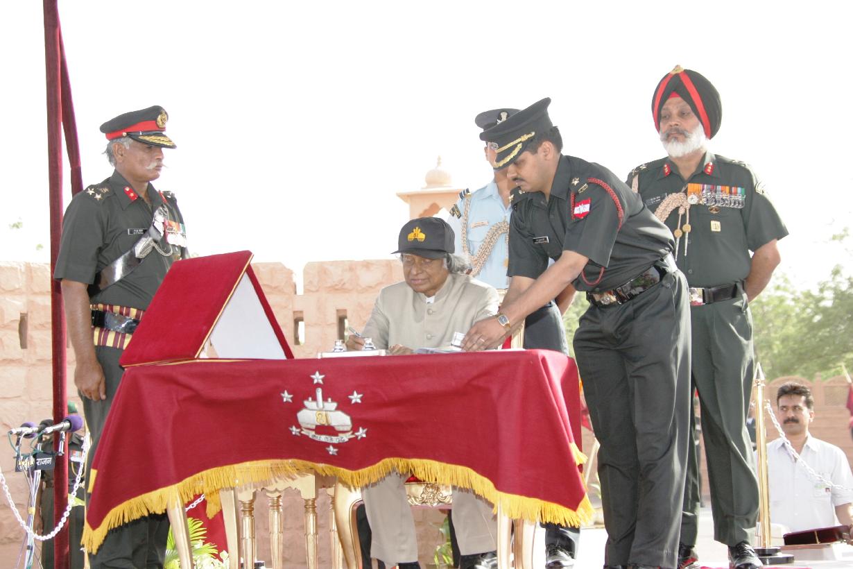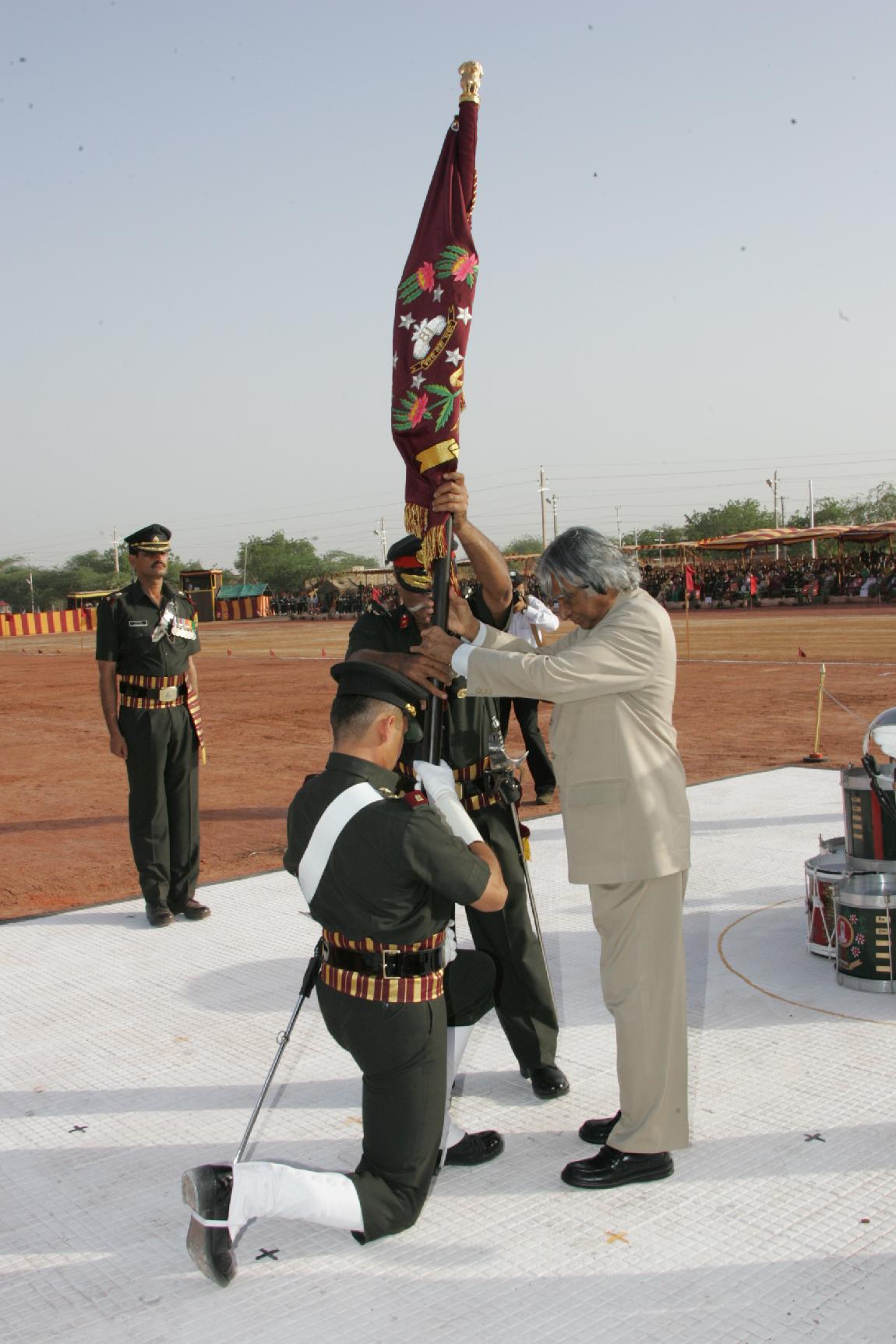 | Caption: | The President of India, Dr A P J Abdul Kalam presenting the Standard to 68 Armoured Regiment and releasing the First Day Cover at Bhatinda in Punjab on May 16, 2005 |