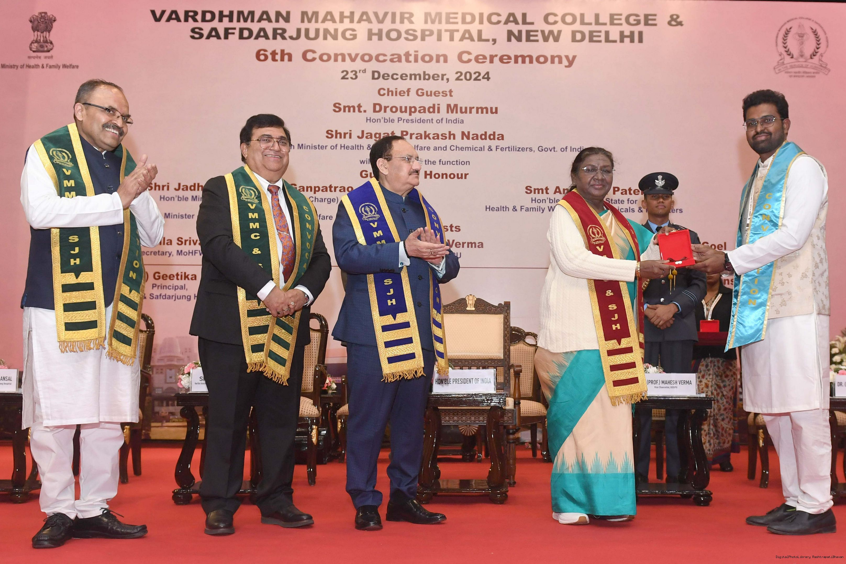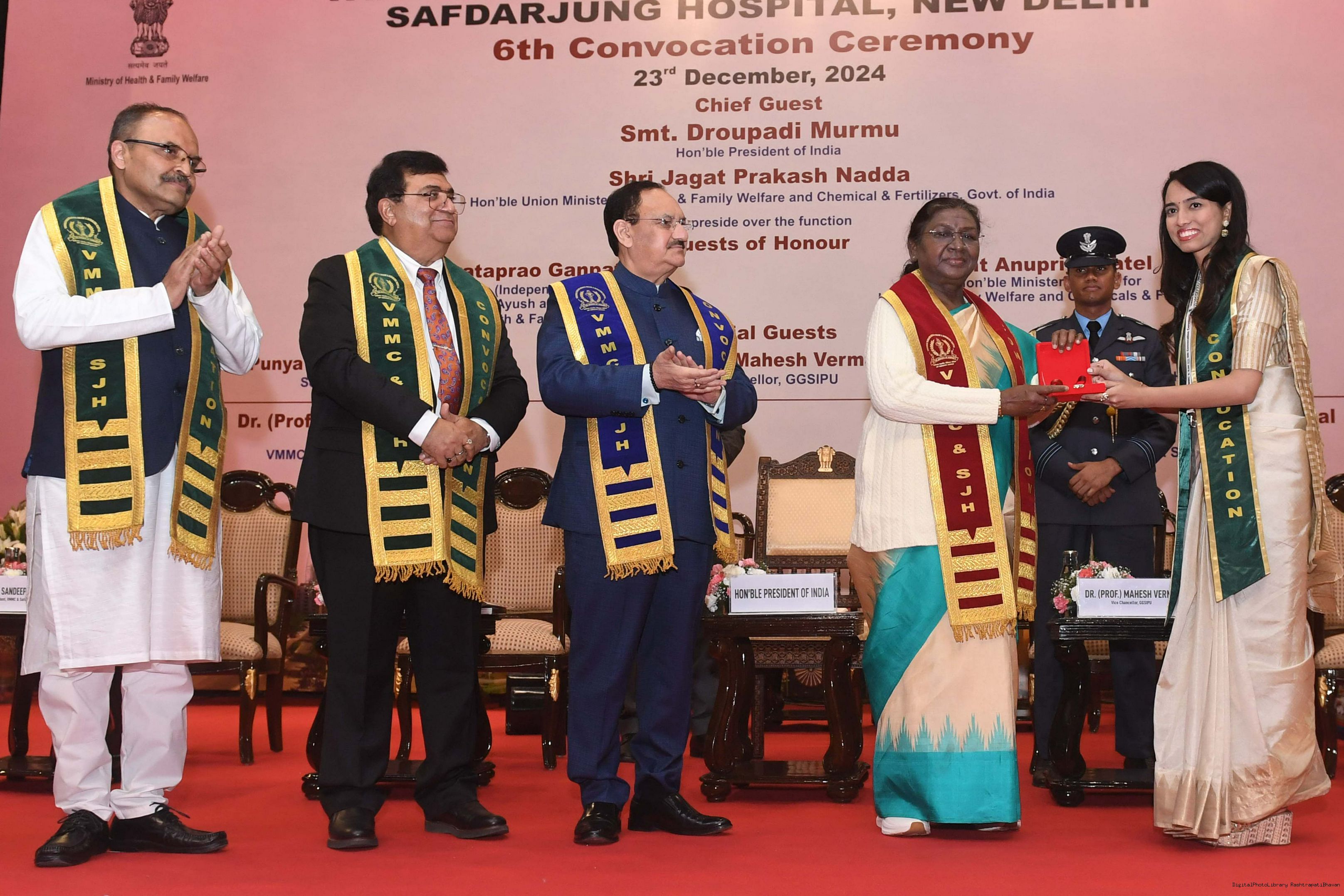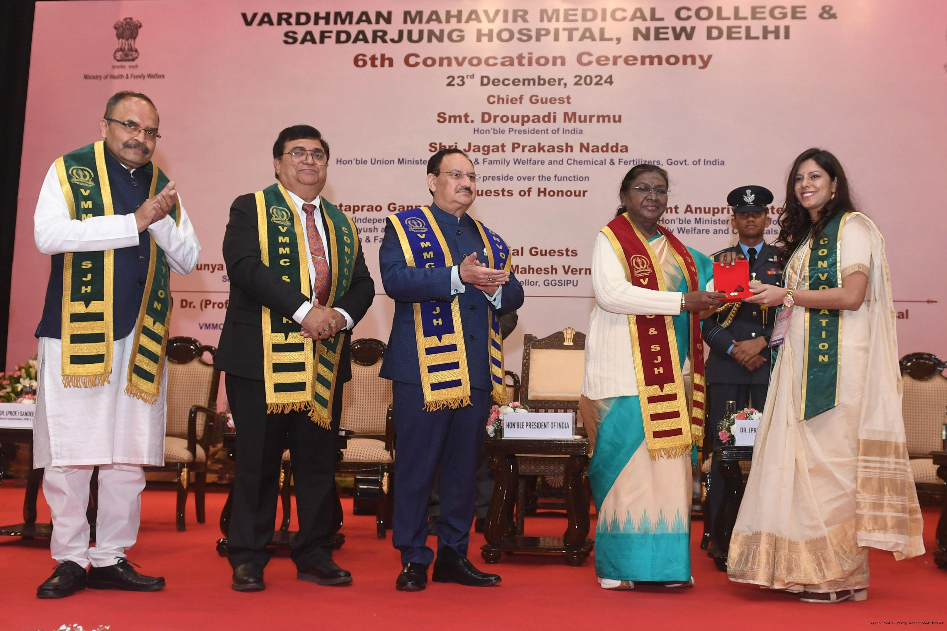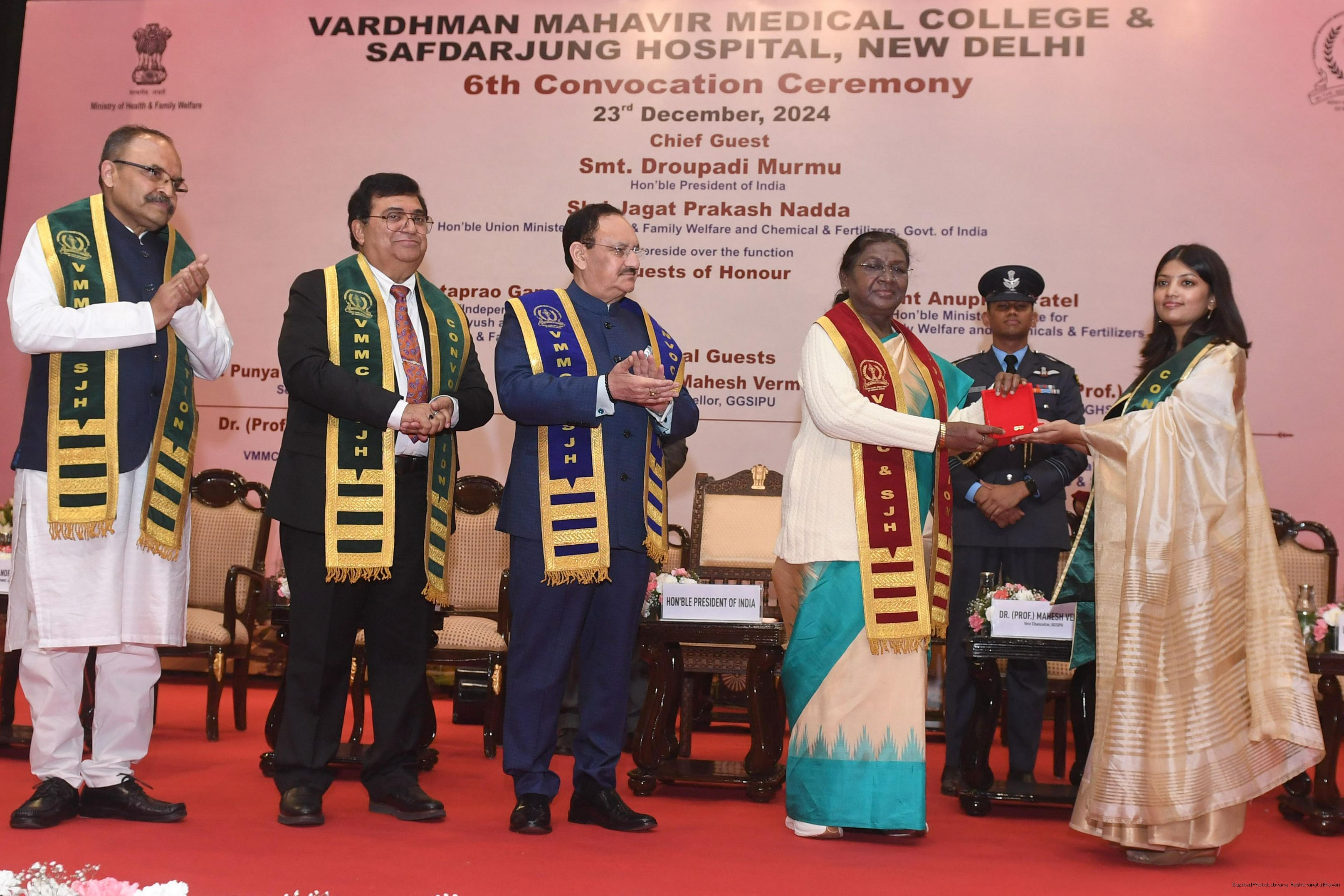 | Caption: | The President of India, Smt Droupadi Murmu graced the convocation ceremony of Vardhman Mahavir Medical College and Safdarjung Hospital in New Delhi on December 23, 2024. |