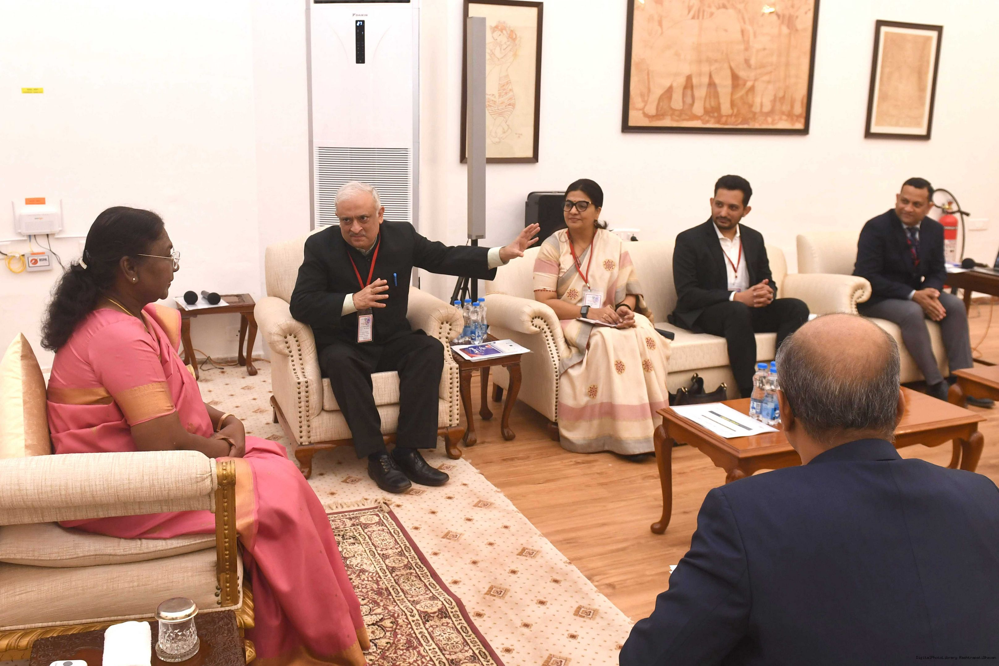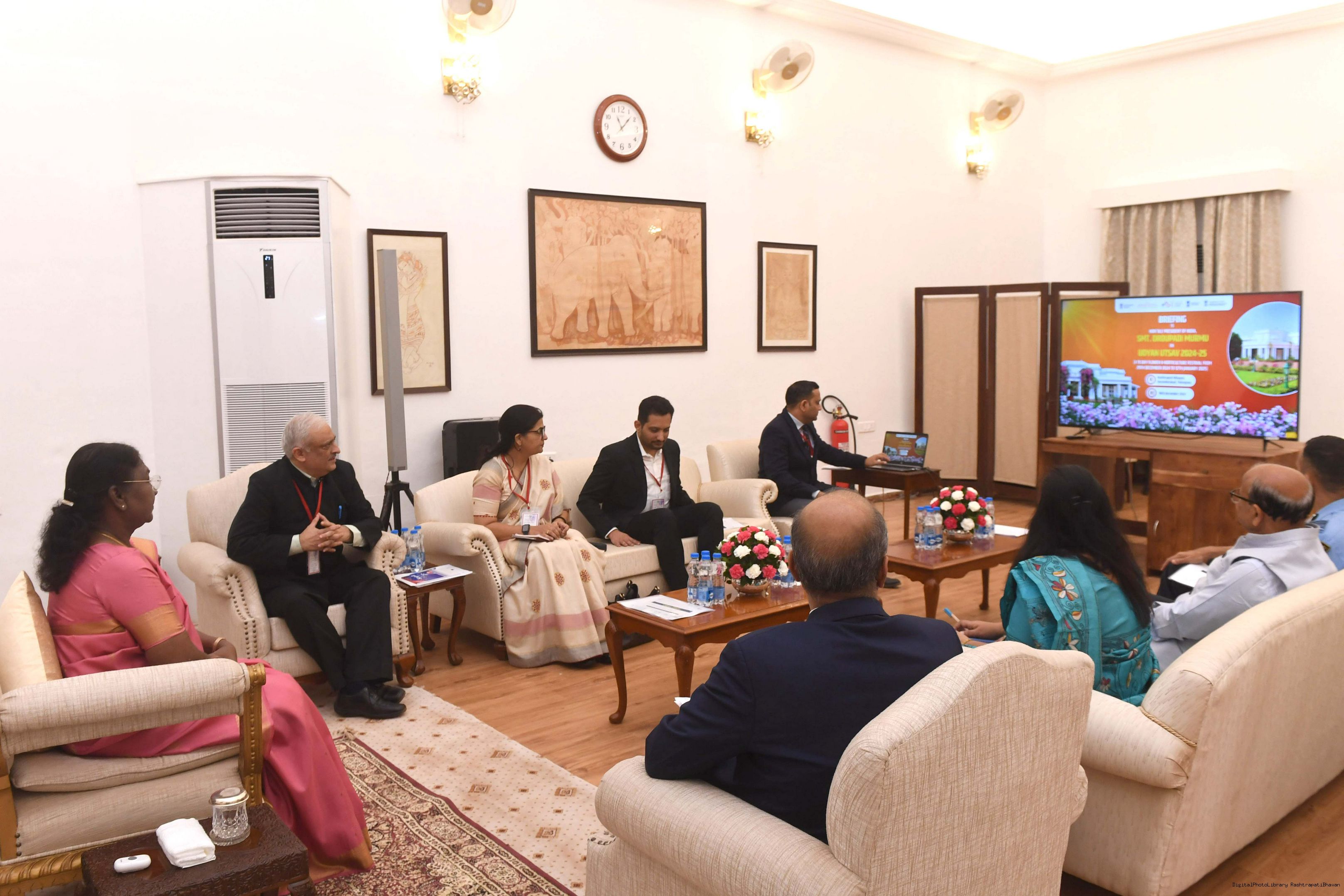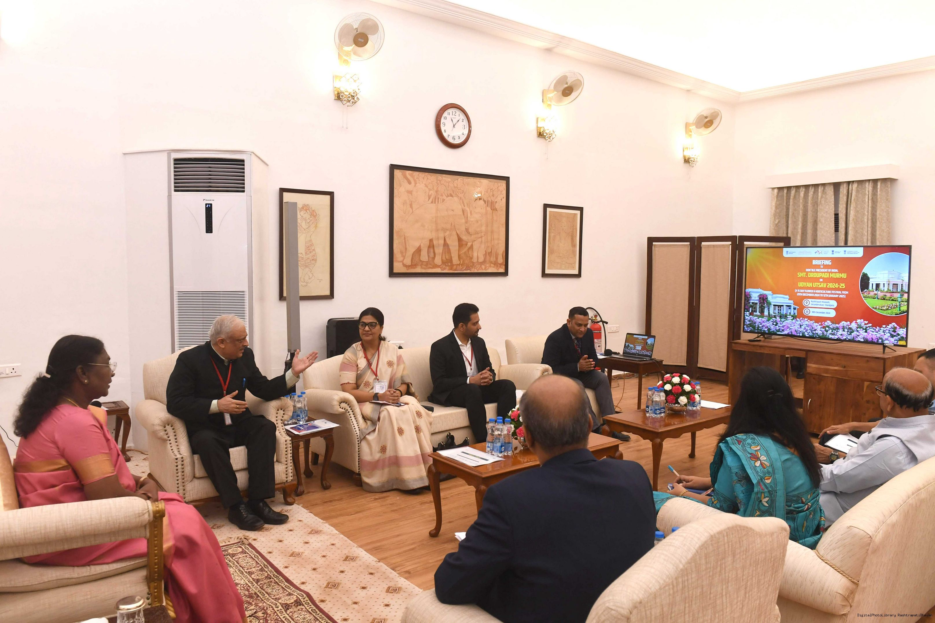 | Caption: | The President of India, Smt Droupadi Murmu Briefing by the Secy. Ministry of Agriculture, DG-National Institute of Agricultural Extension Management, Hyderabad on December 18, 2024. |
