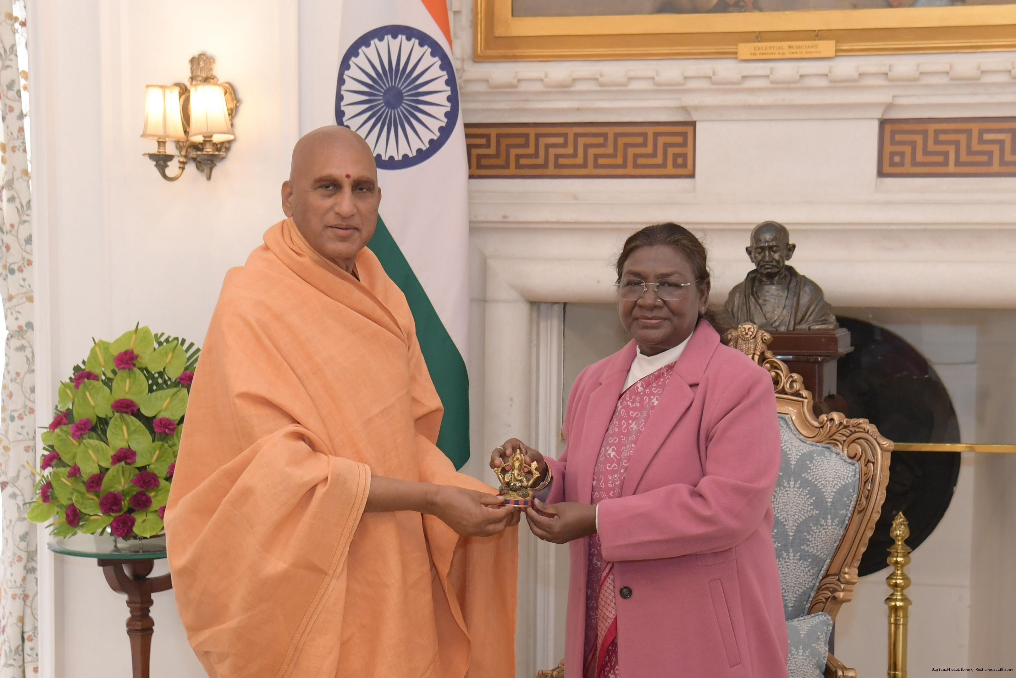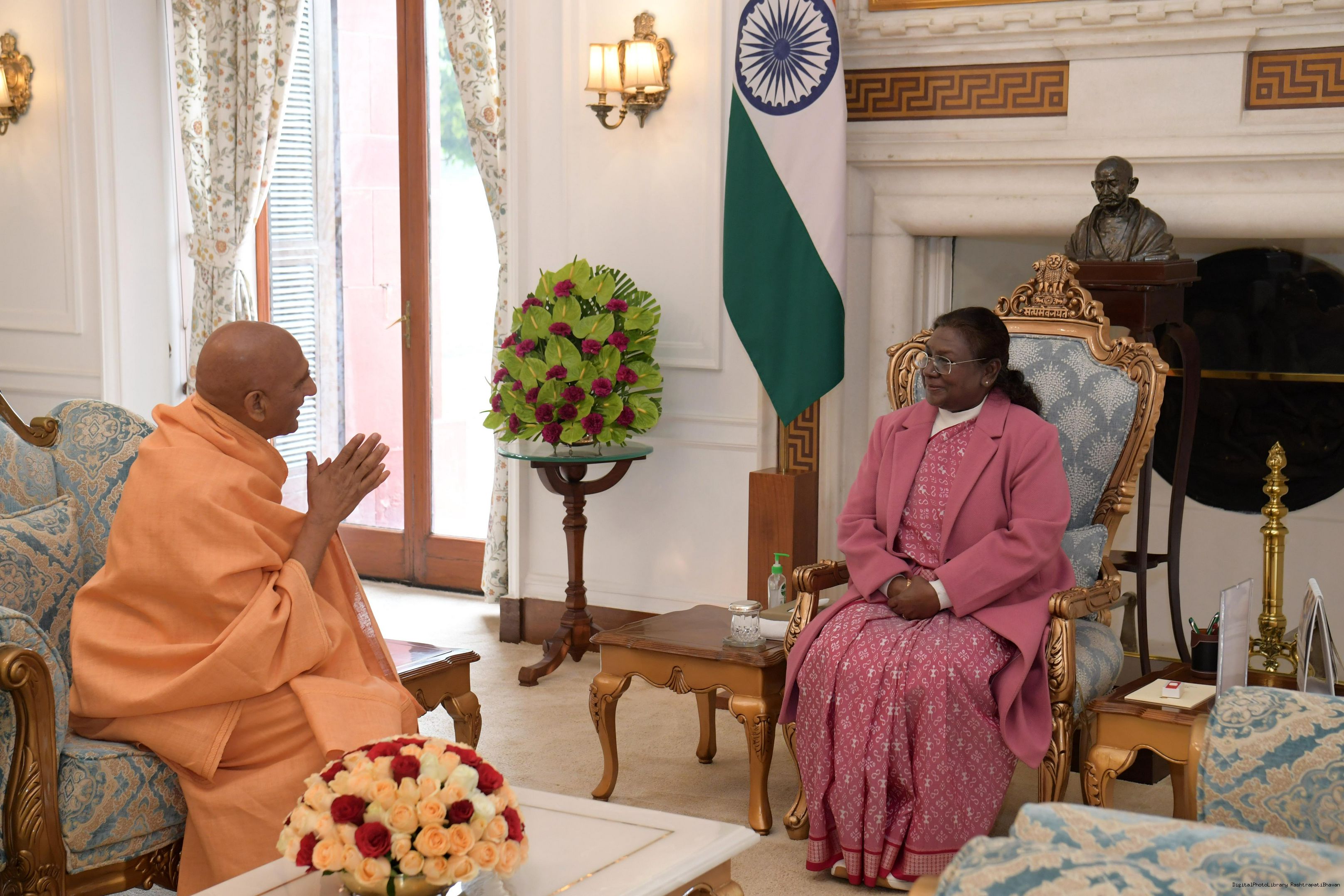 | Caption: | Swami Avdheshanand Giri ji, Chief of Panchdashnam Juna Akhara meeting with the President of India Smt. Droupadi Murmu at Rashtrapati Bhavan on December 24, 2024. |