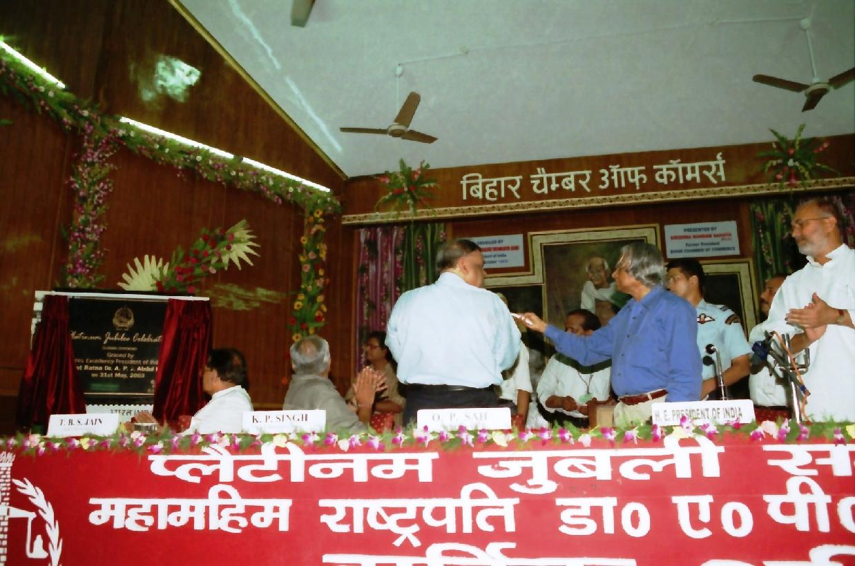 | Caption: | The President of India, Dr A P J Abdul Kalam at the Chamber of Commerce at Bodh Gaya in Bihar on May 31, 2003 |