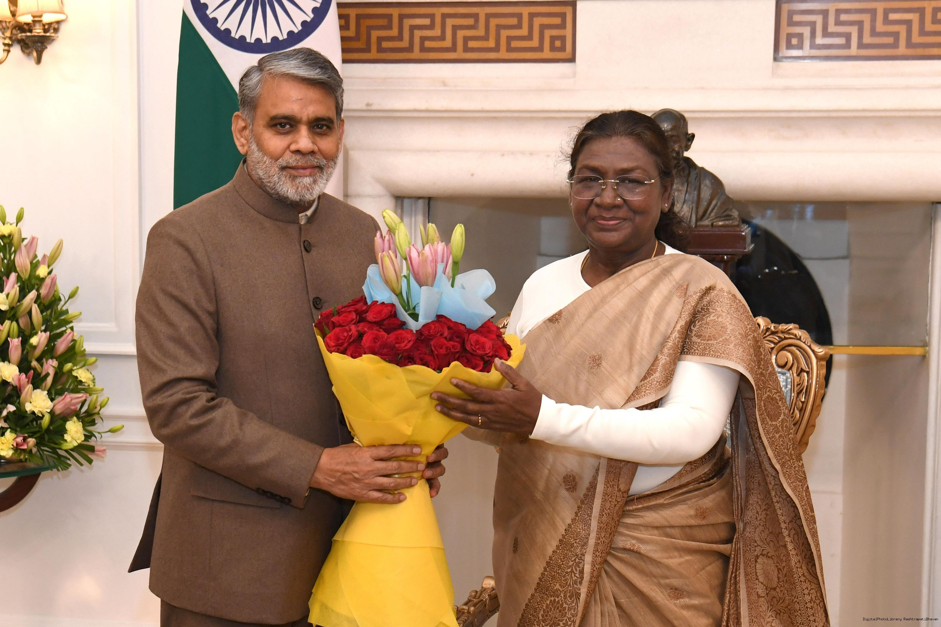 | Caption: | Justice Shri Suresh Kumar Kait, Chief Justice, High Court of Madhya Pradesh meeting with the President of India Smt. Droupadi Murmu at Rashtrapati Bhavan on December 27, 2024. |