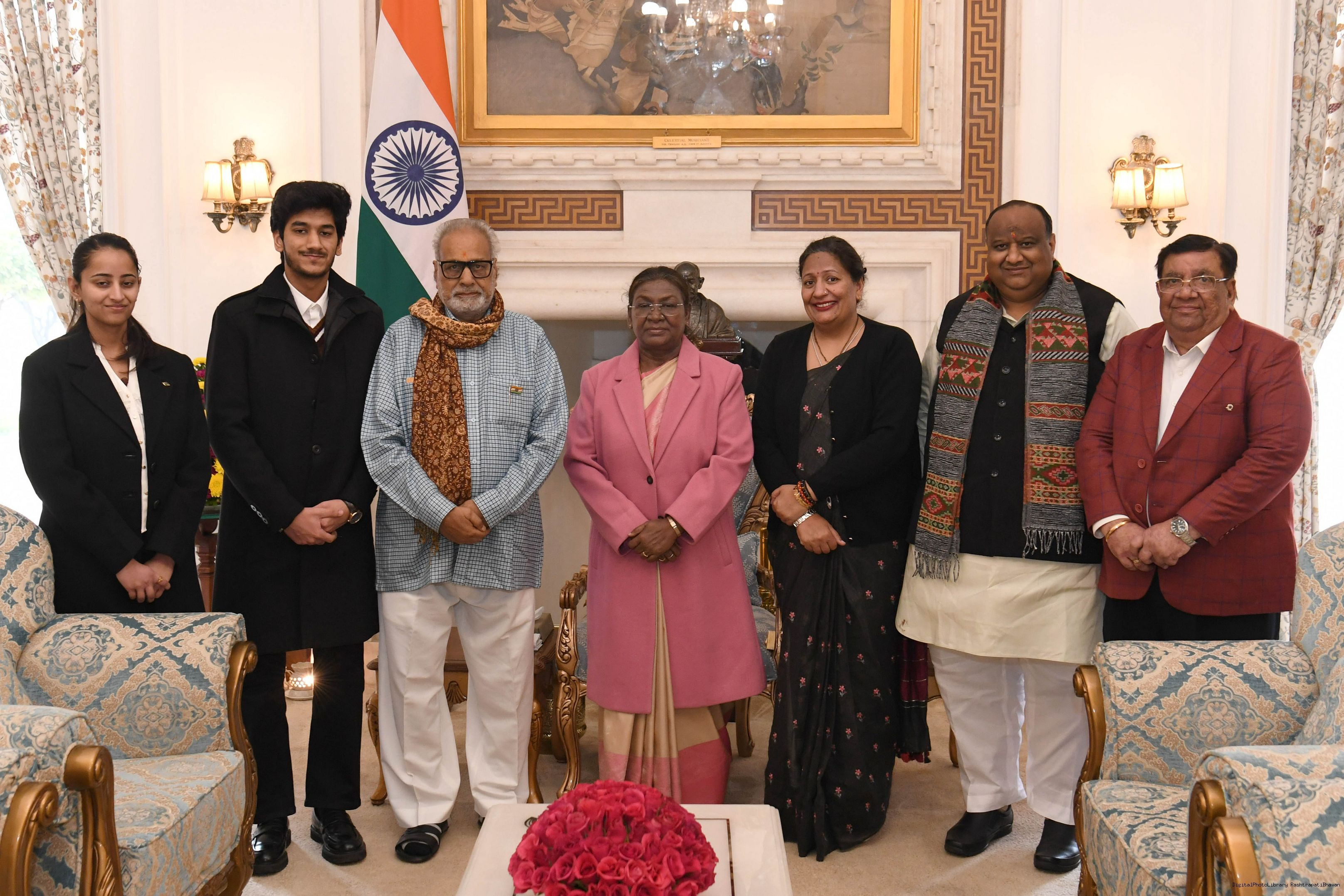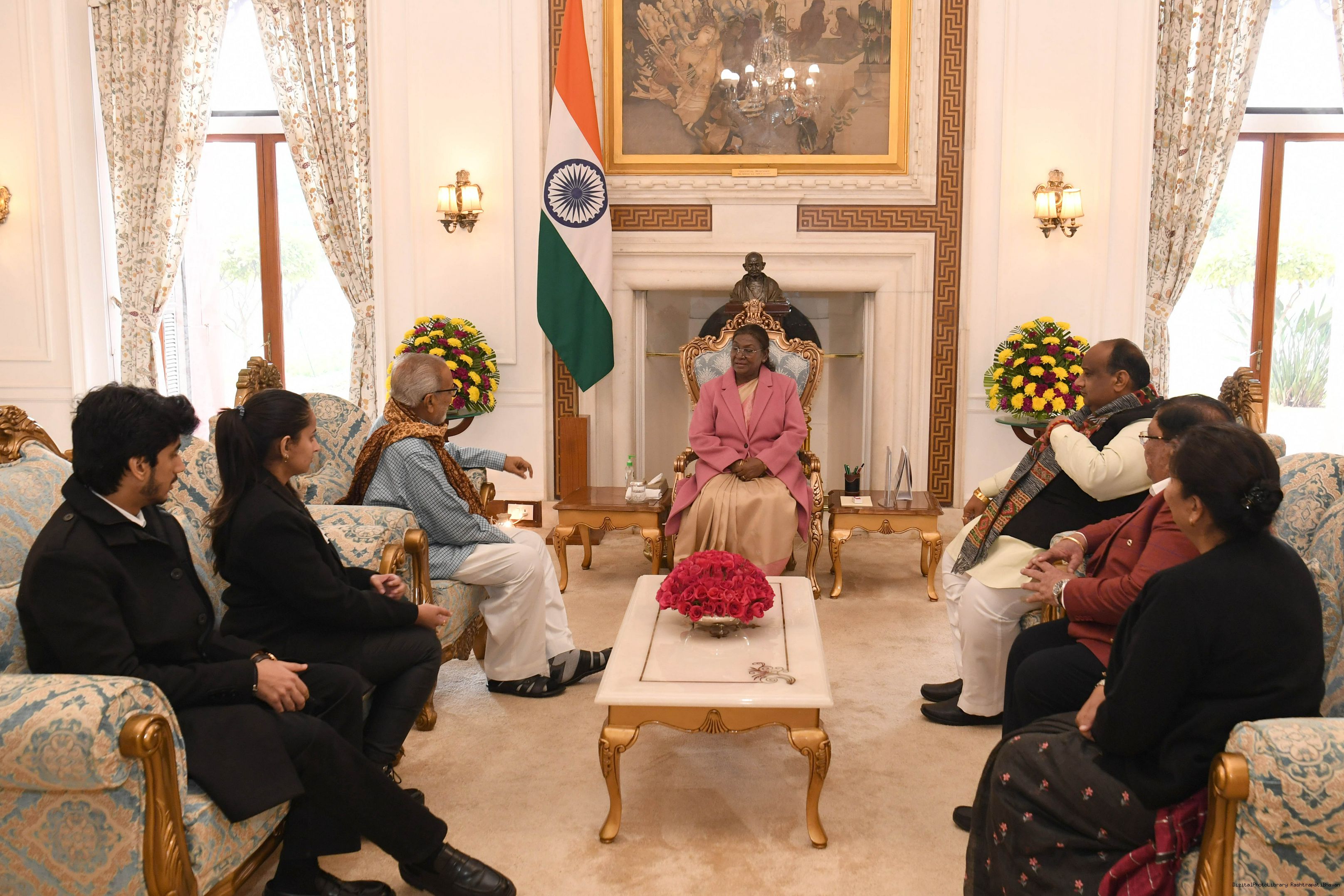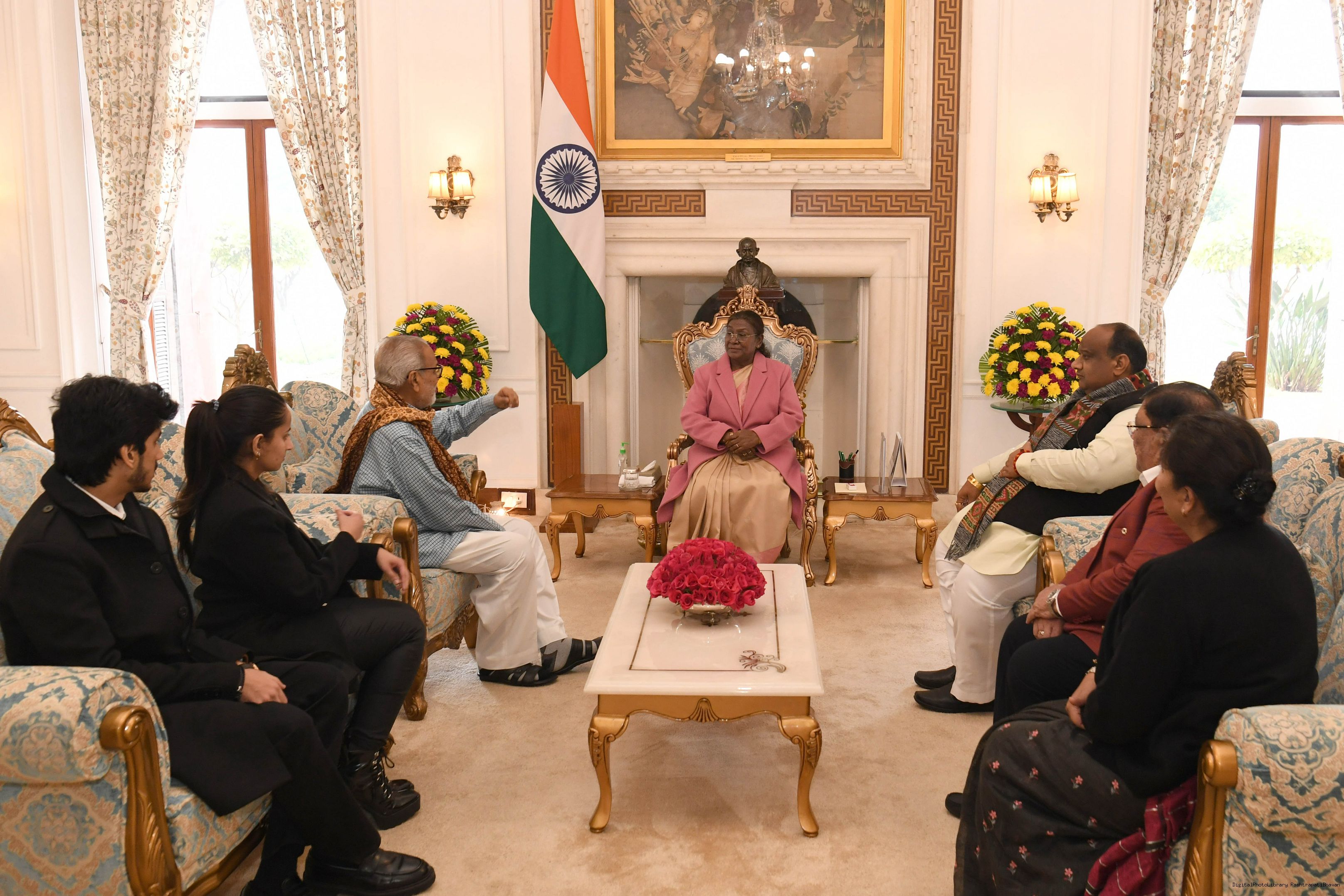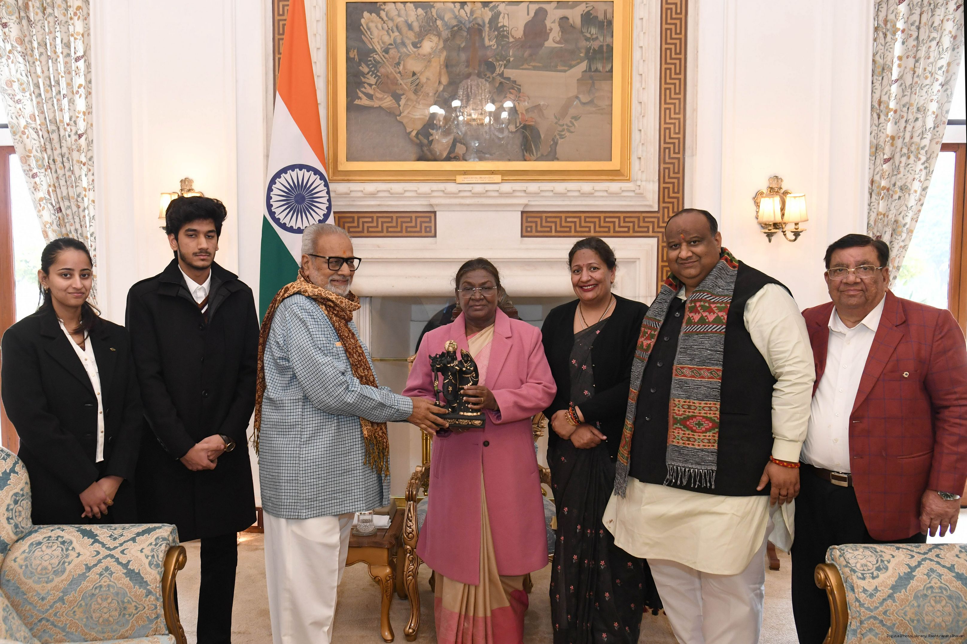 | Caption: | Prof. Ganeshi Lal, former Governor of Odisha along with others meeting with the President of India Smt. Droupadi Murmu at Rashtrapati Bhavan on December 02, 2025. |