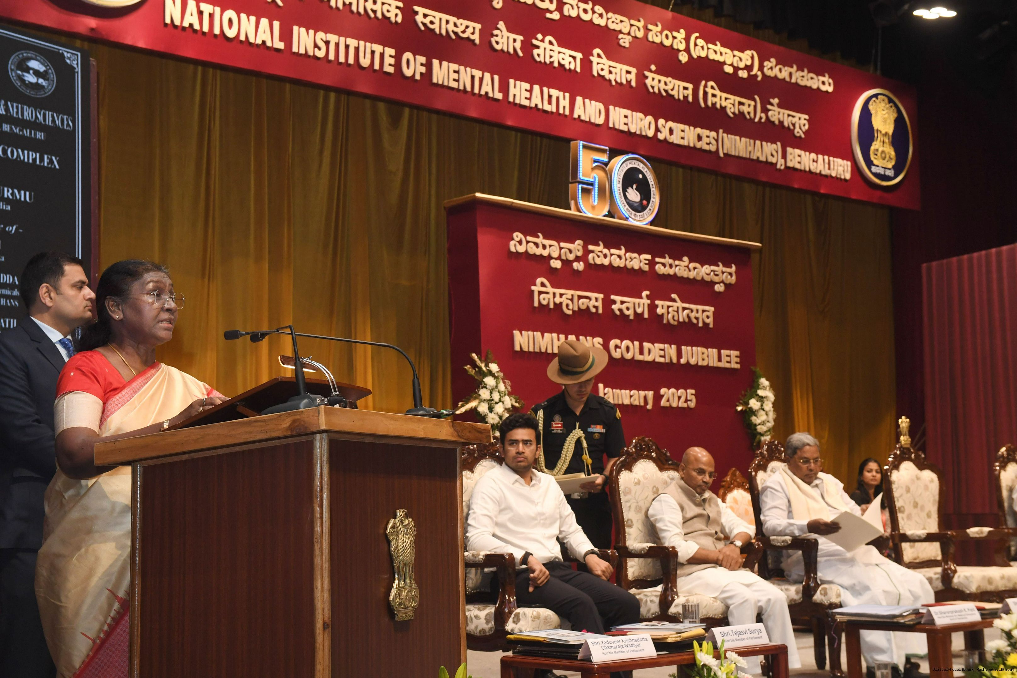 | Caption: | The President of India, Smt Droupadi Murmu graced the commemoration of the golden jubilee celebrations of the National Institute of Mental Health and Neuro Sciences (NIMHANS) at Bengaluru on January 3, 2025. Vol-V |