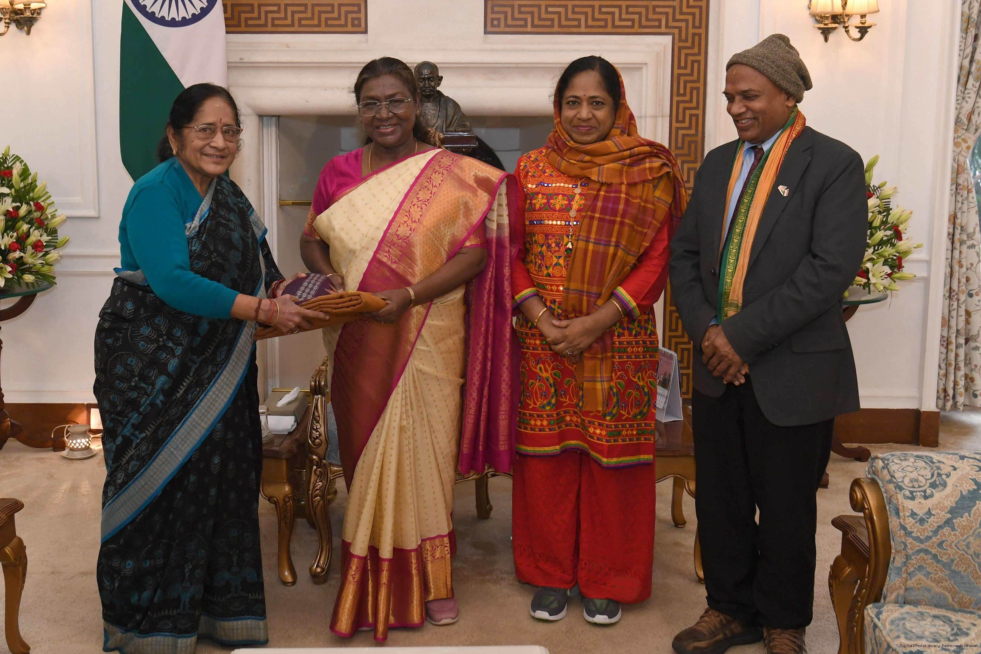| Caption: | Smt. Sakuntala Baliarsingh along with others meeting with the President of India Smt. Droupadi Murmu at Rashtrapati Bhavan on January 06, 2025. |