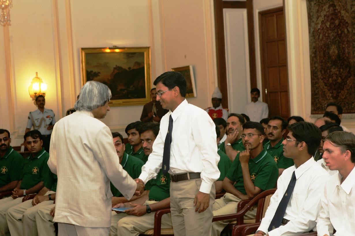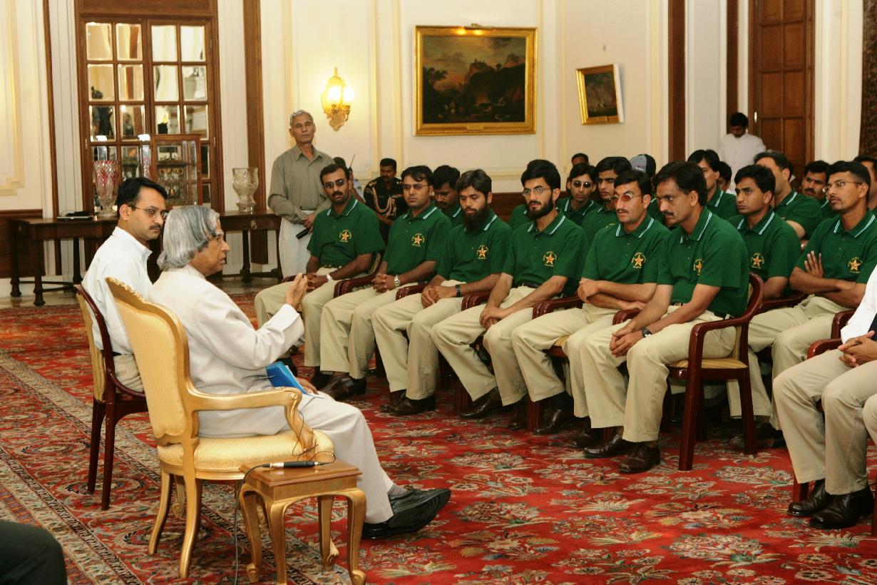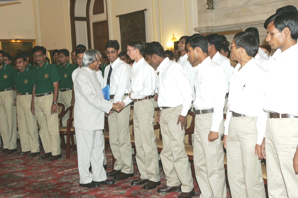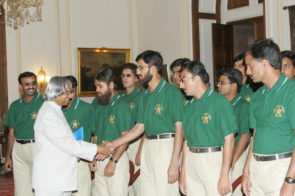 | Caption: | The Members of India Pakistan Blind Cricket Team and Officials of Association for Cricket for the Blind in India calling on the President of India, Dr A P J Abdul Kalam at the Yellow Drawing Room at Rashtrapati Bhavan in New Delhi on May 03, 2005 |