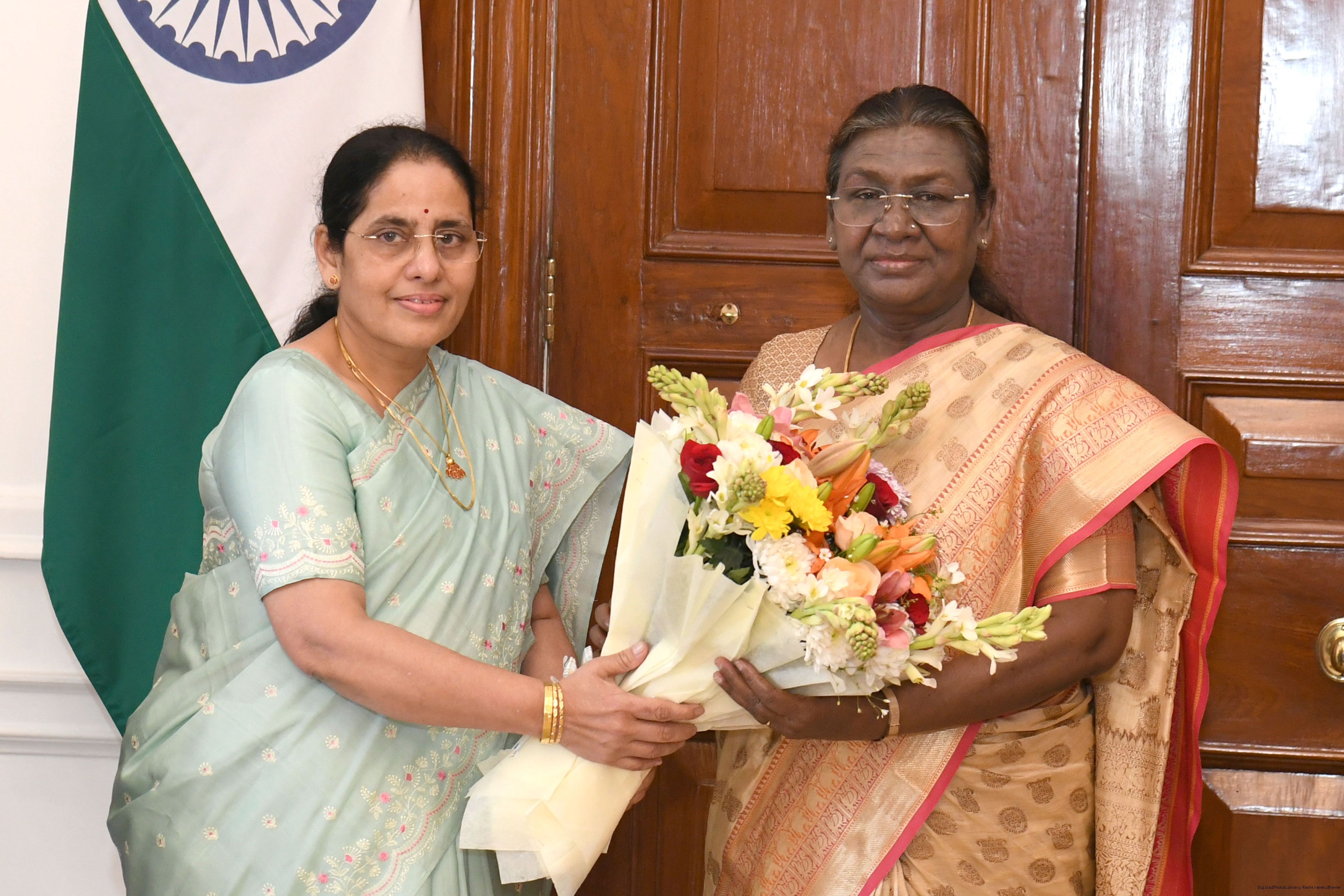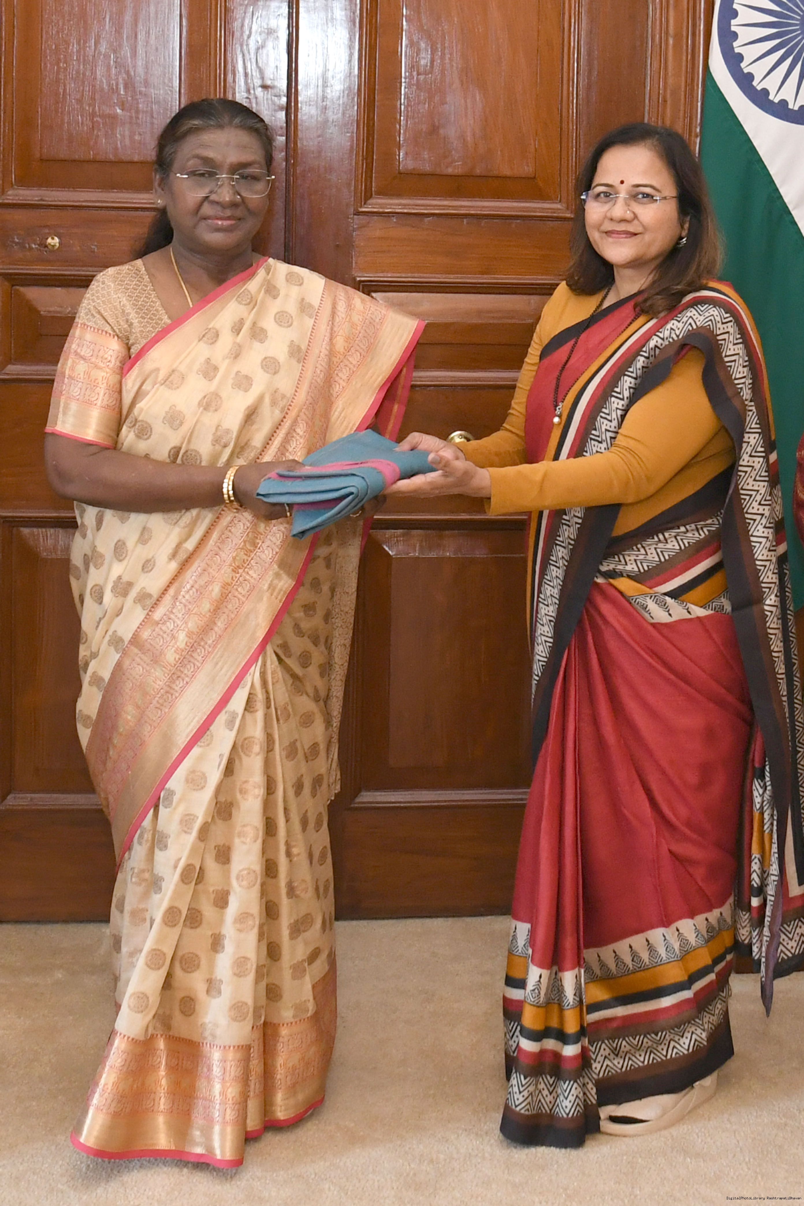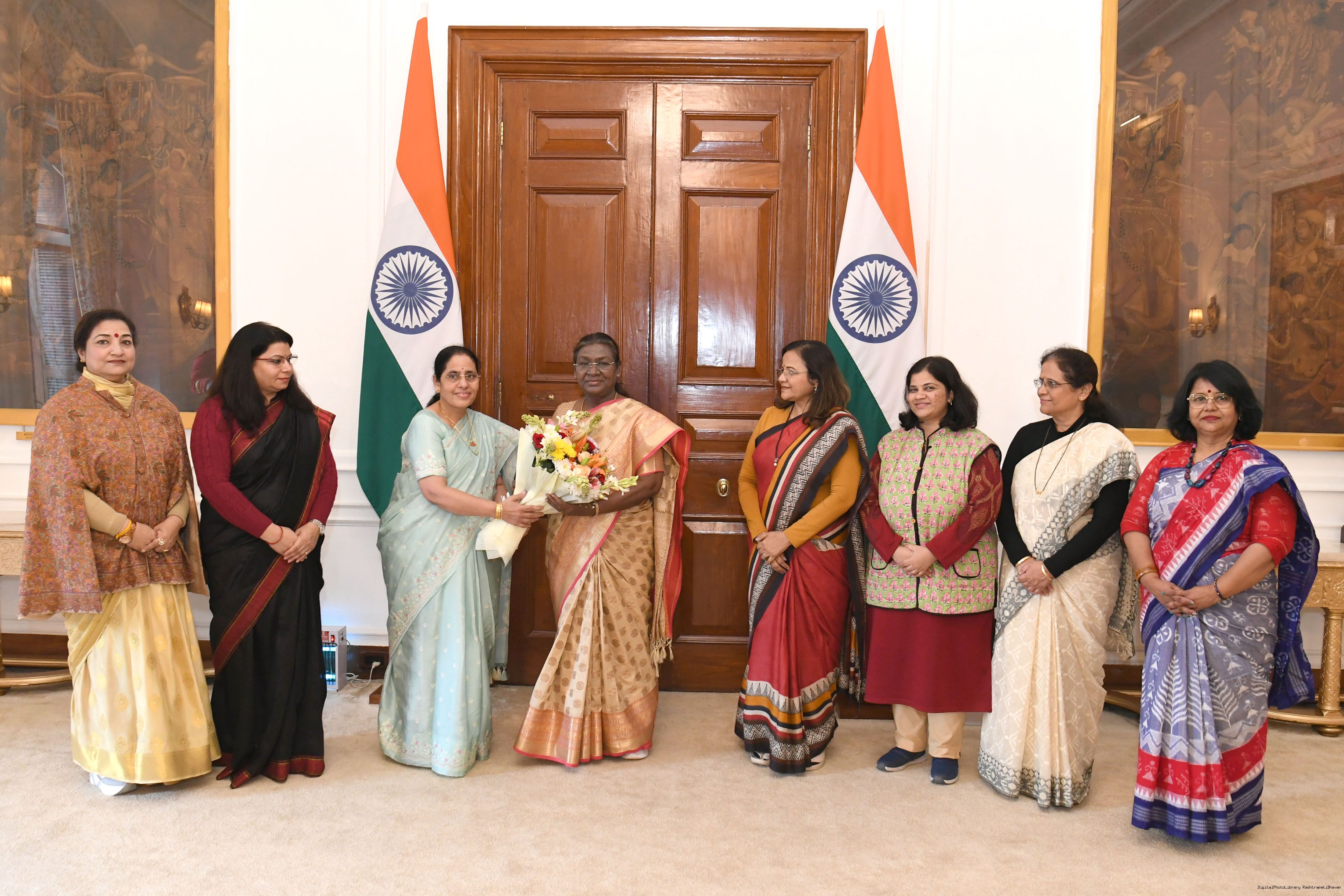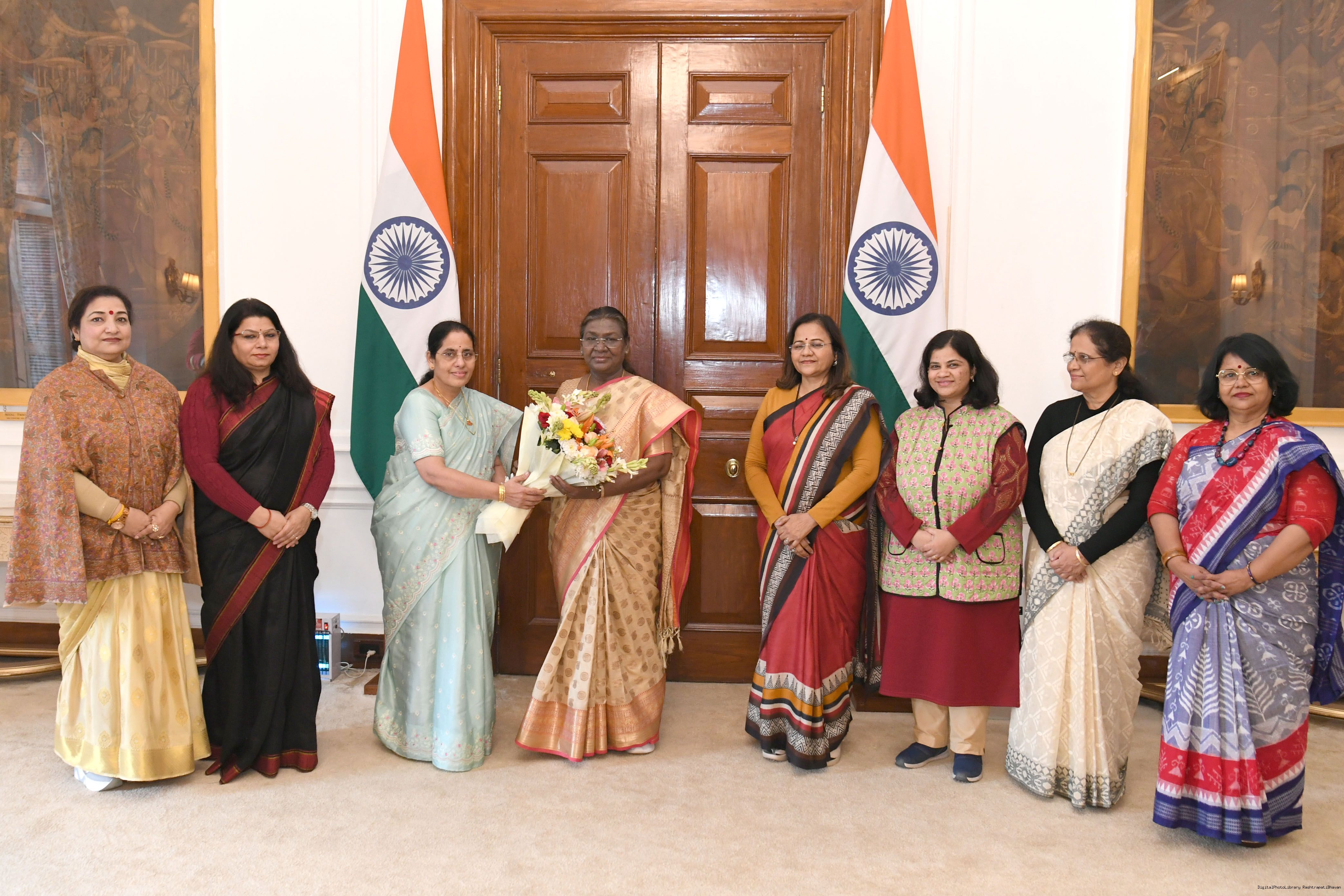 | Caption: | Ms. Nayana Sahasrbuddhe, Vice President, BSS along with others meeting with the President of India Smt. Droupadi Murmu at Rashtrapati Bhavan on January 8, 2025. |