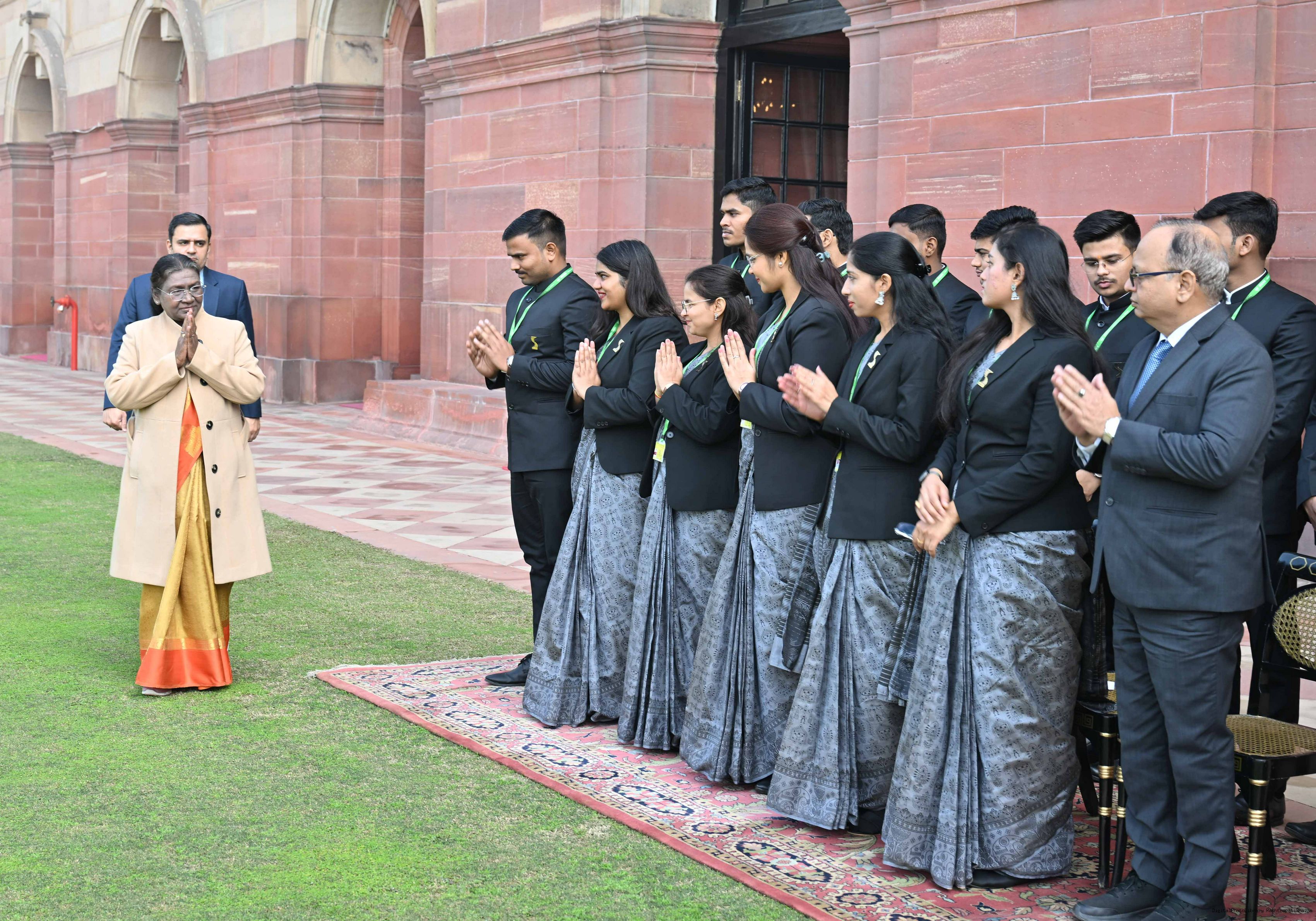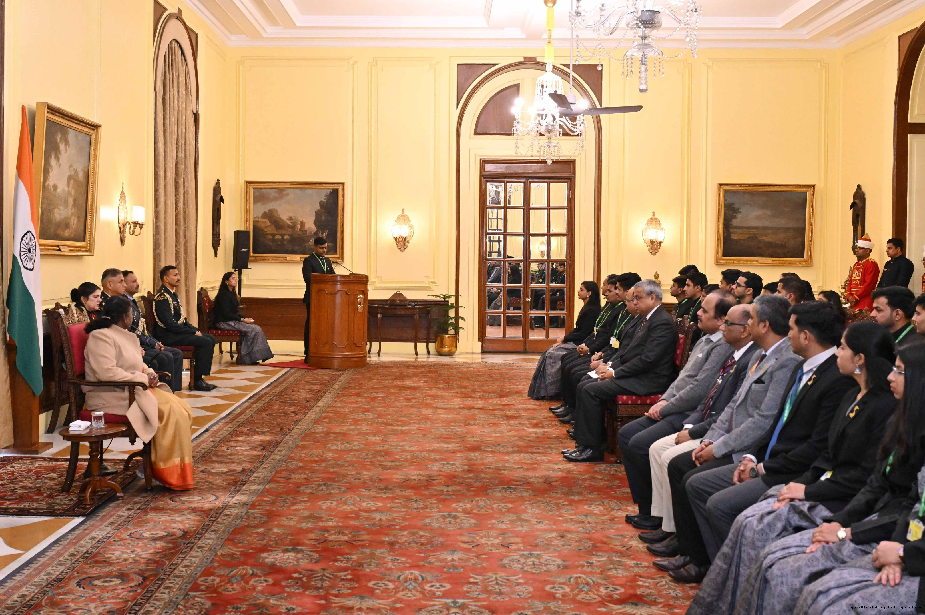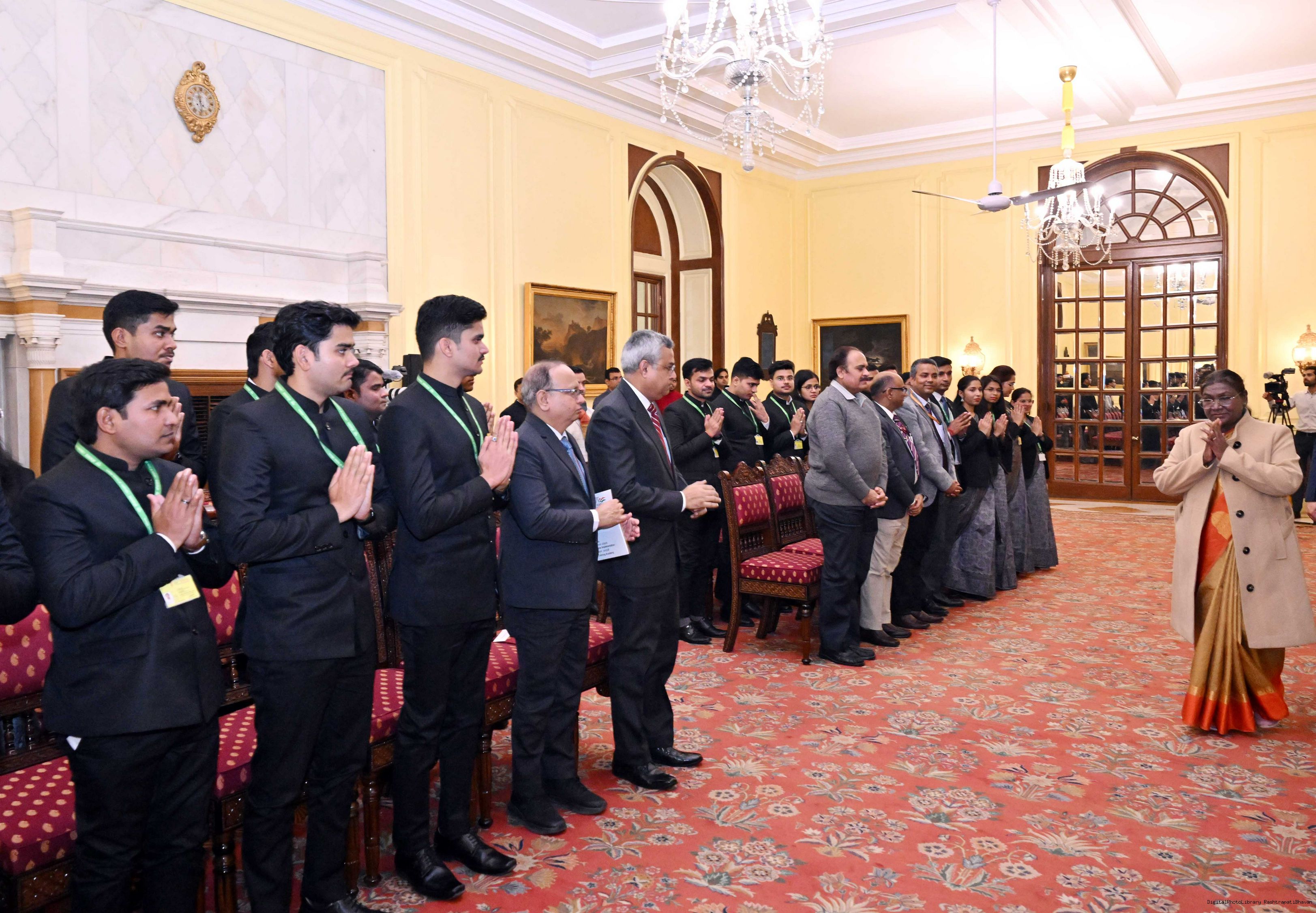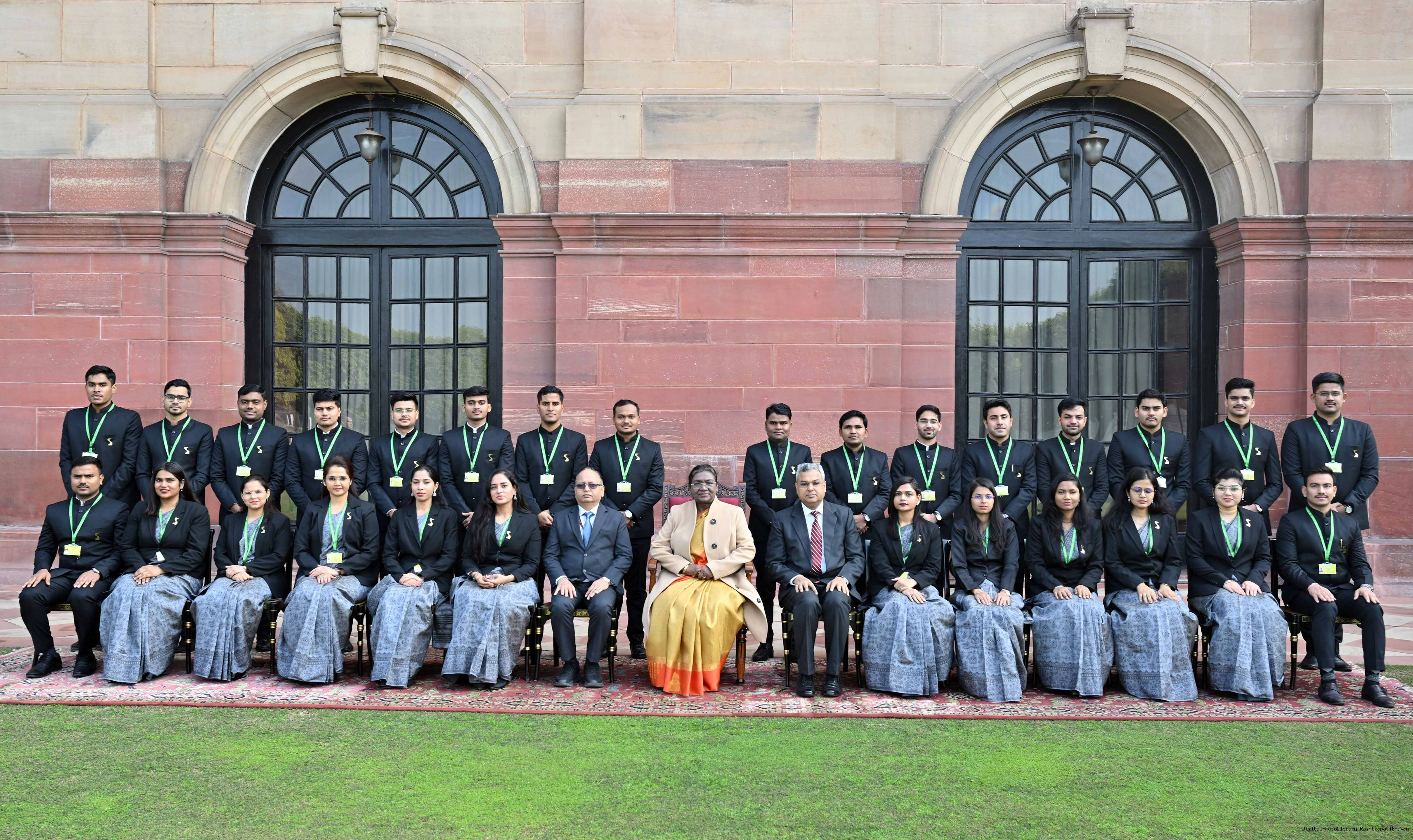 | Caption: | A group of Indian Statistical Service (ISS) probationers (2024 batch) called on the President of India, Smt Droupadi Murmu at Rashtrapati Bhavan on January 14, 2025. |