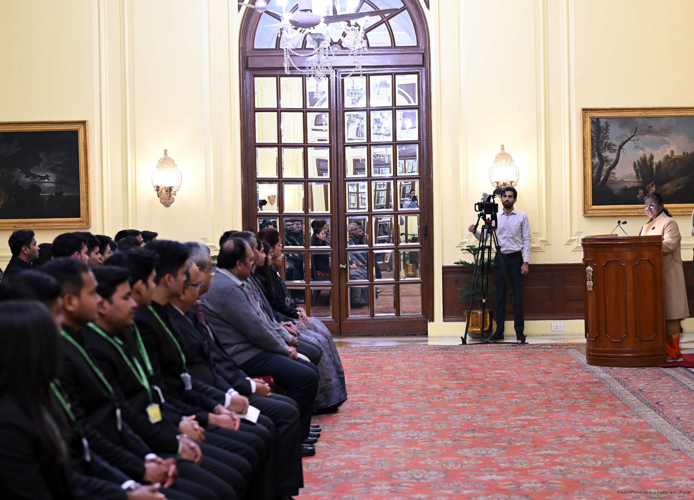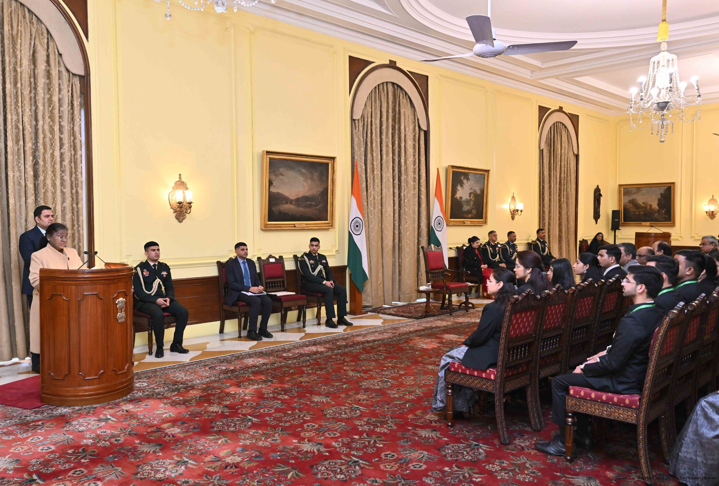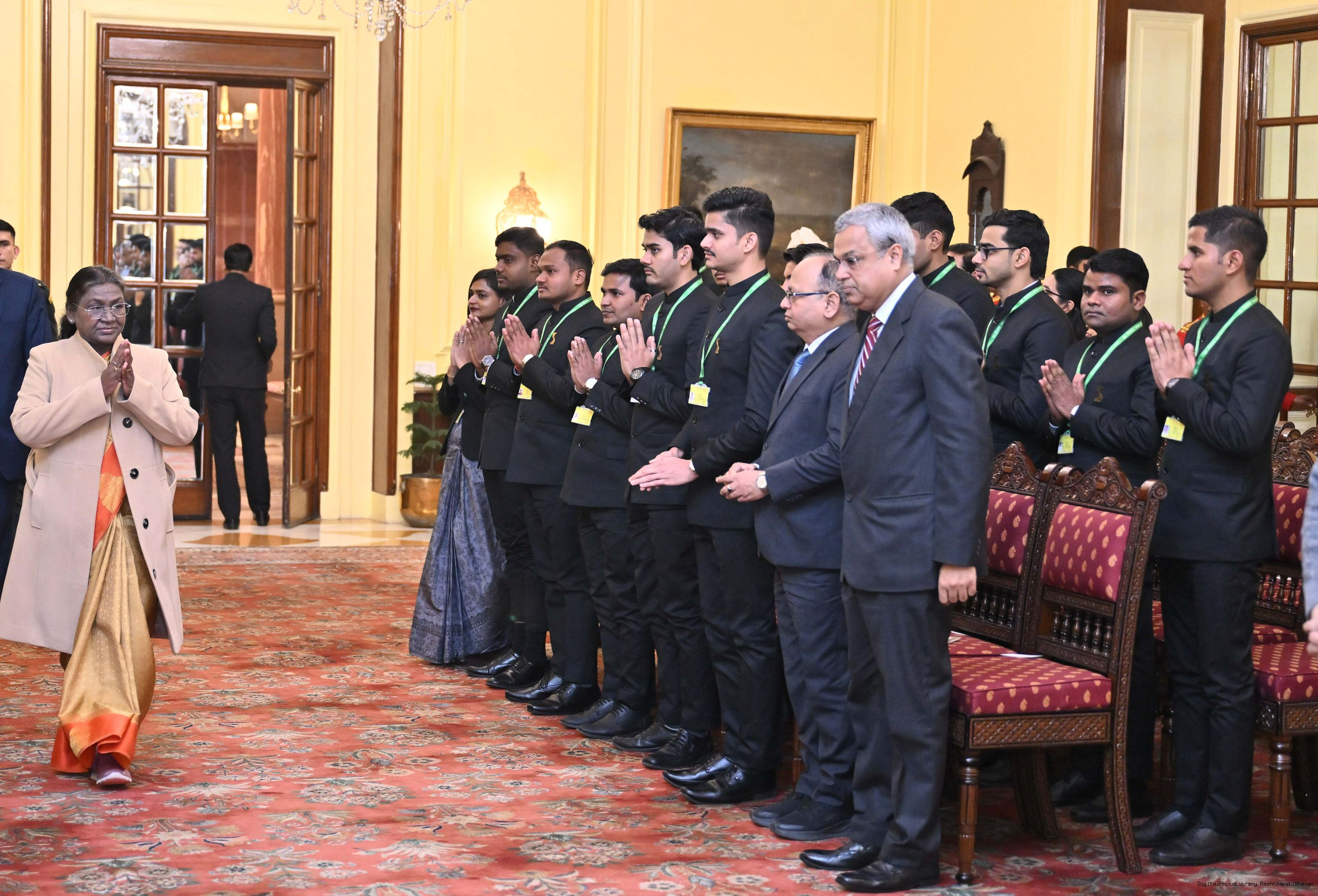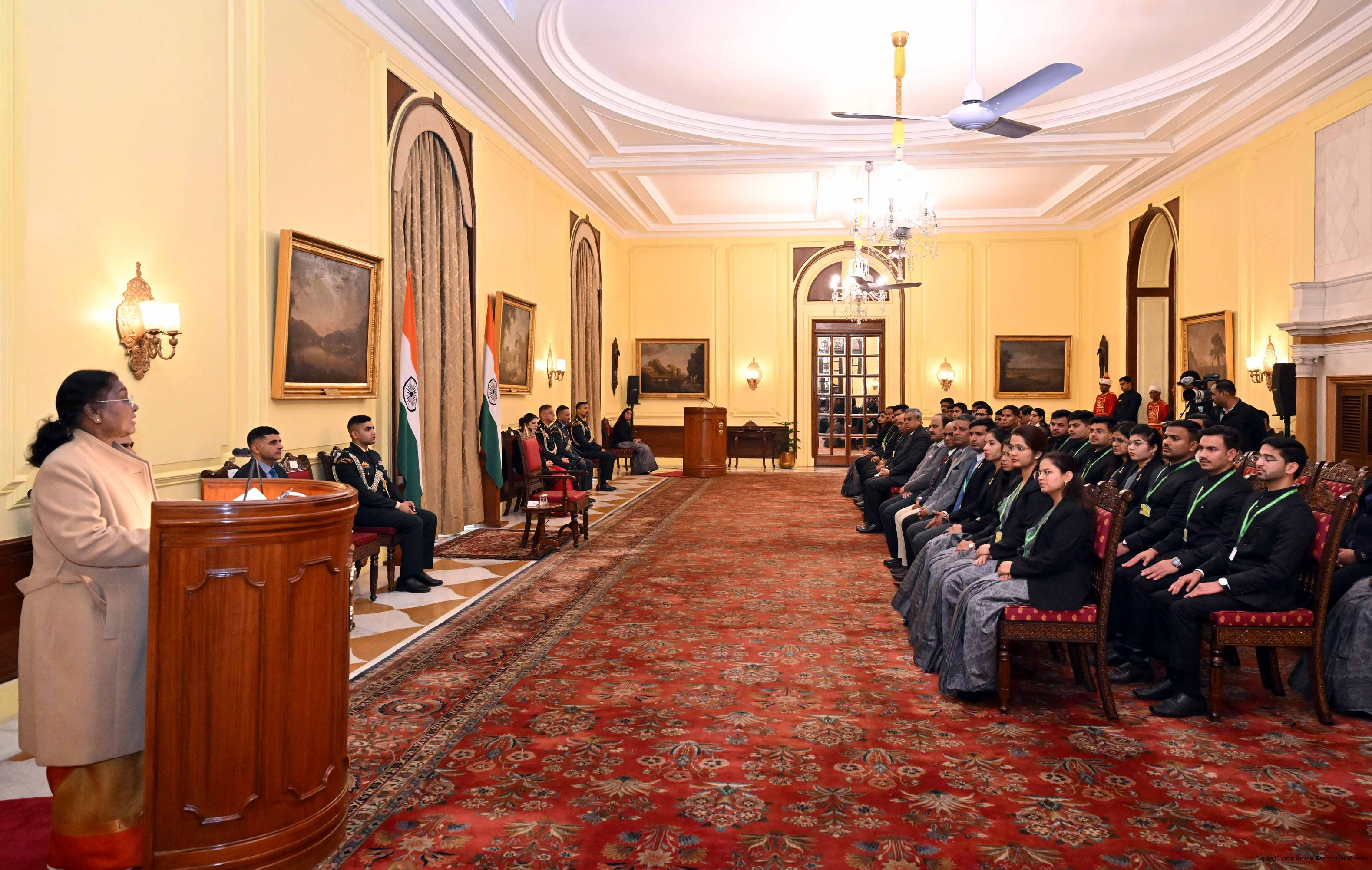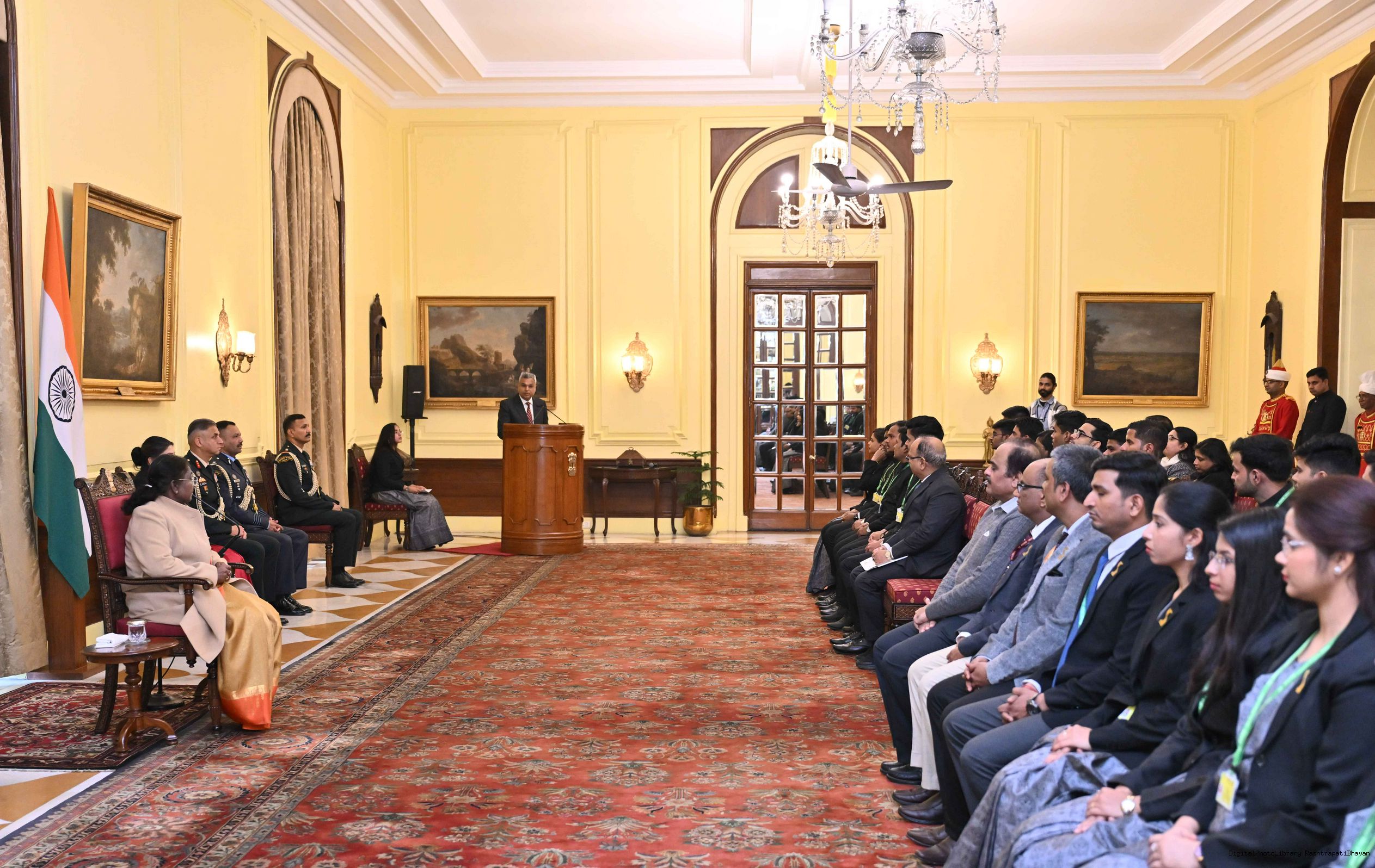 | Caption: | A group of Indian Statistical Service (ISS) probationers (2024 batch) called on the President of India, Smt Droupadi Murmu at Rashtrapati Bhavan on January 14, 2025. |