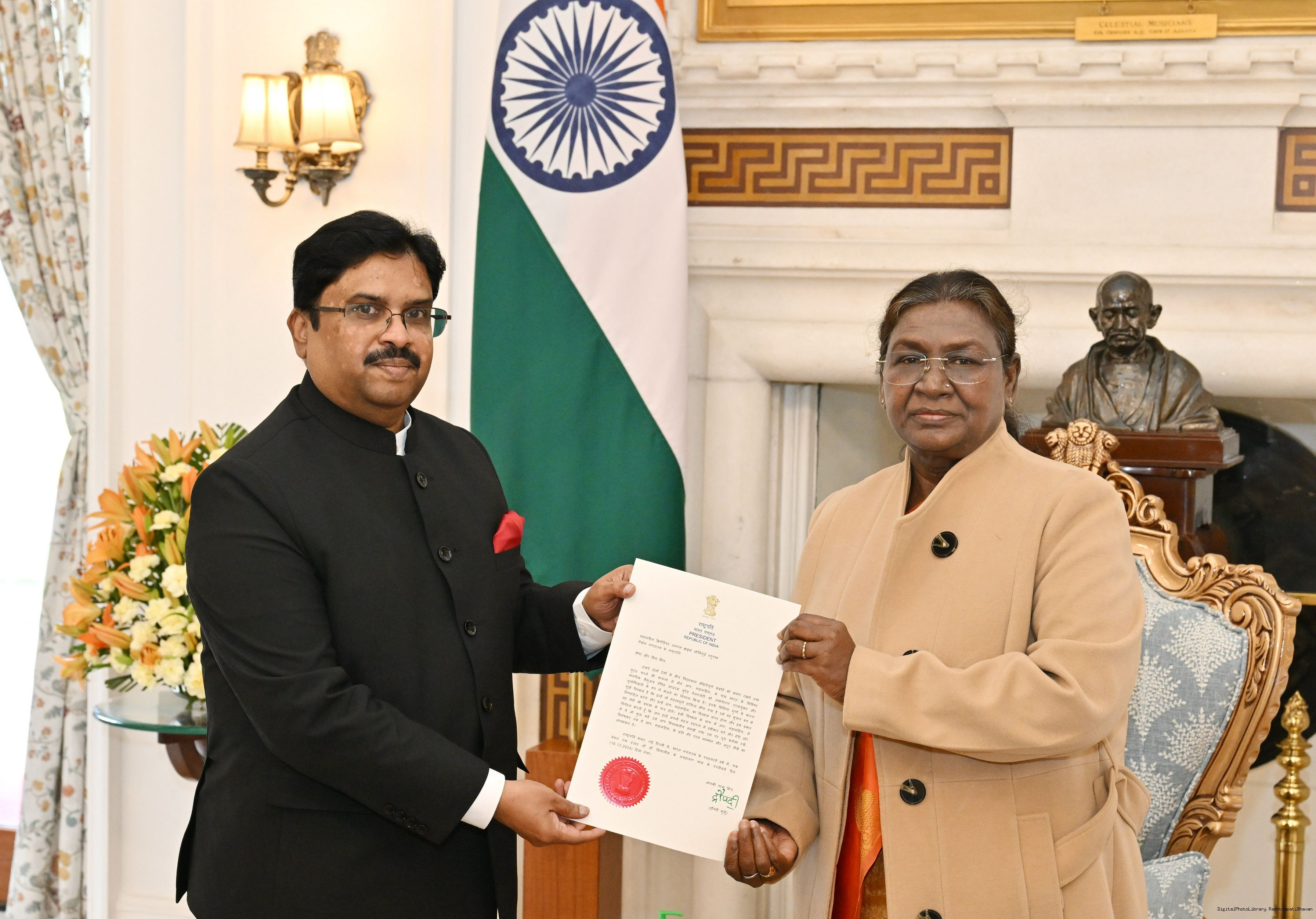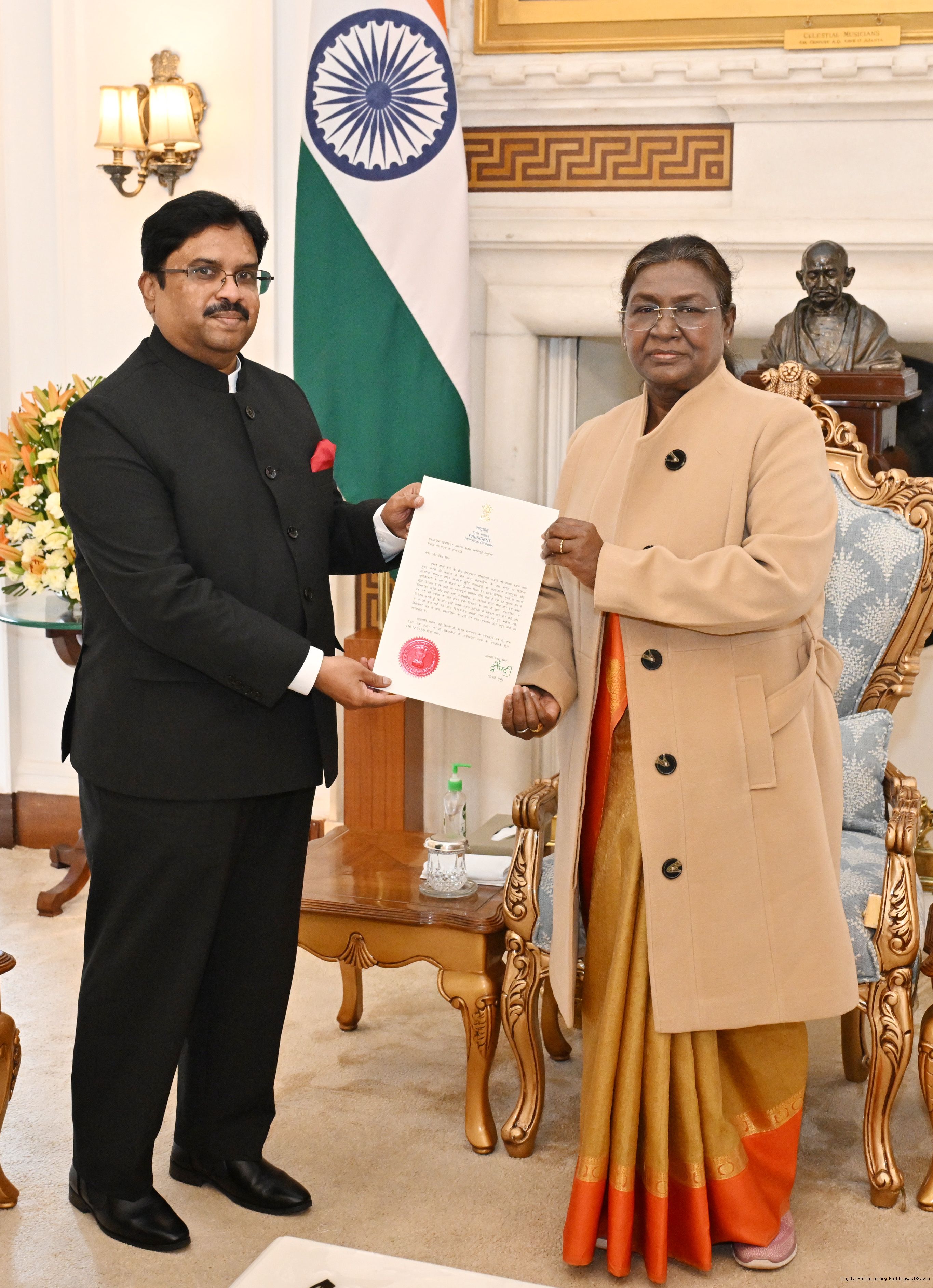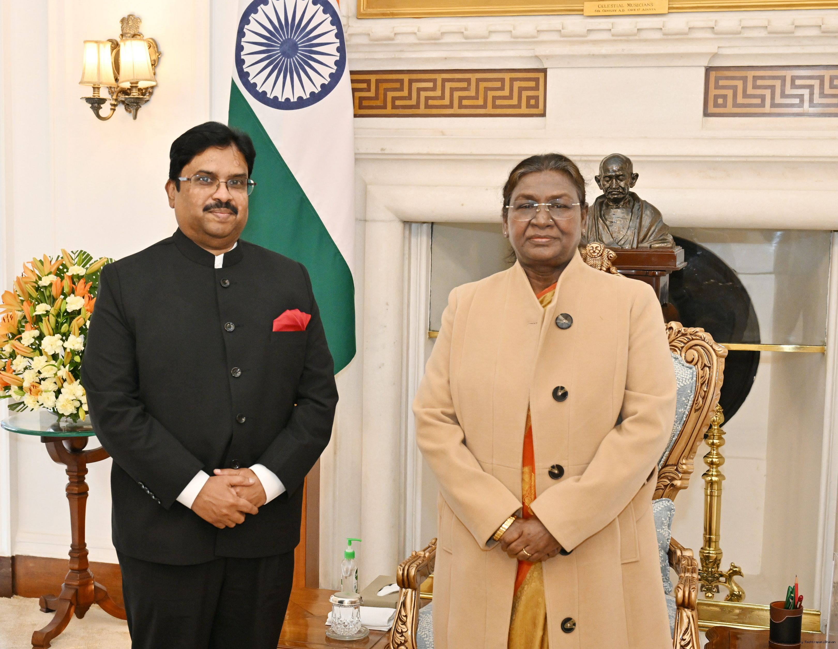 | Caption: | The High Commissioner-designate of India to Gabonese Republic, Shri V.S.D.L. Surendra meeting with the President of India, Smt. Droupadi Murmu at Rashtrapati Bhavan on January 14, 2025. |