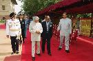 | Caption: | The President of India, Dr A P J Abdul Kalam at the Ceremonial Reception of the President of the Republic of Mozambique, HE Mr Joaquim Alberto Chissano at the Forecourt of Rashtrapati Bhavan in New Delhi on May 12, 2003 |
