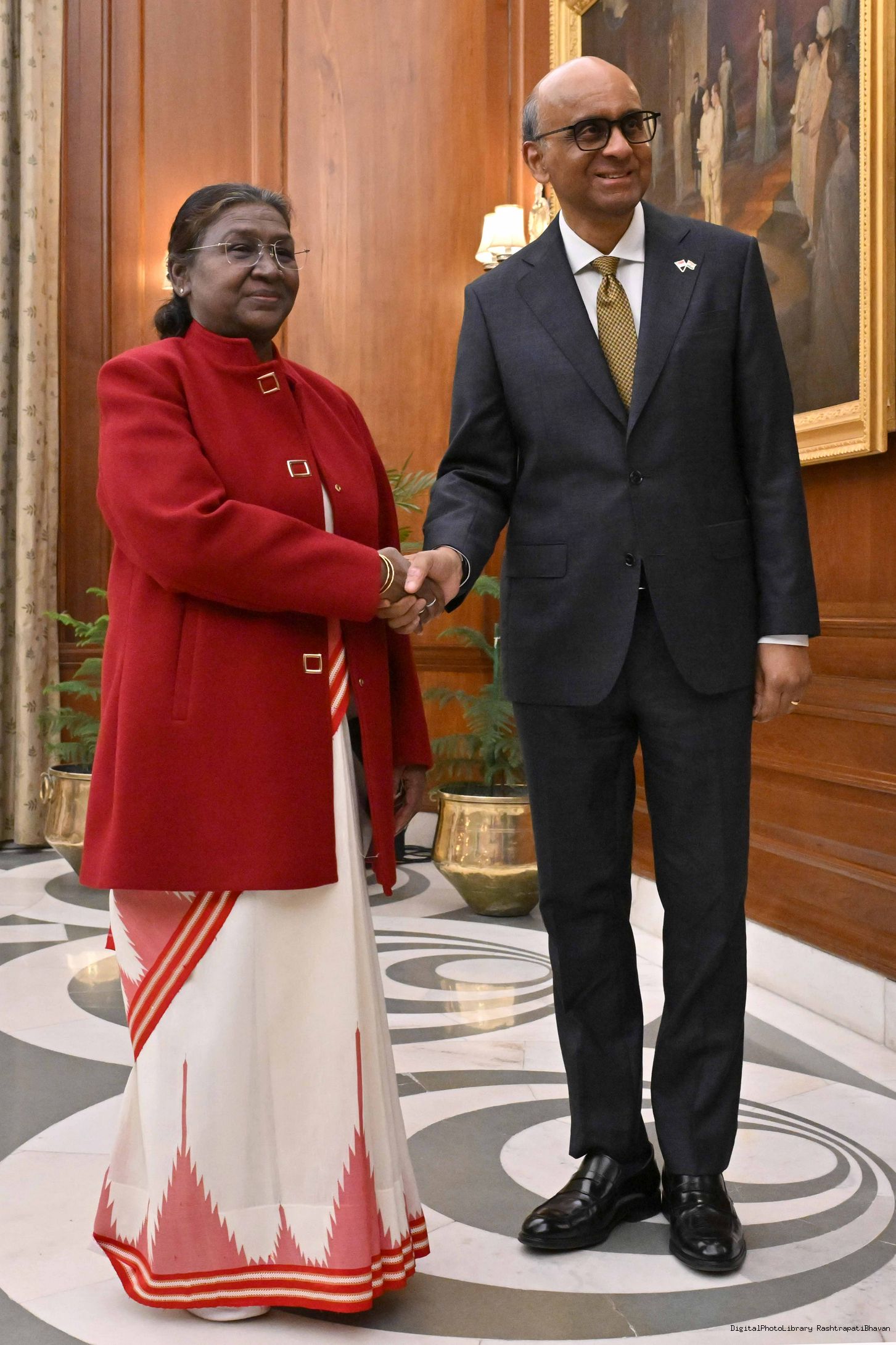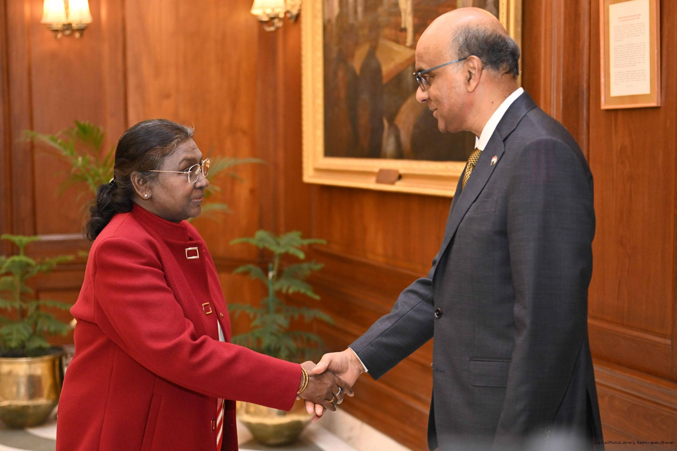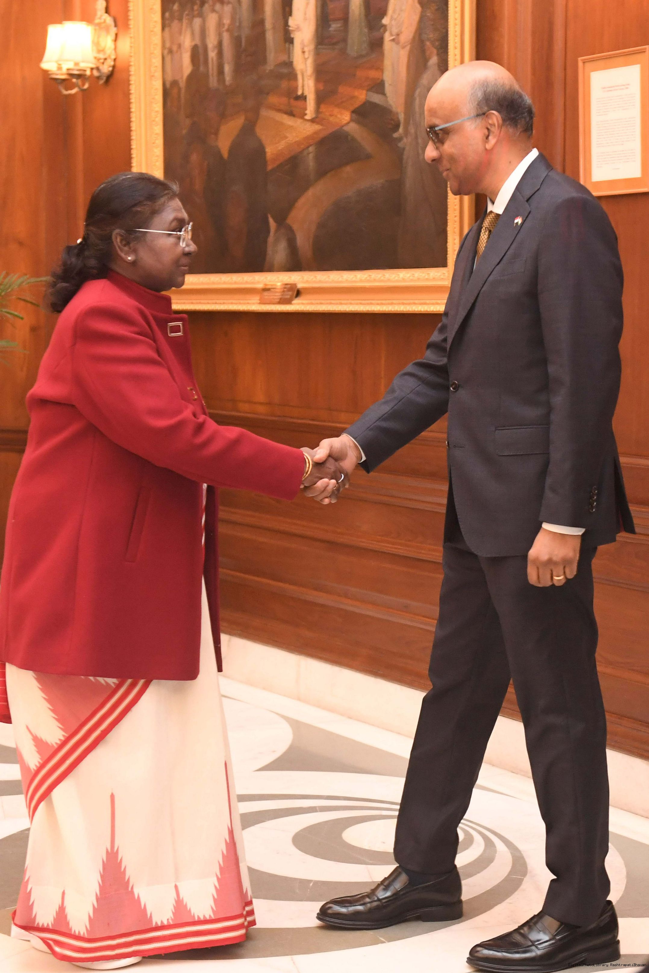 | Caption: | The President of India, Smt Droupadi Murmu received H.E. Mr Tharman Shanmugaratnam, President of the Republic of Singapore at Rashtrapati Bhavan, New Delhi on January 16, 2025. |