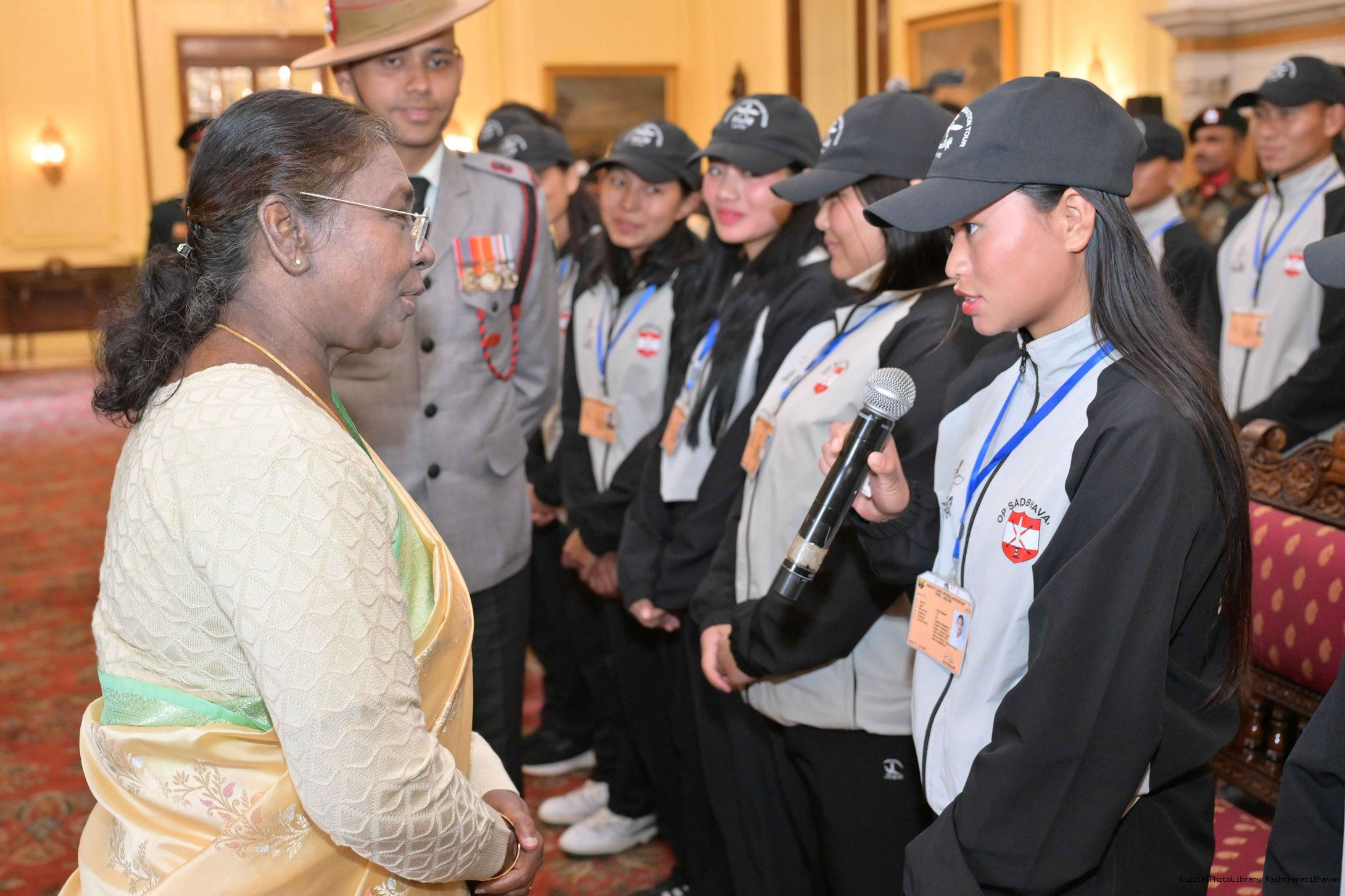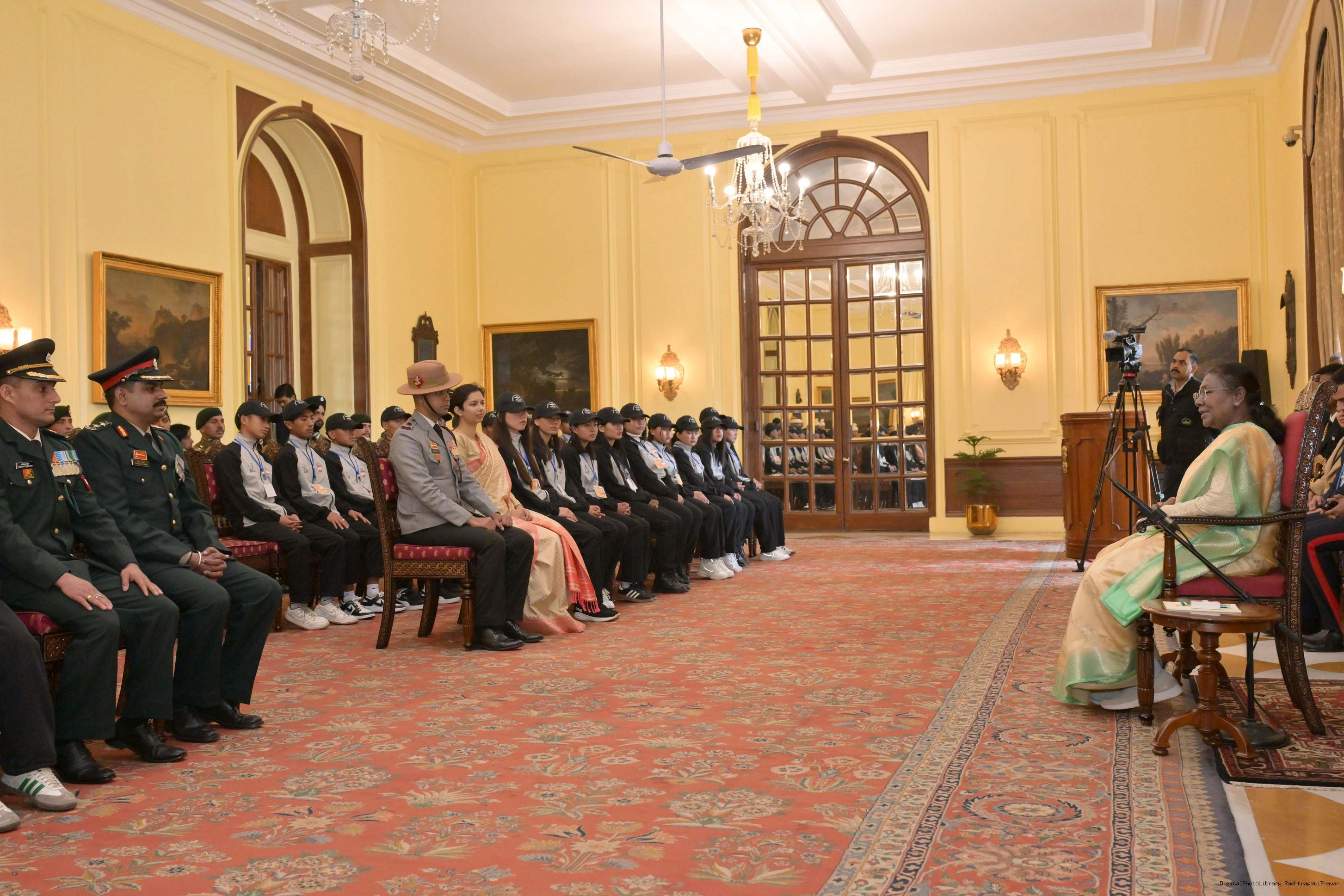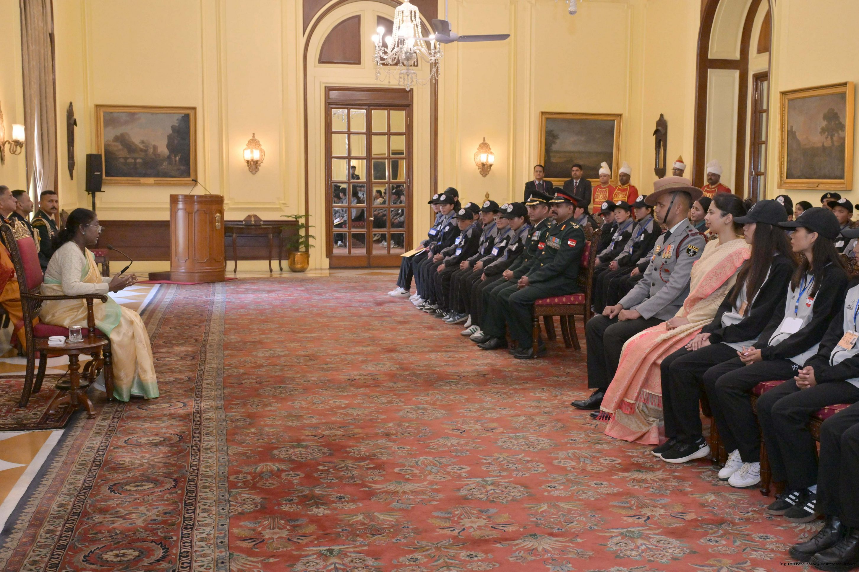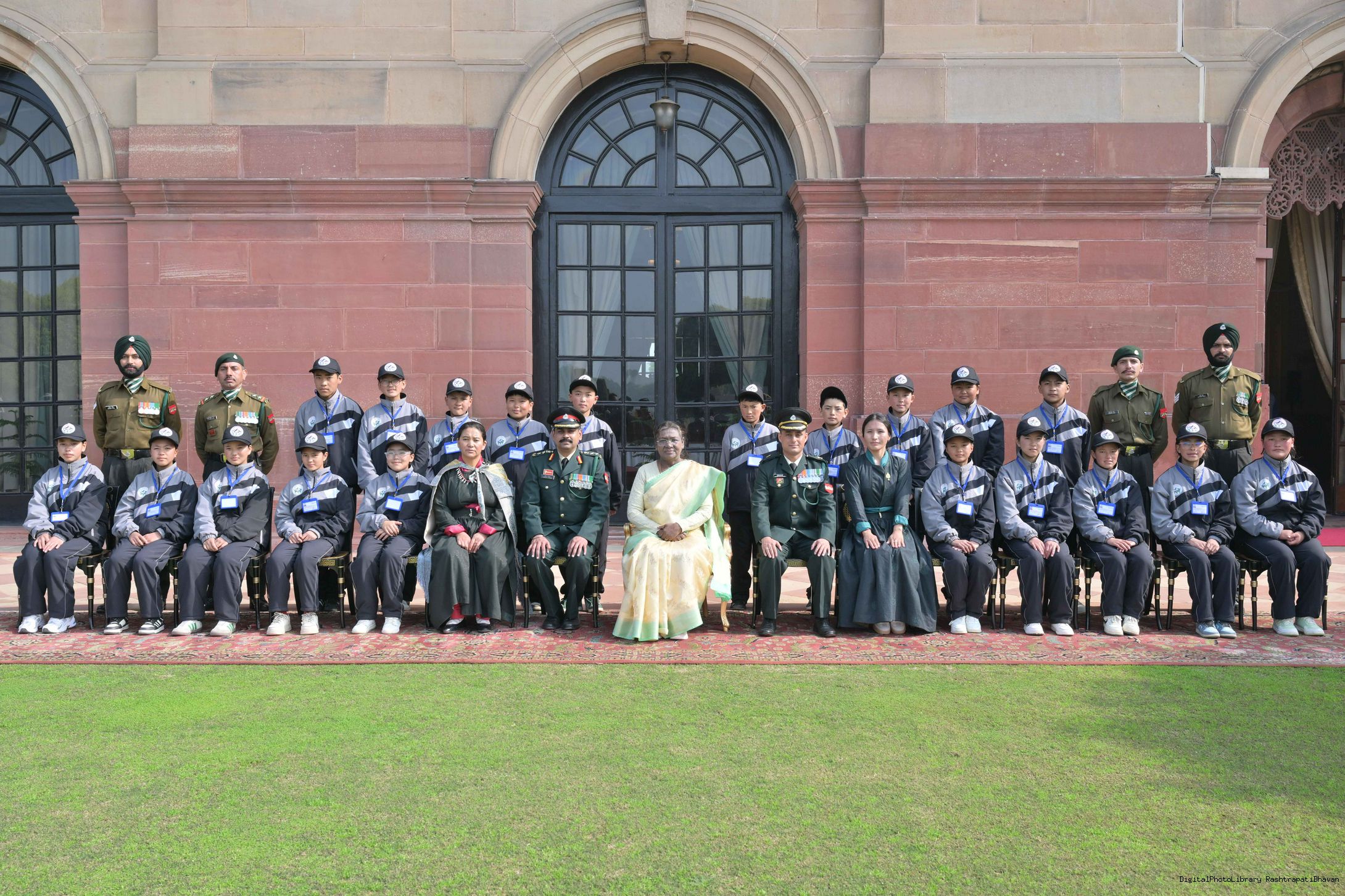 | Caption: | The President of India, Smt. Droupadi Murmu met a group of students from Nagaland and Ladakh of the National Integration Tour at Rashtrapati Bhavan on January 17, 2025. |