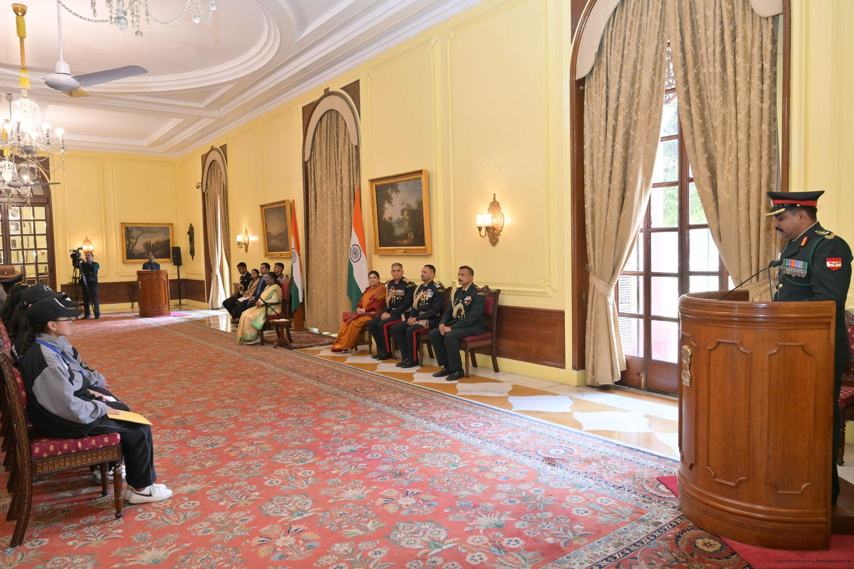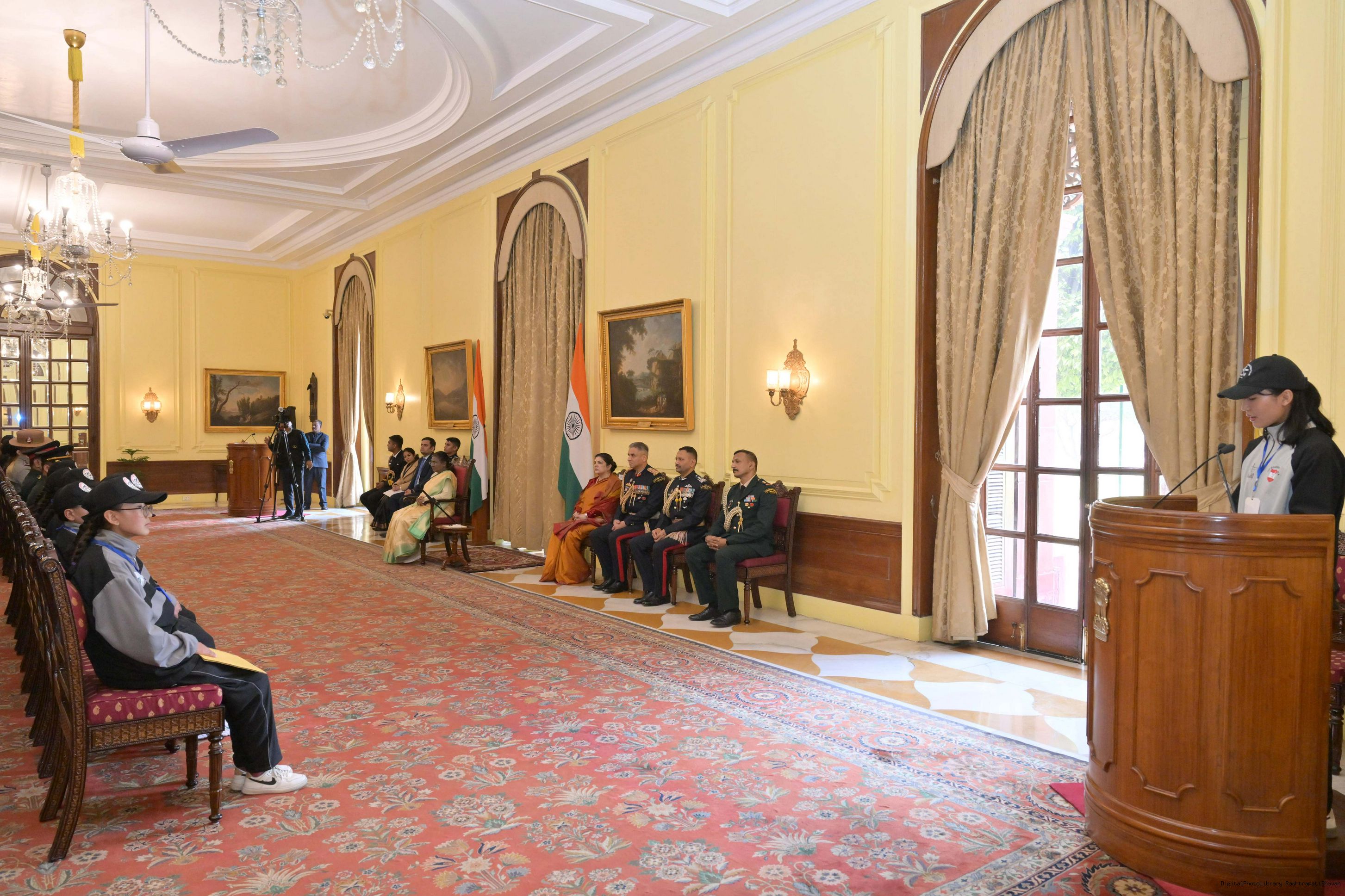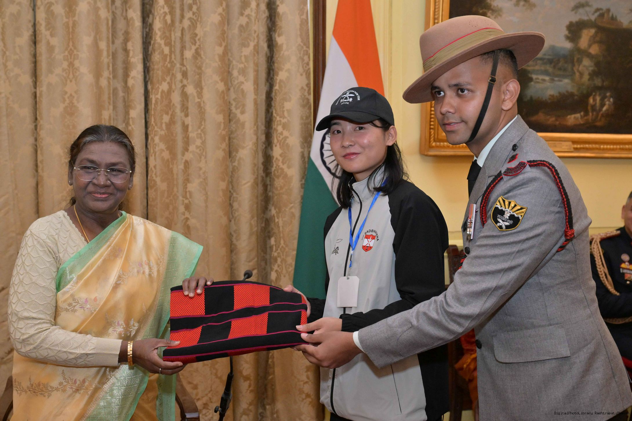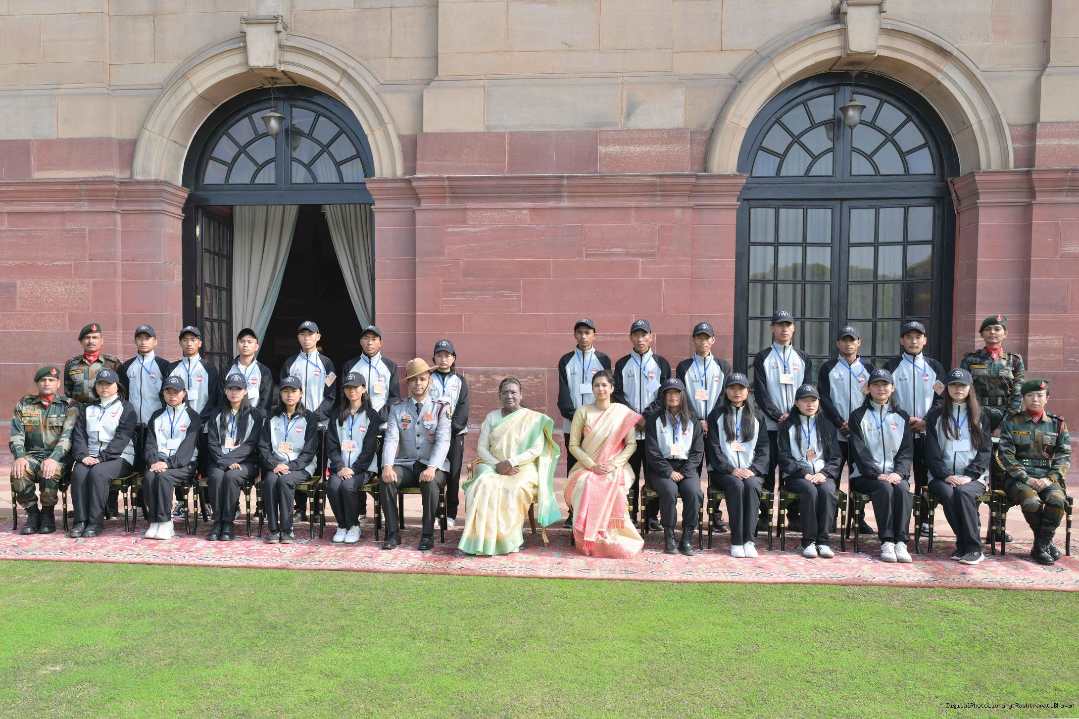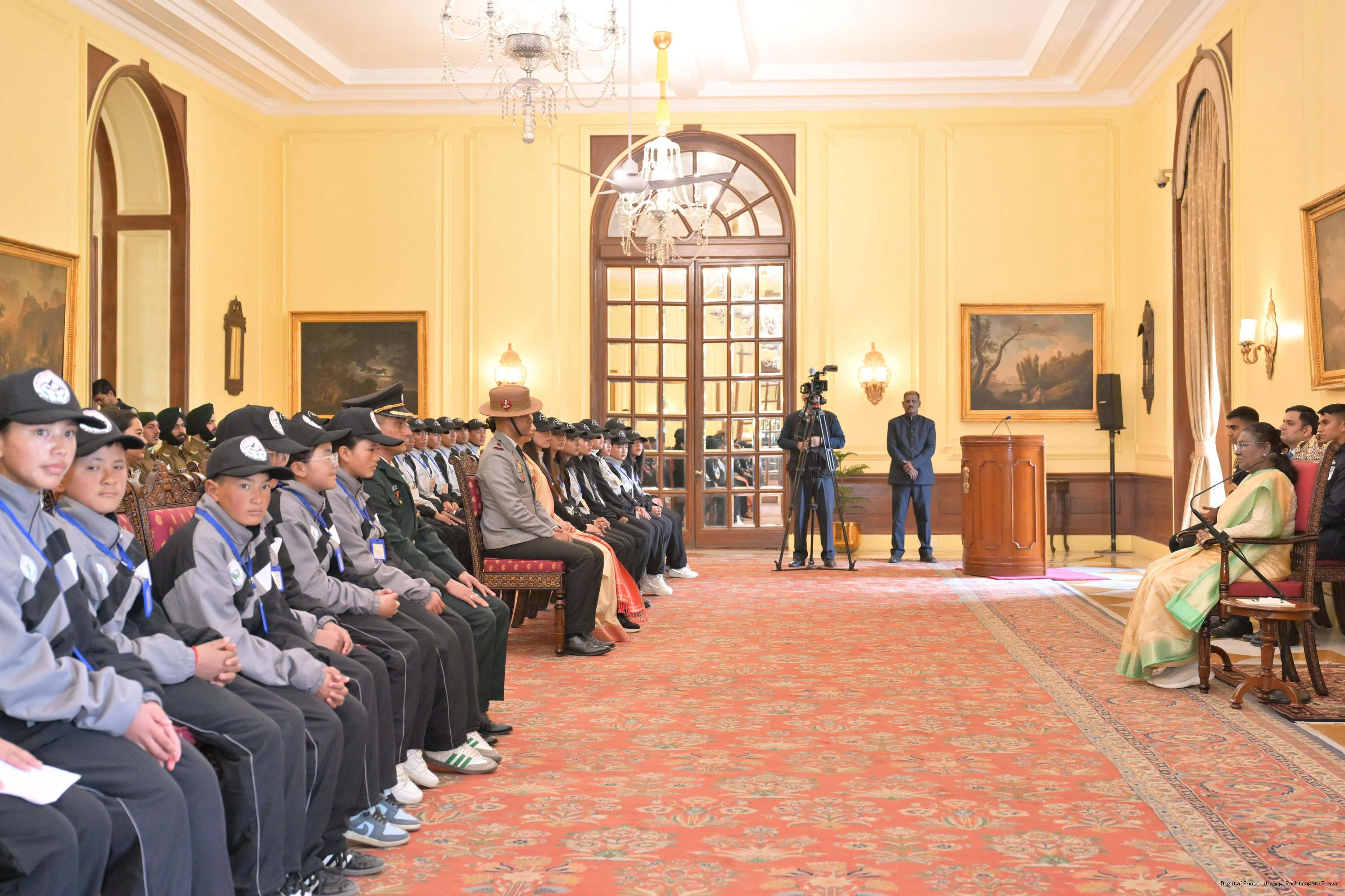 | Caption: | The President of India, Smt. Droupadi Murmu met a group of students from Nagaland and Ladakh of the National Integration Tour at Rashtrapati Bhavan on January 17, 2025. |