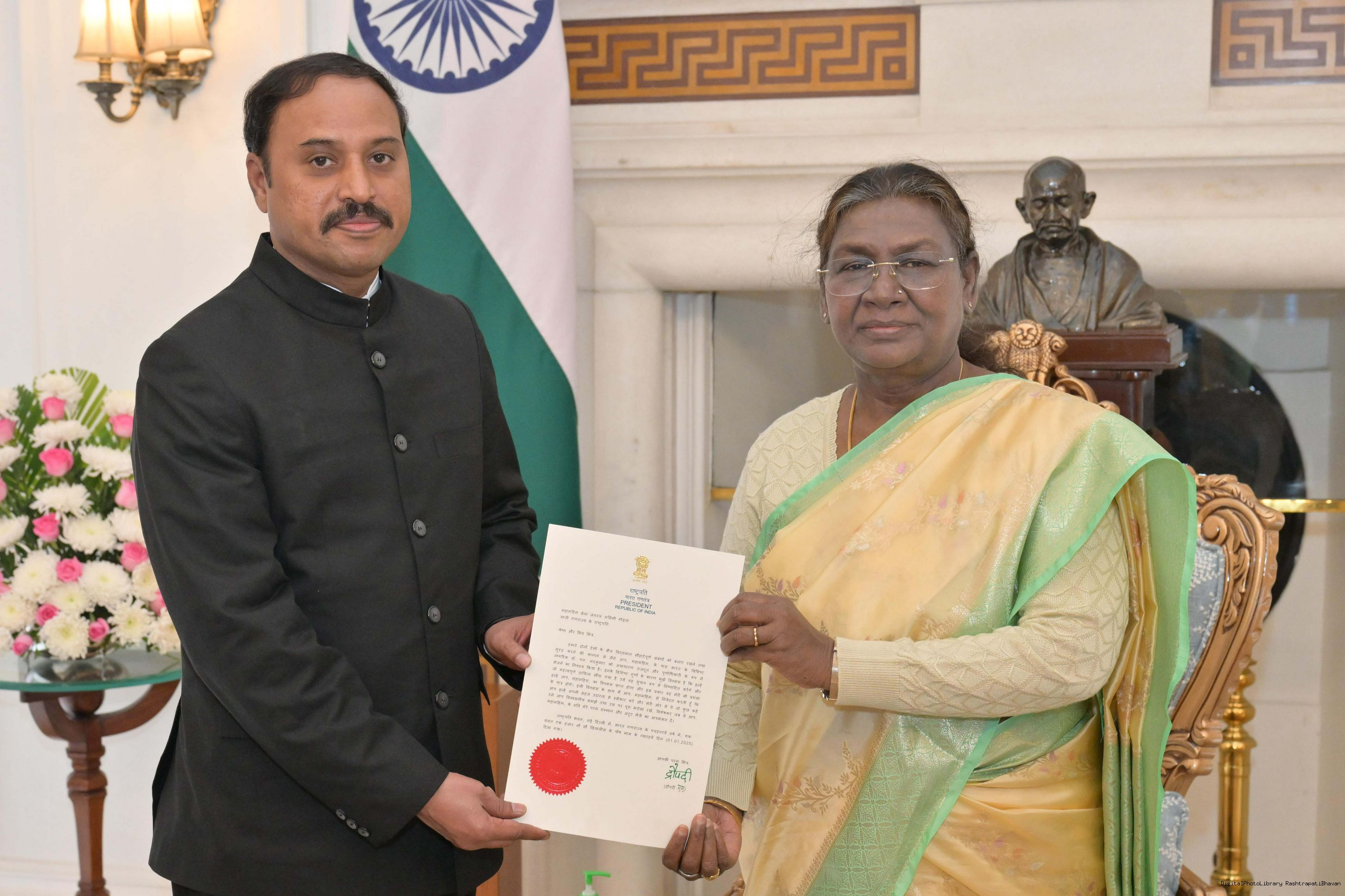 | Caption: | The Ambassador-designate of India to the Republic of Mali, Dr. N. Nandakumar meeting with the President of India, Smt. Droupadi Murmu at Rashtrapati Bhavan on January 17, 2025. |