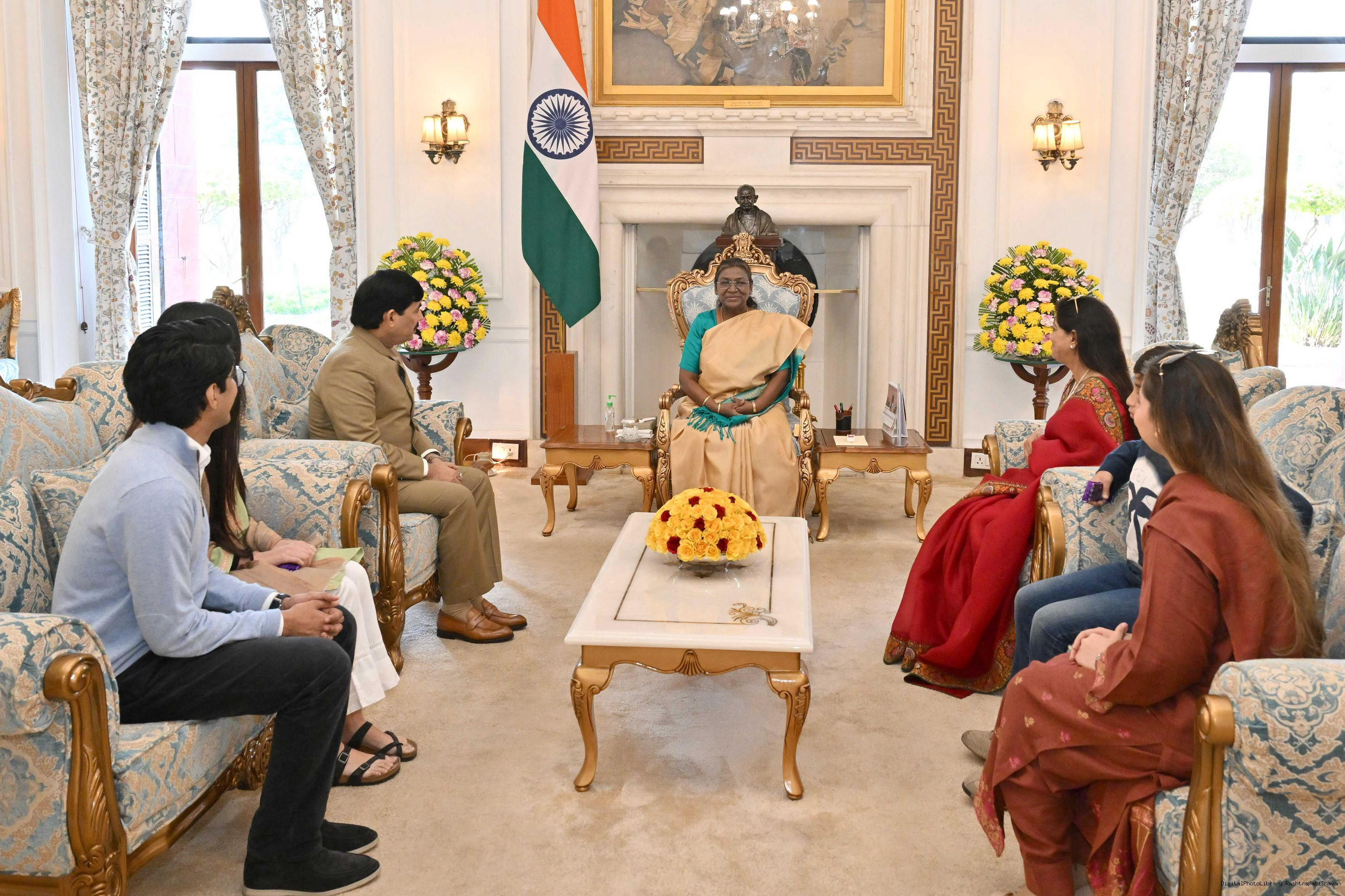 | Caption: | Syed Shahnawaz Hussain, National Spokesperson, BJP and former Union Minister, Govt. of India along with family Members meeting with the President of India Smt. Droupadi Murmu at Rashtrapati Bhavan on January 21, 2025. |