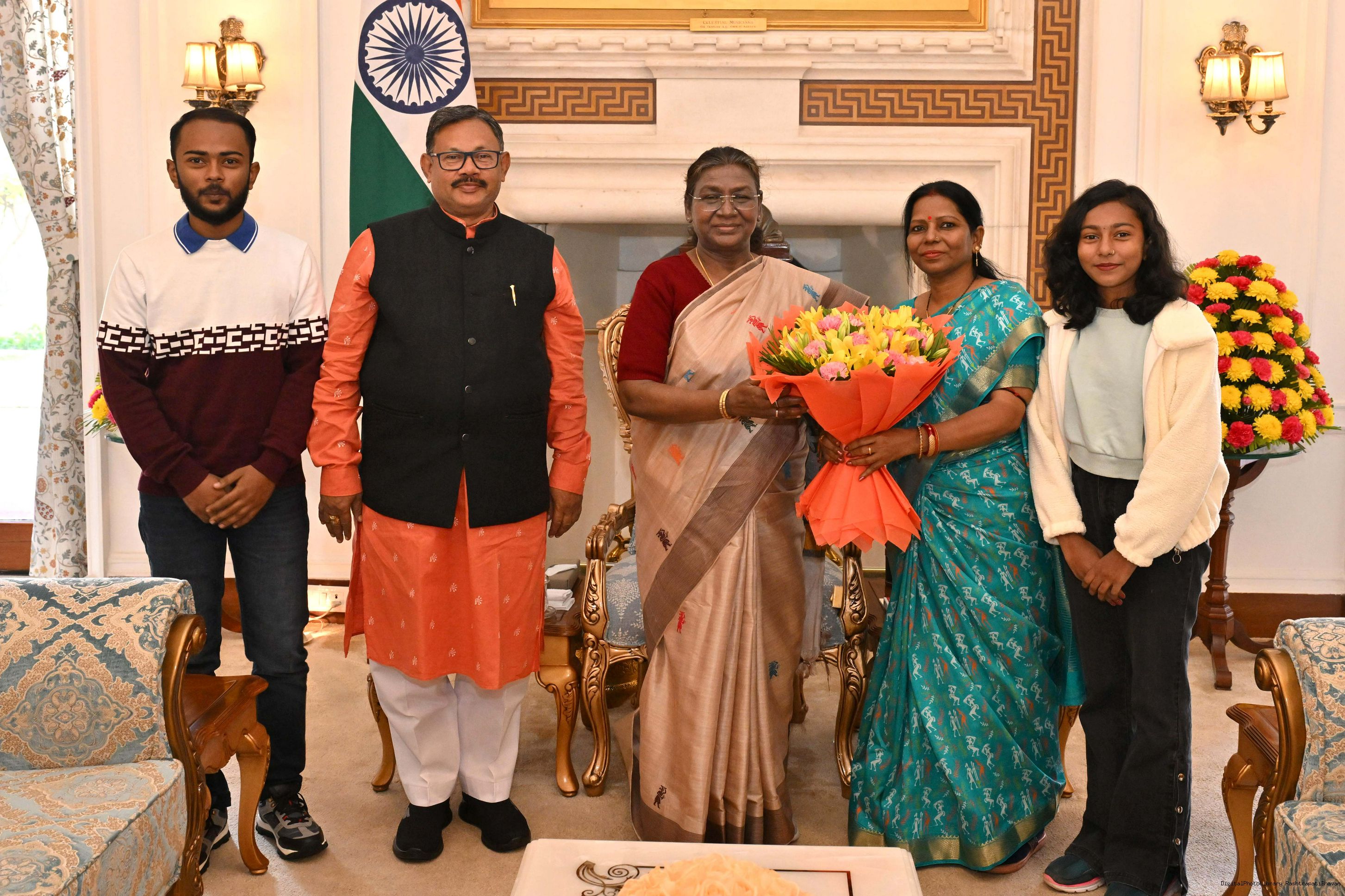 | Caption: | Shri Sanjeeb Mohanty Indepentent Director Garden Reach Ship Yards, (GRSE) along with Smt Jayashree Mohanty, Shri Arin Mohanty and Ms Sradha Priyadarshini Mohanty meeting with the President of India Smt. Droupadi Murmu at Rashtrapati Bhavan on January 22, 2025. |