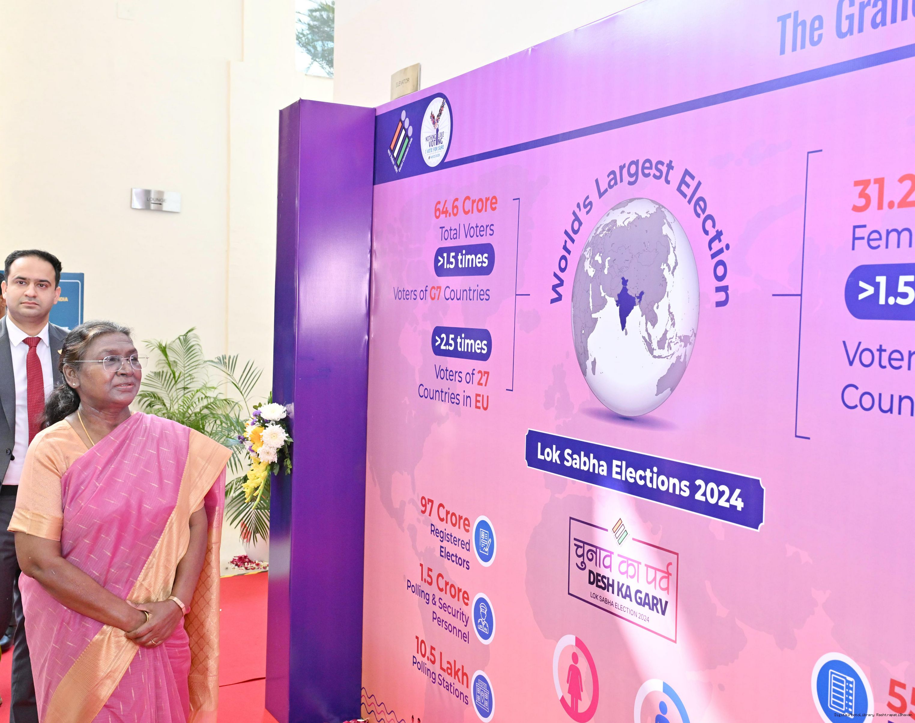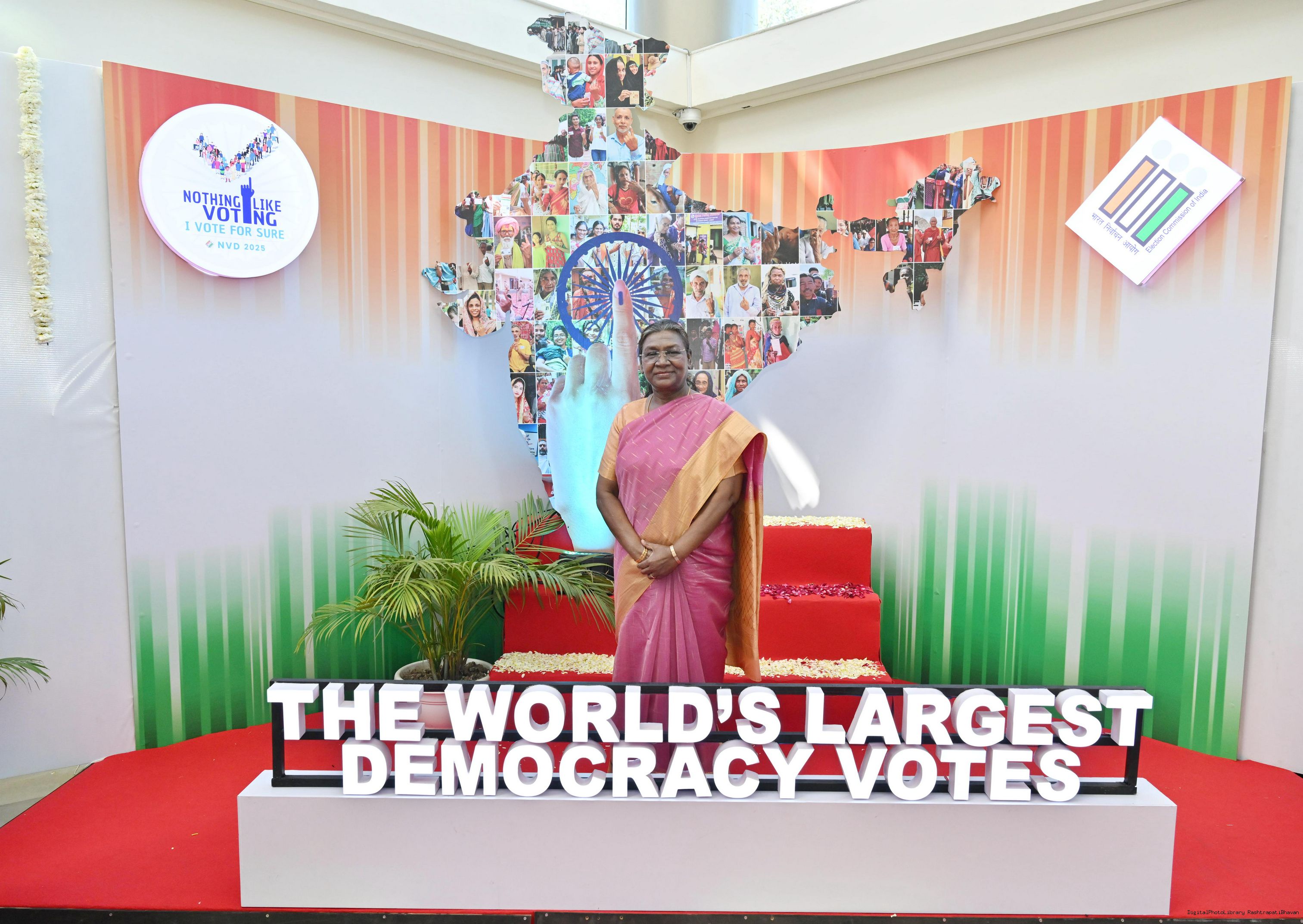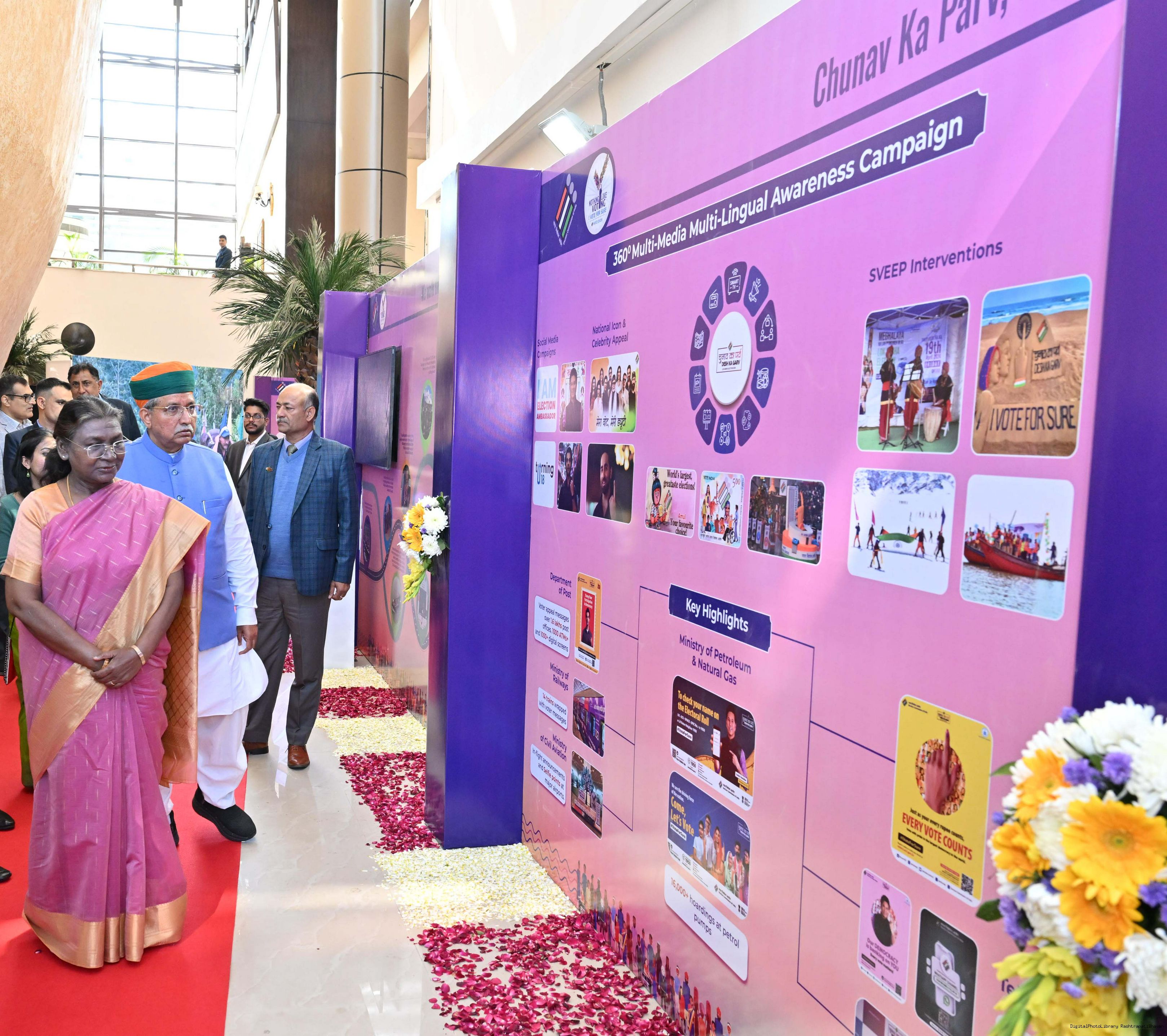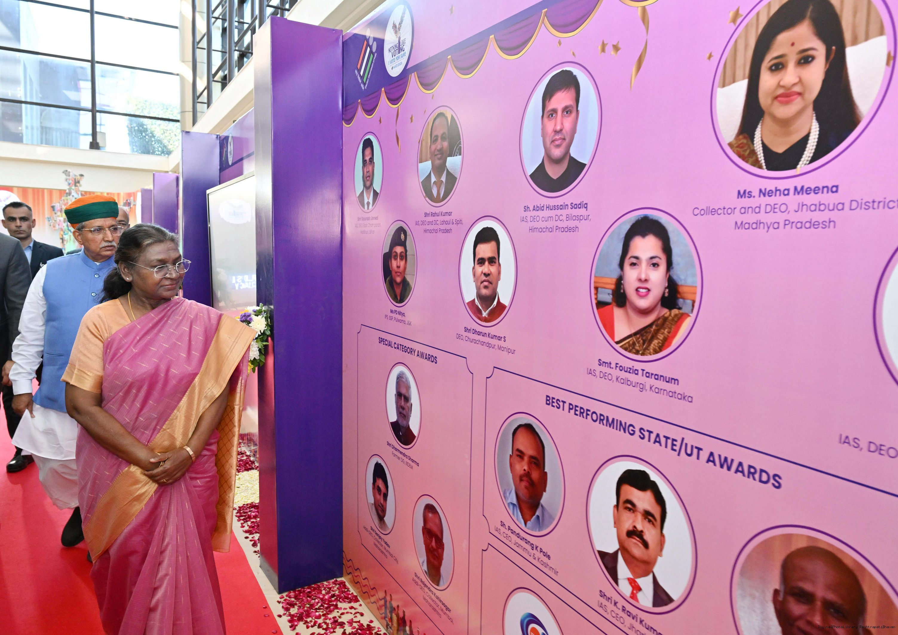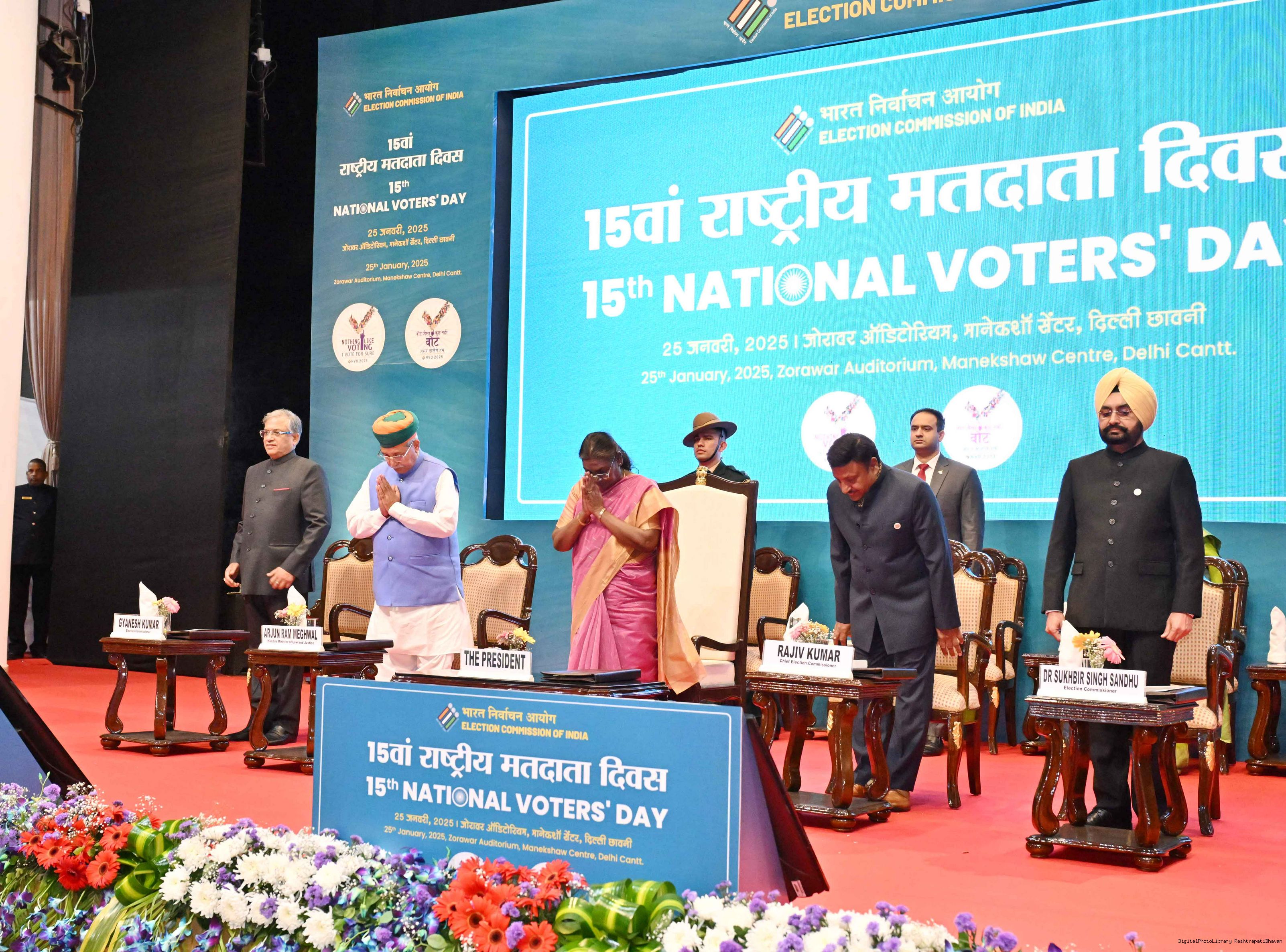 | Caption: | The President of India, Smt.Droupadi Murmu graced 15th National Voters’ Day Celebrations and presented the Best Electoral Practices Awards in New Delhi on January 25, 2025. |