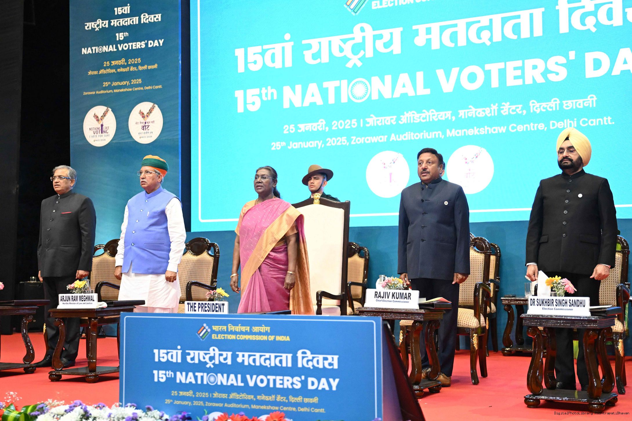 | Caption: | The President of India, Smt.Droupadi Murmu graced 15th National Voters’ Day Celebrations and presented the Best Electoral Practices Awards in New Delhi on January 25, 2025. |