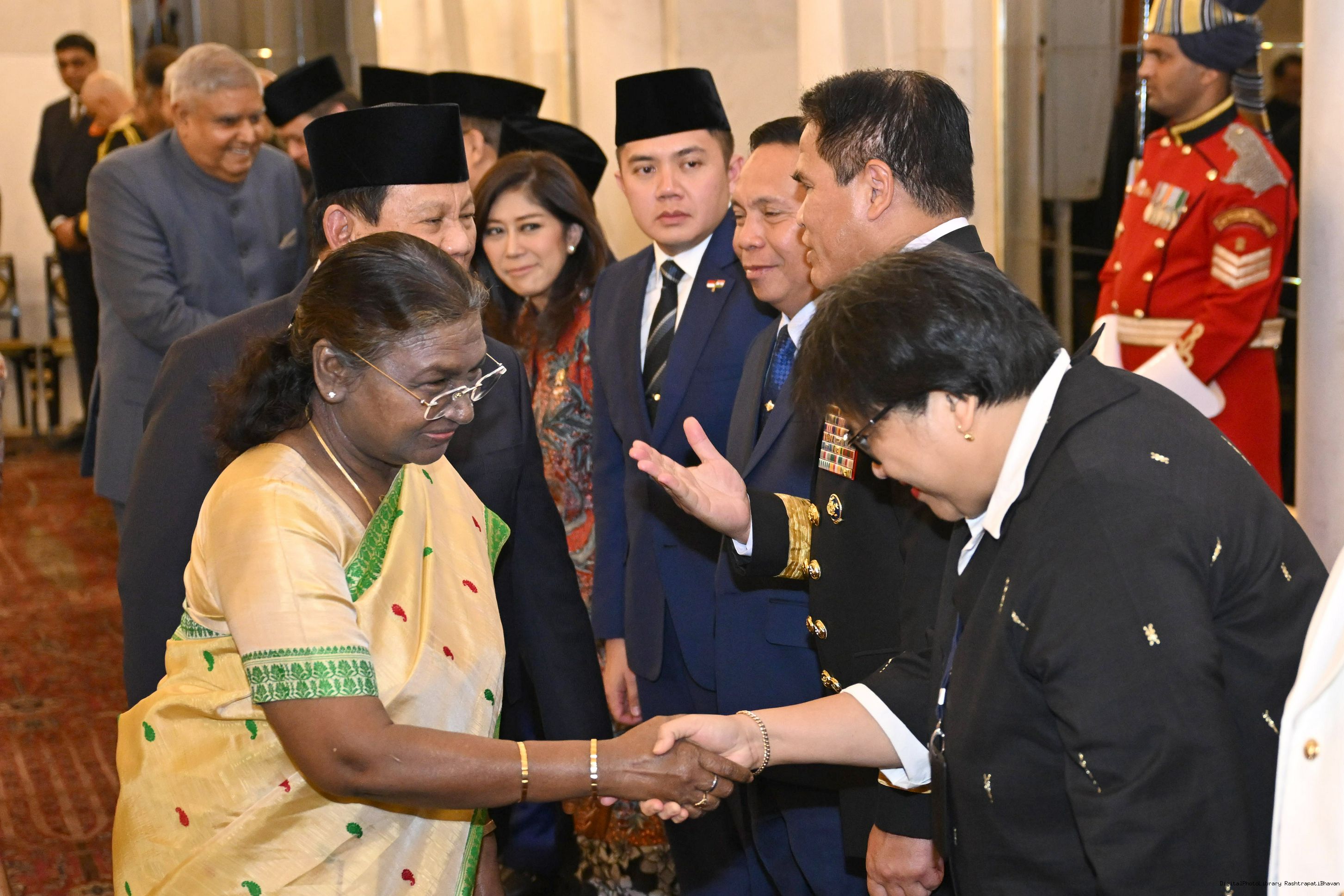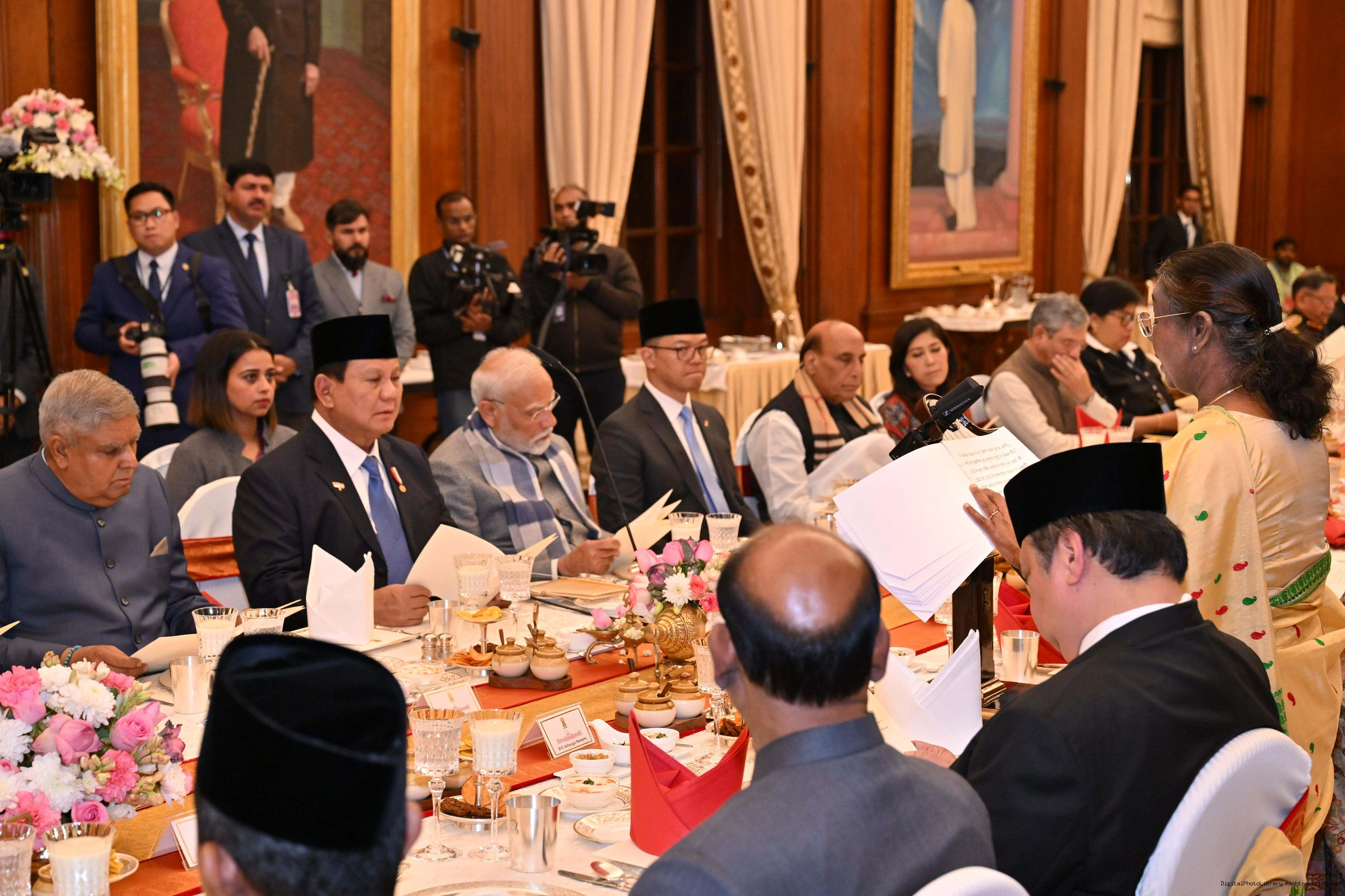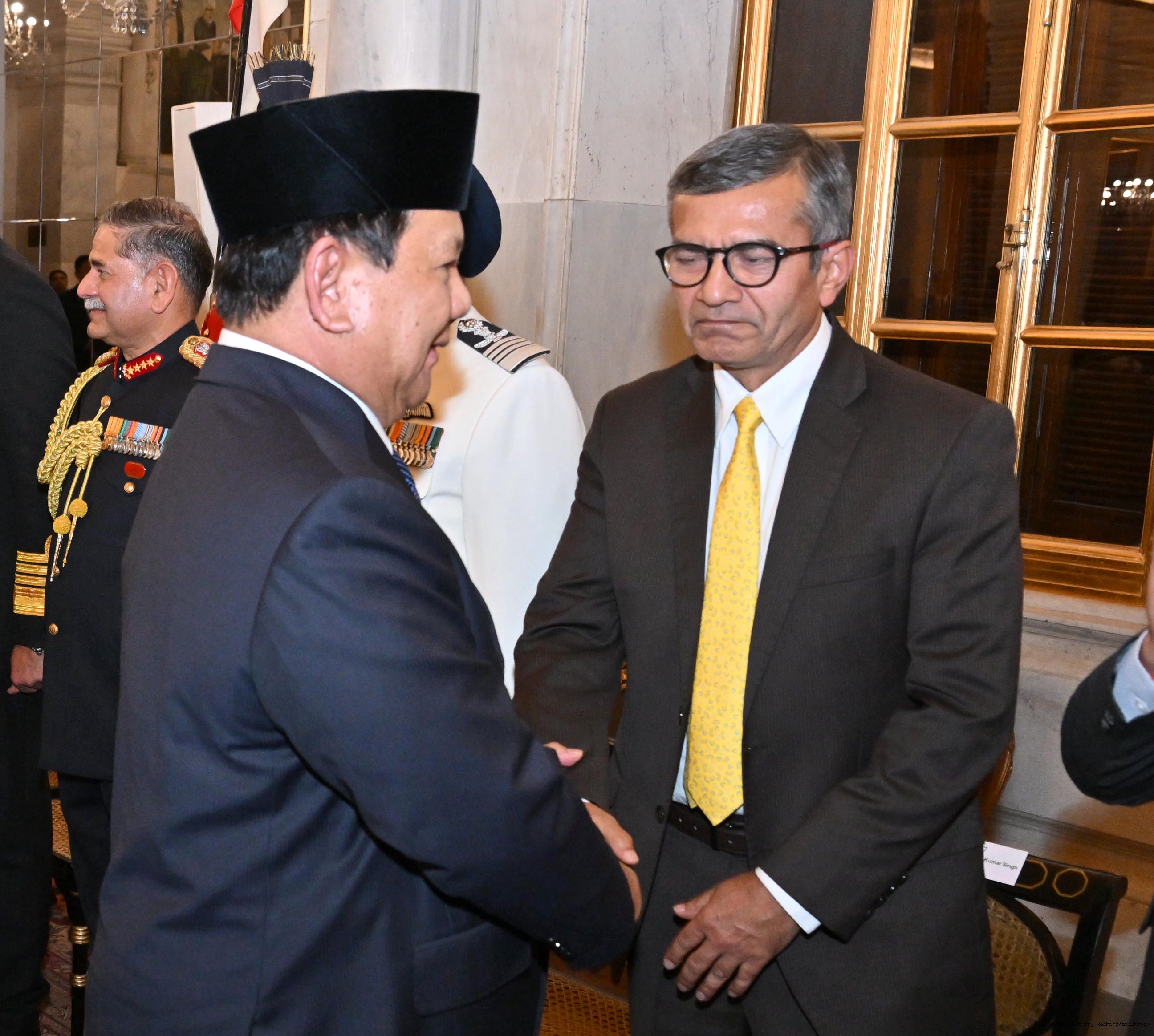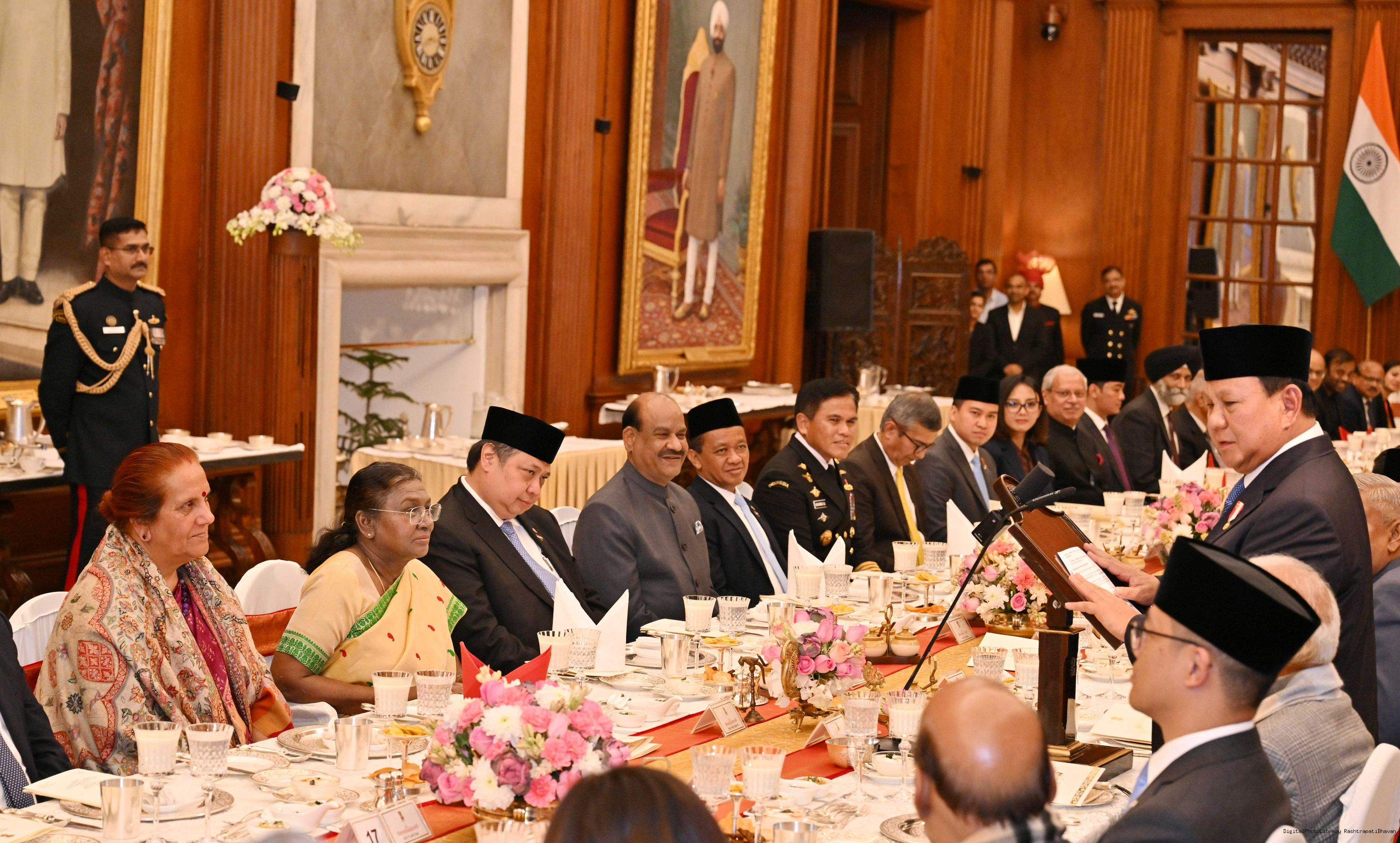 | Caption: | The President of India, Smt Droupadi Murmu hosted a banquet in his honour H.E. Mr Prabowo Subianto, President of the Republic of Indonesia at Rashtrapati Bhavan, New Delhi on January 25, 2025. |