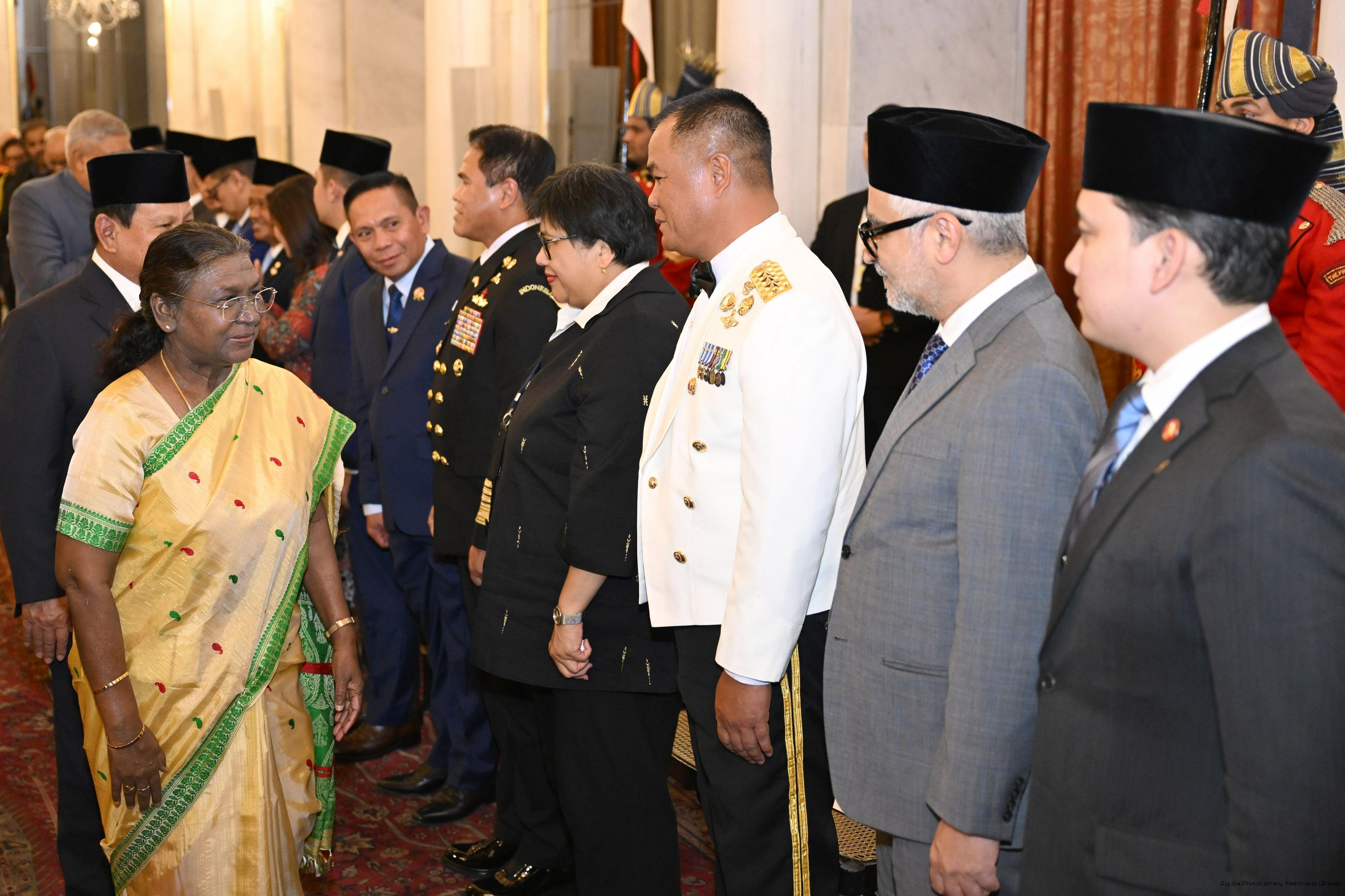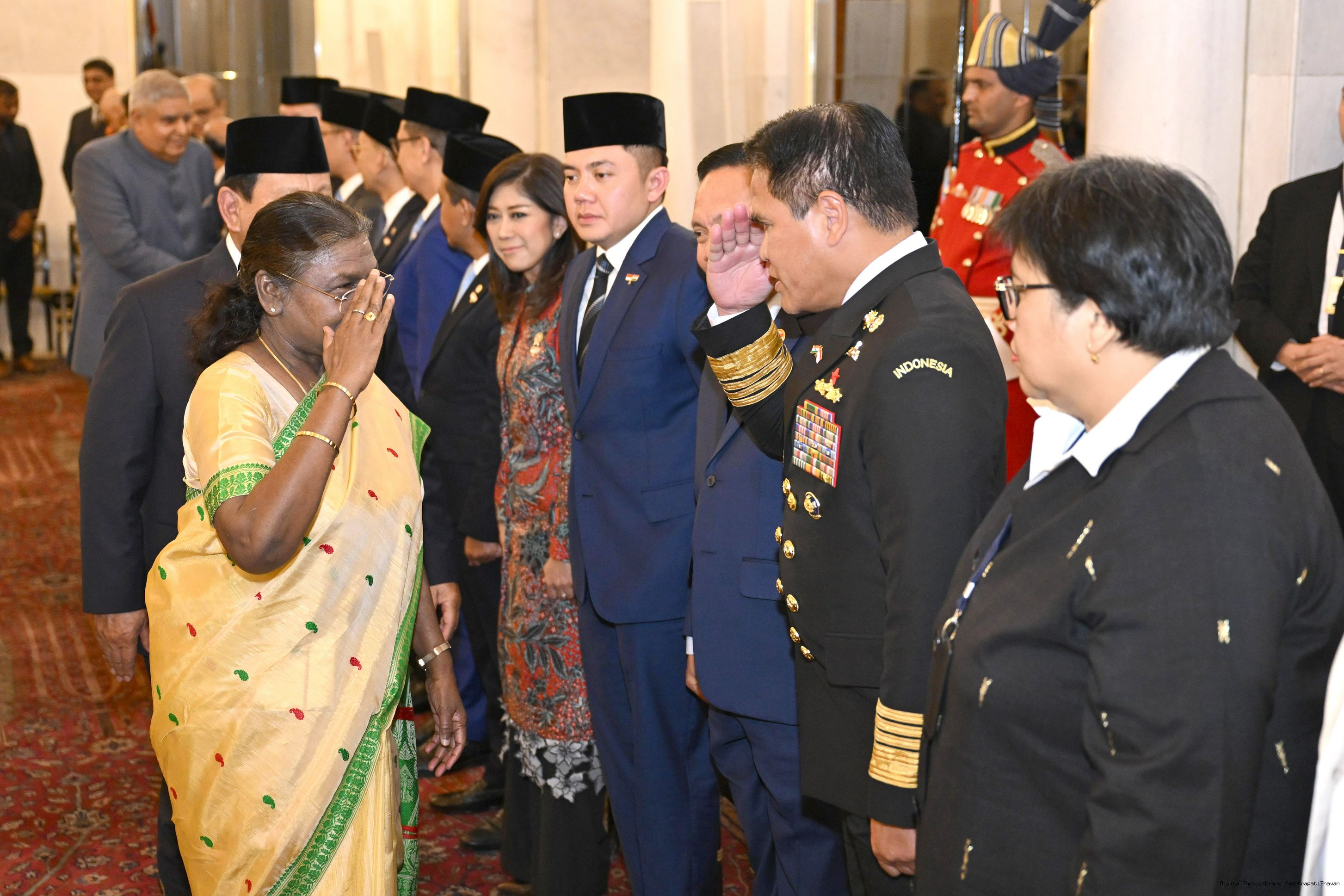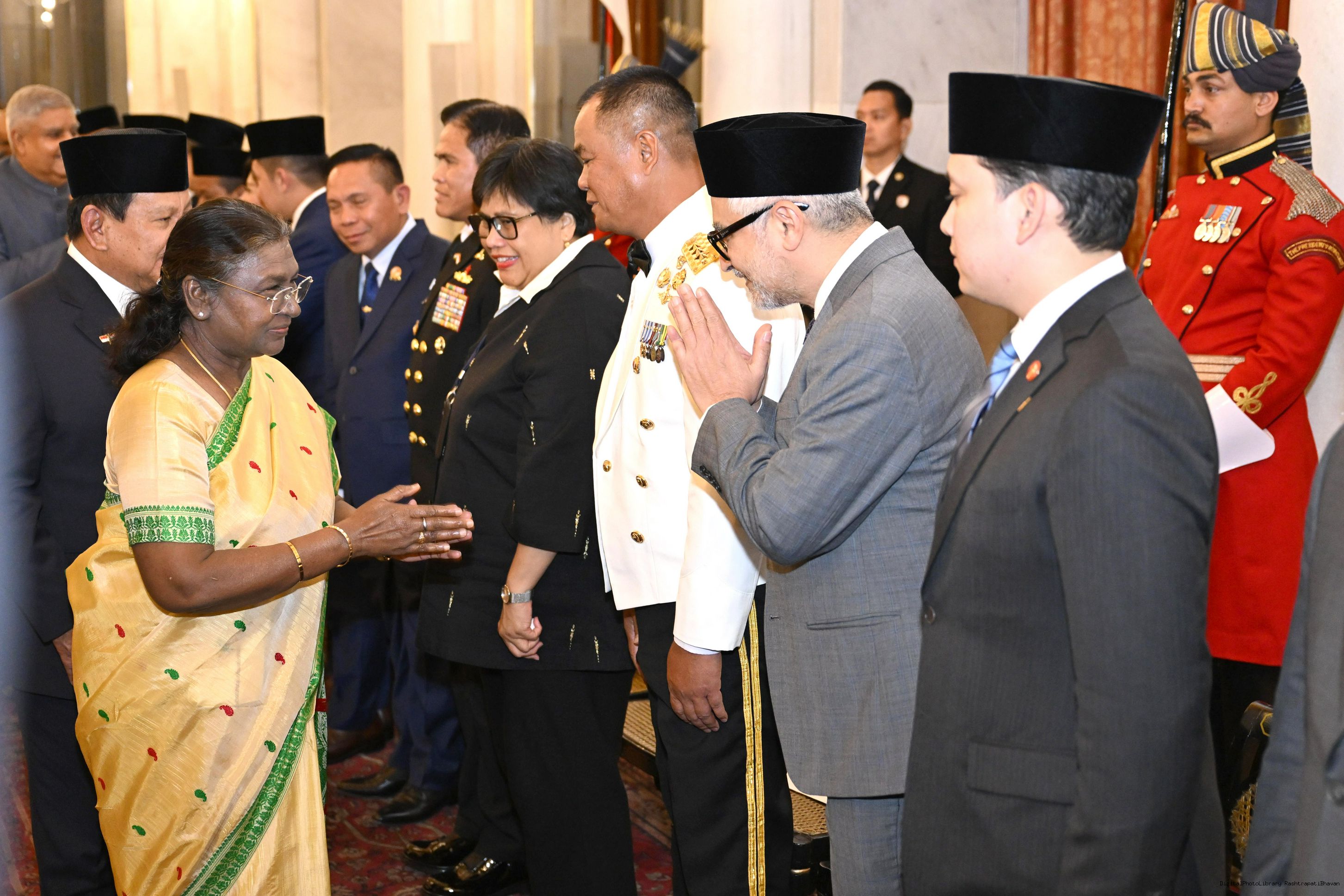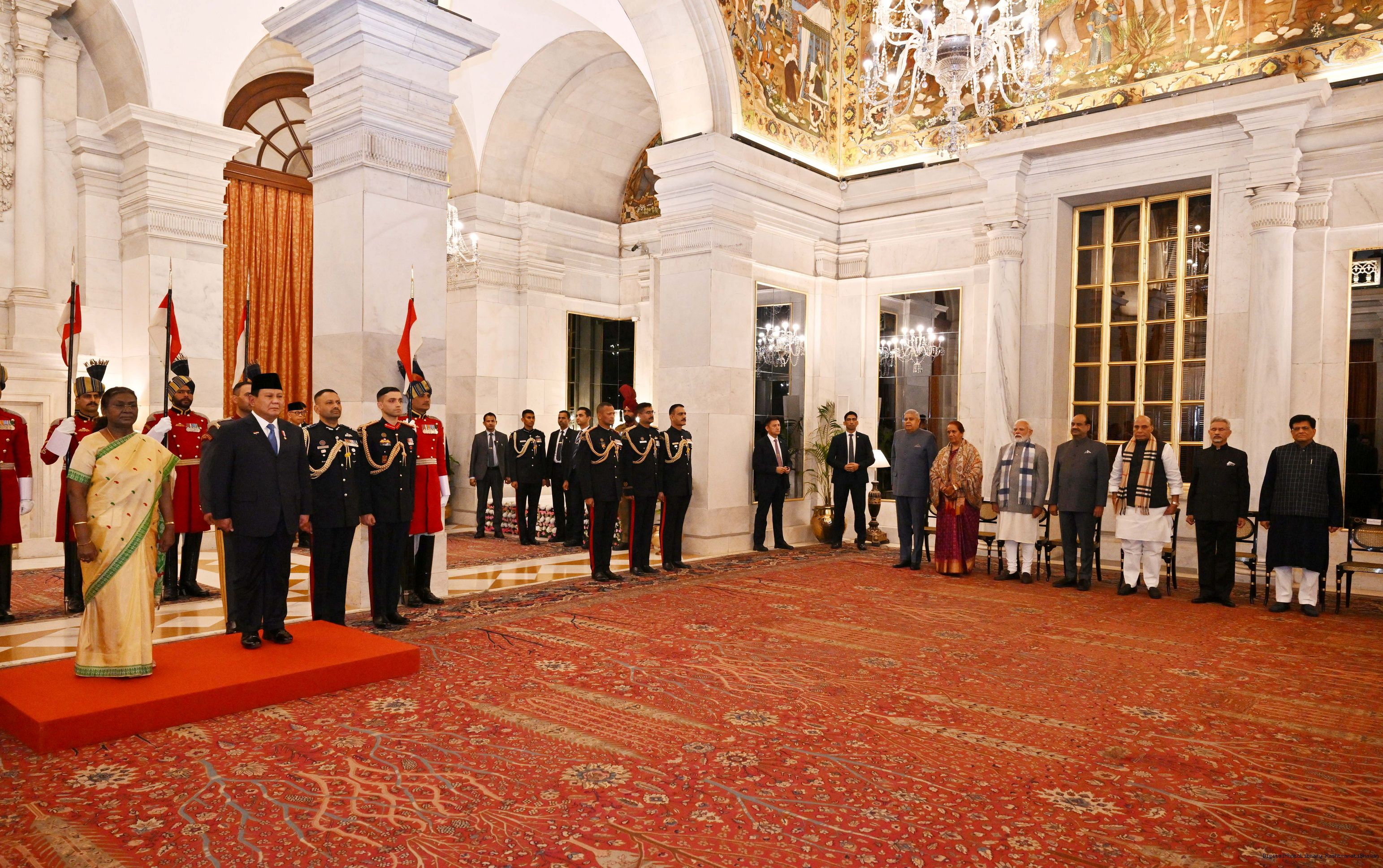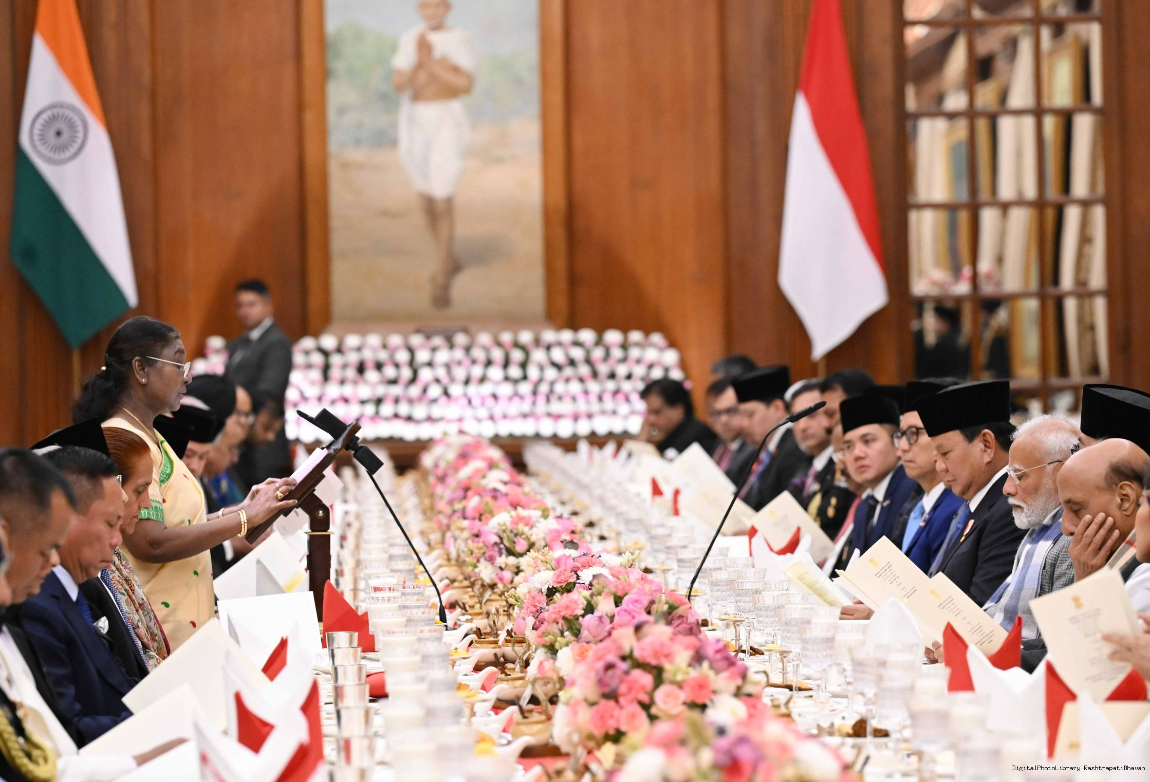 | Caption: | The President of India, Smt Droupadi Murmu hosted a banquet in his honour H.E. Mr Prabowo Subianto, President of the Republic of Indonesia at Rashtrapati Bhavan, New Delhi on January 25, 2025. |