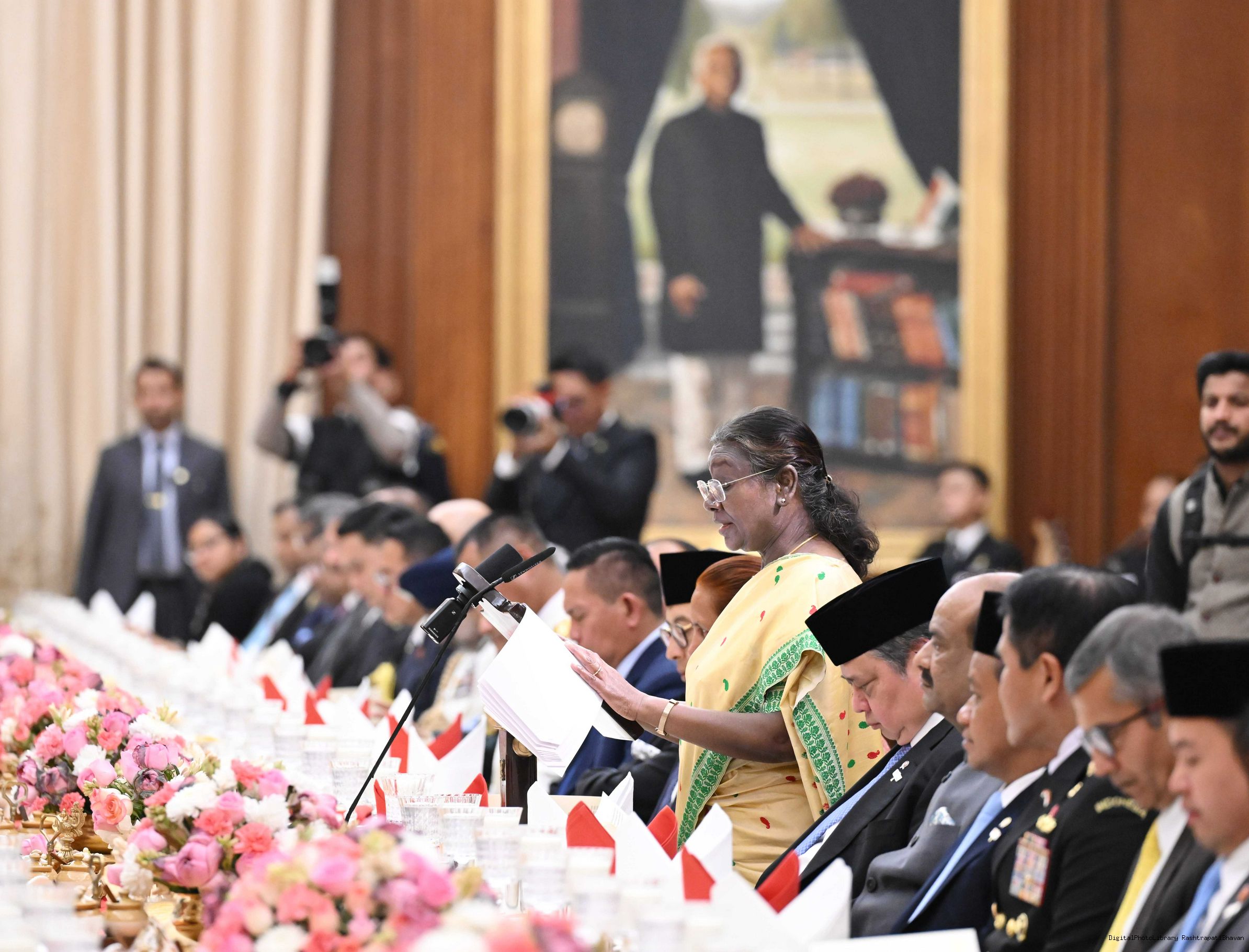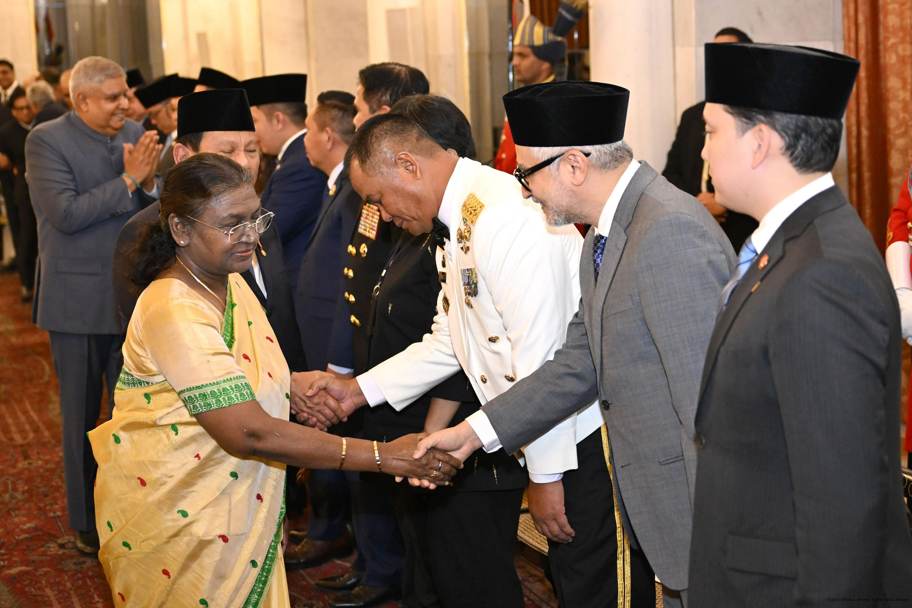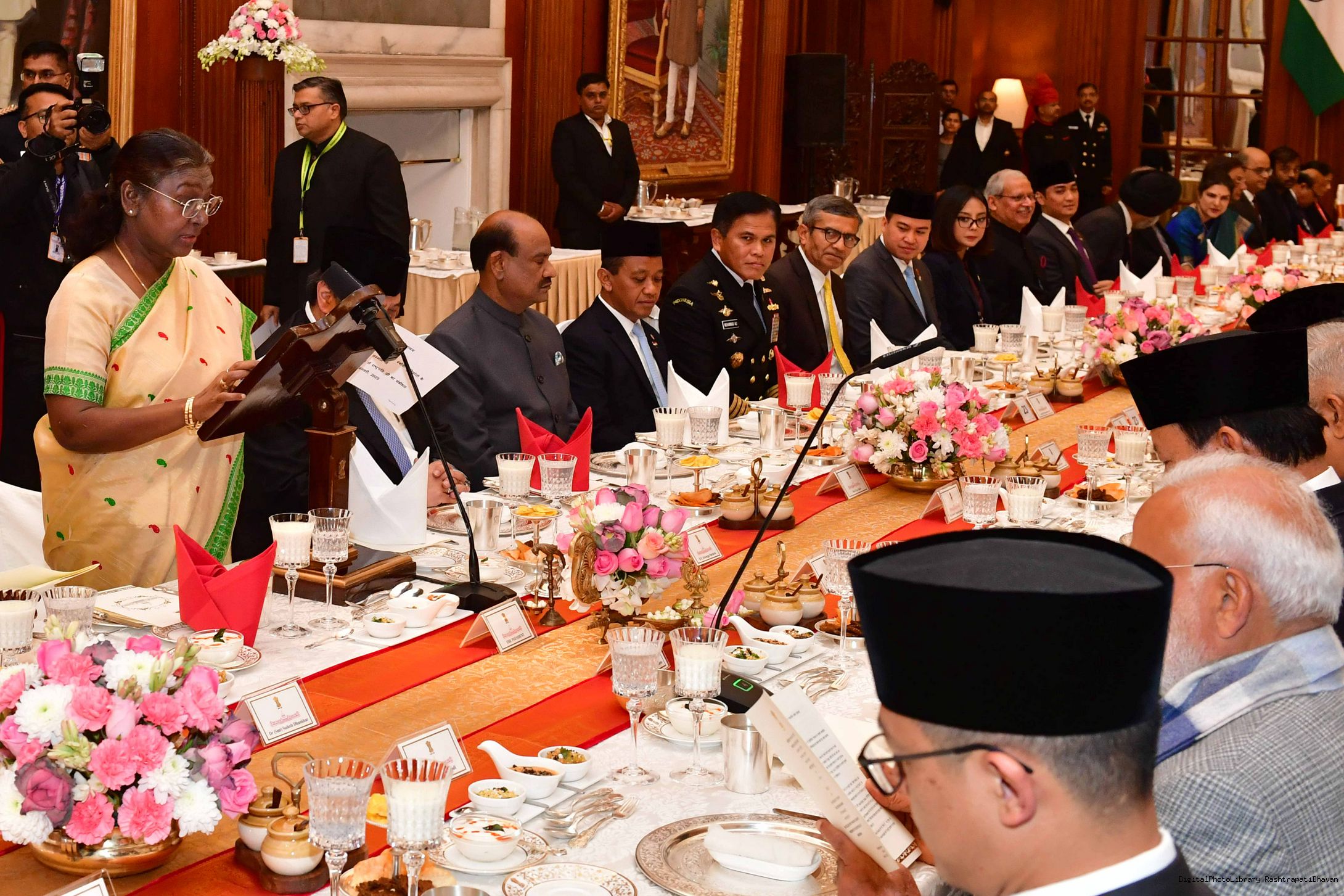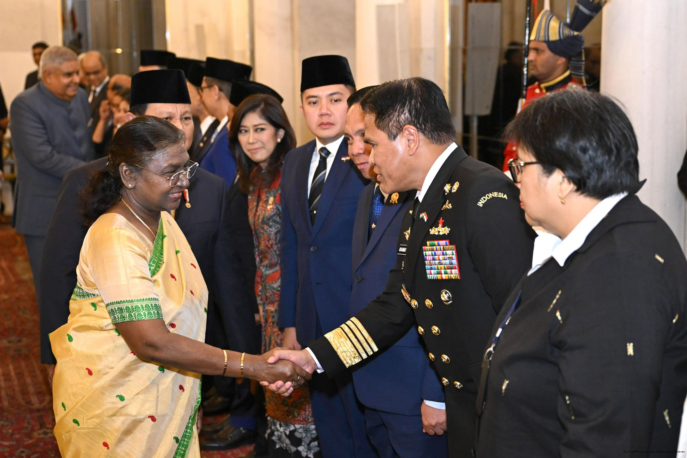 | Caption: | The President of India, Smt Droupadi Murmu hosted a banquet in his honour H.E. Mr Prabowo Subianto, President of the Republic of Indonesia at Rashtrapati Bhavan, New Delhi on January 25, 2025. |