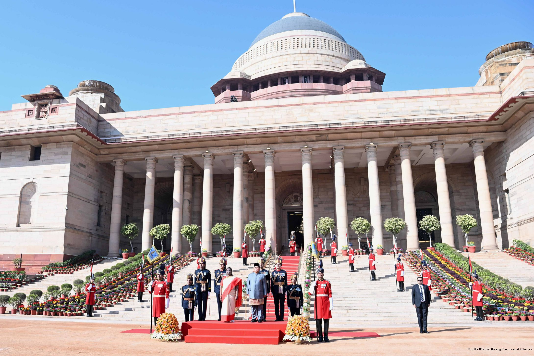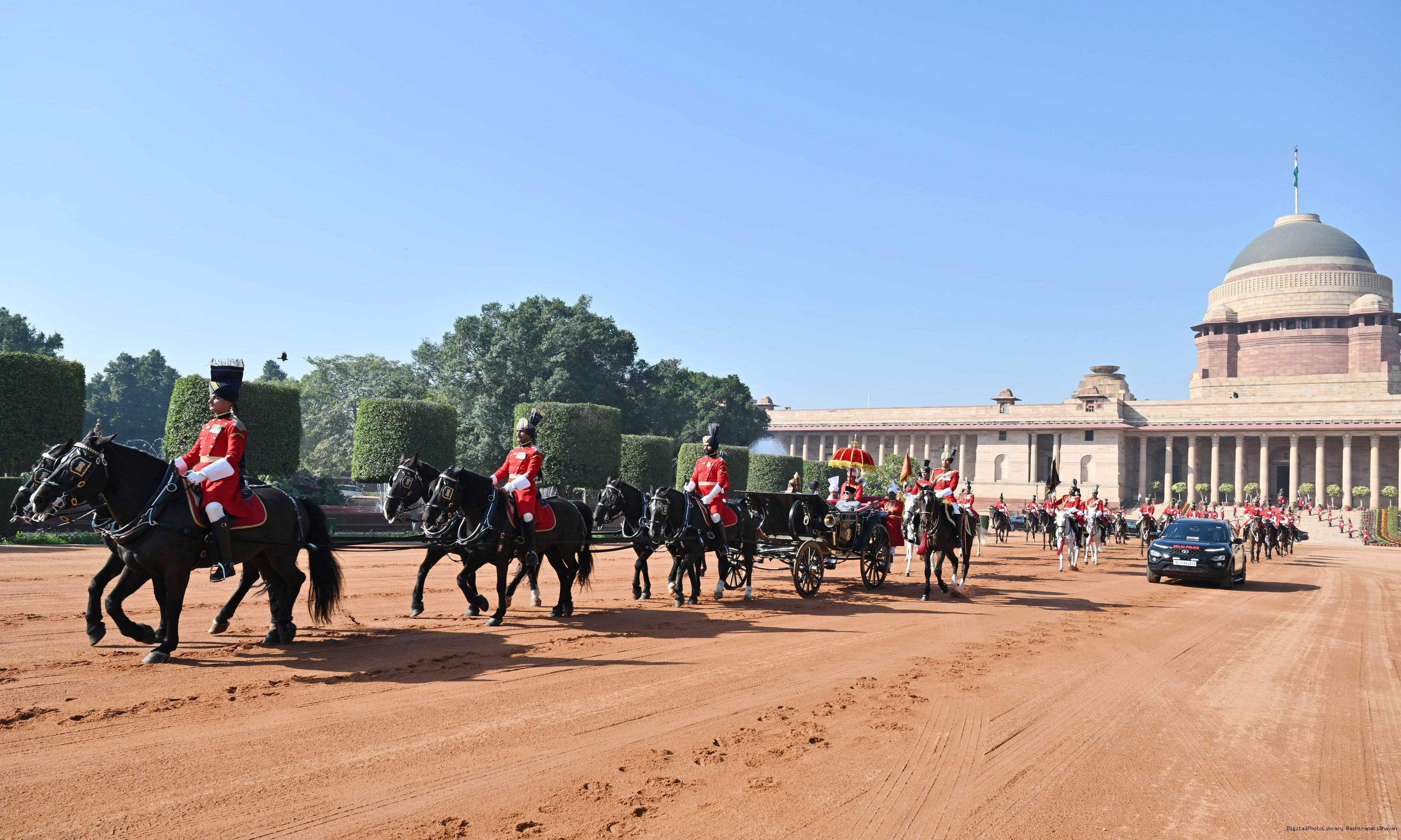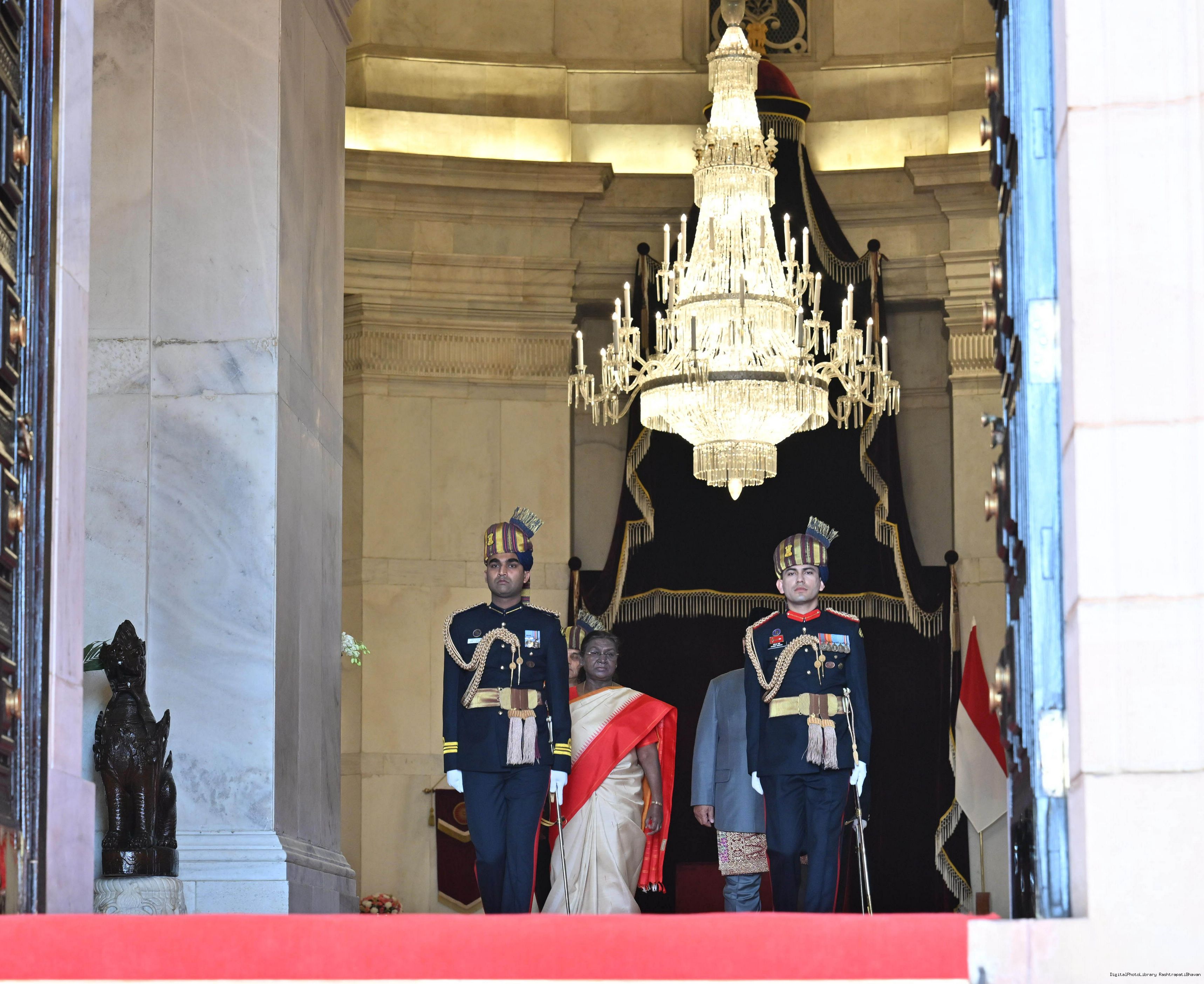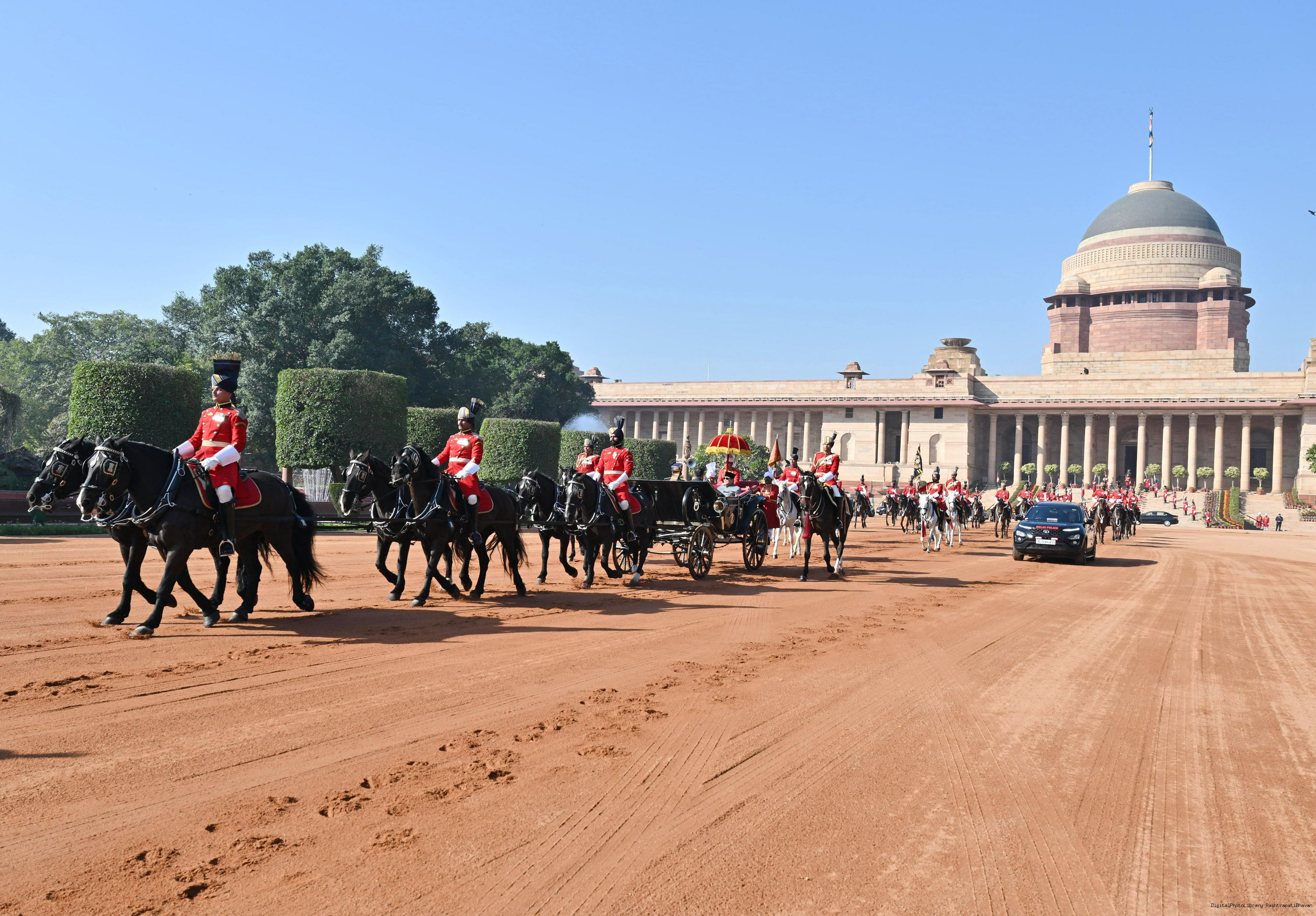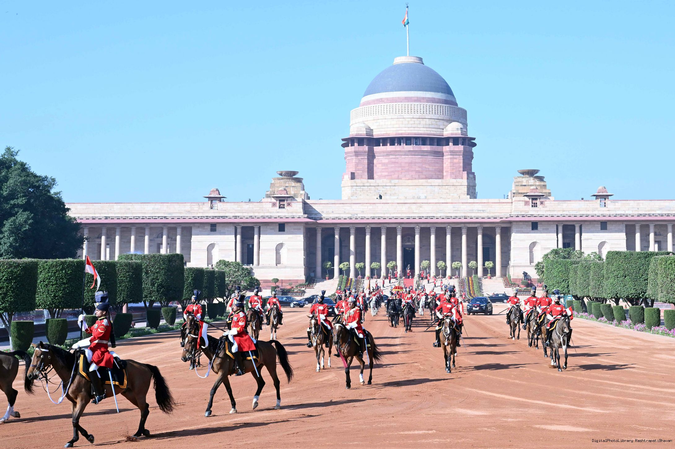 | Caption: | The PBG presenting the National Salute to the President of India, Smt. Droupadi Murmu at Rashtrapati Bhavan in New Delhi on January 26, 2025. |