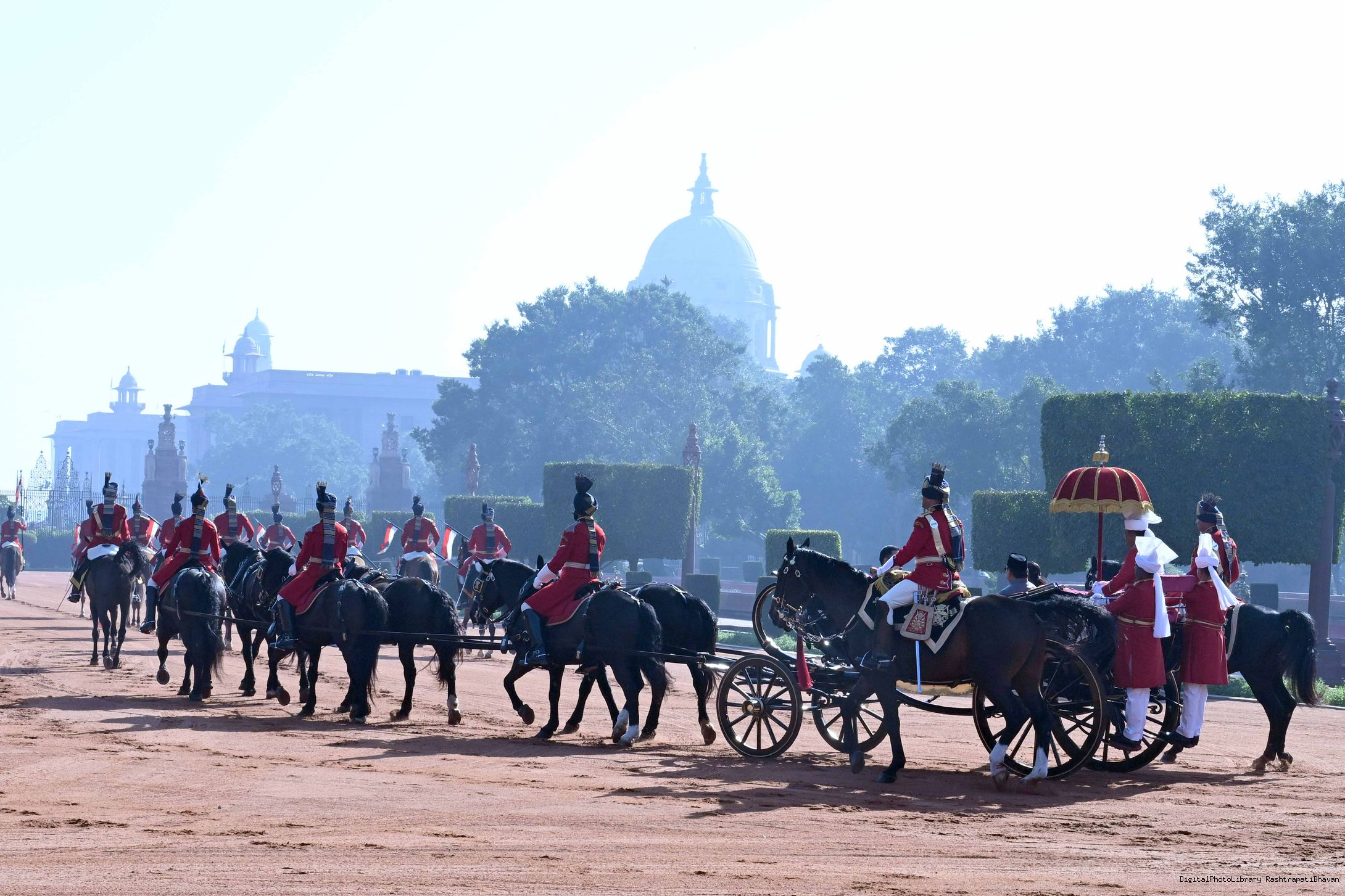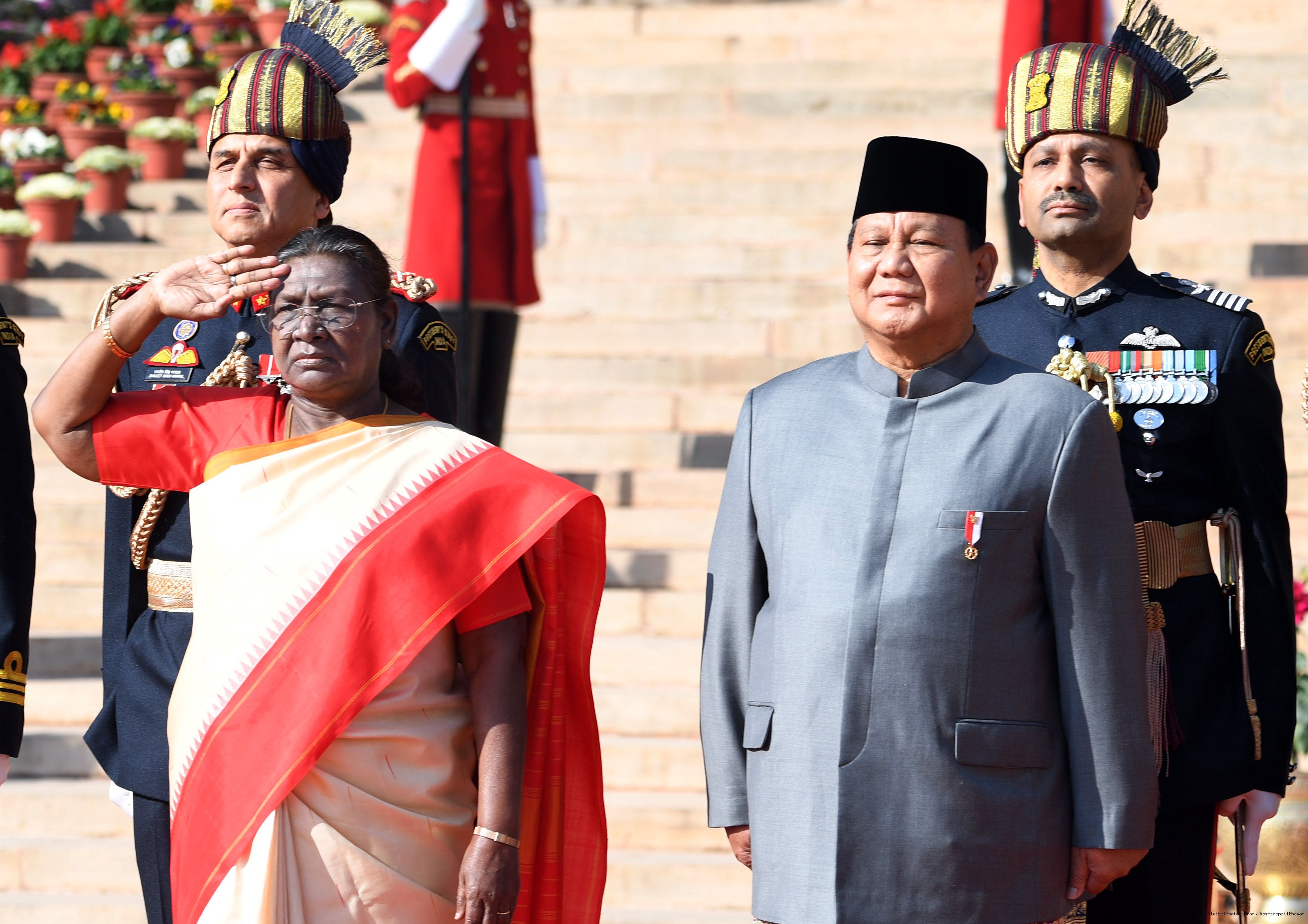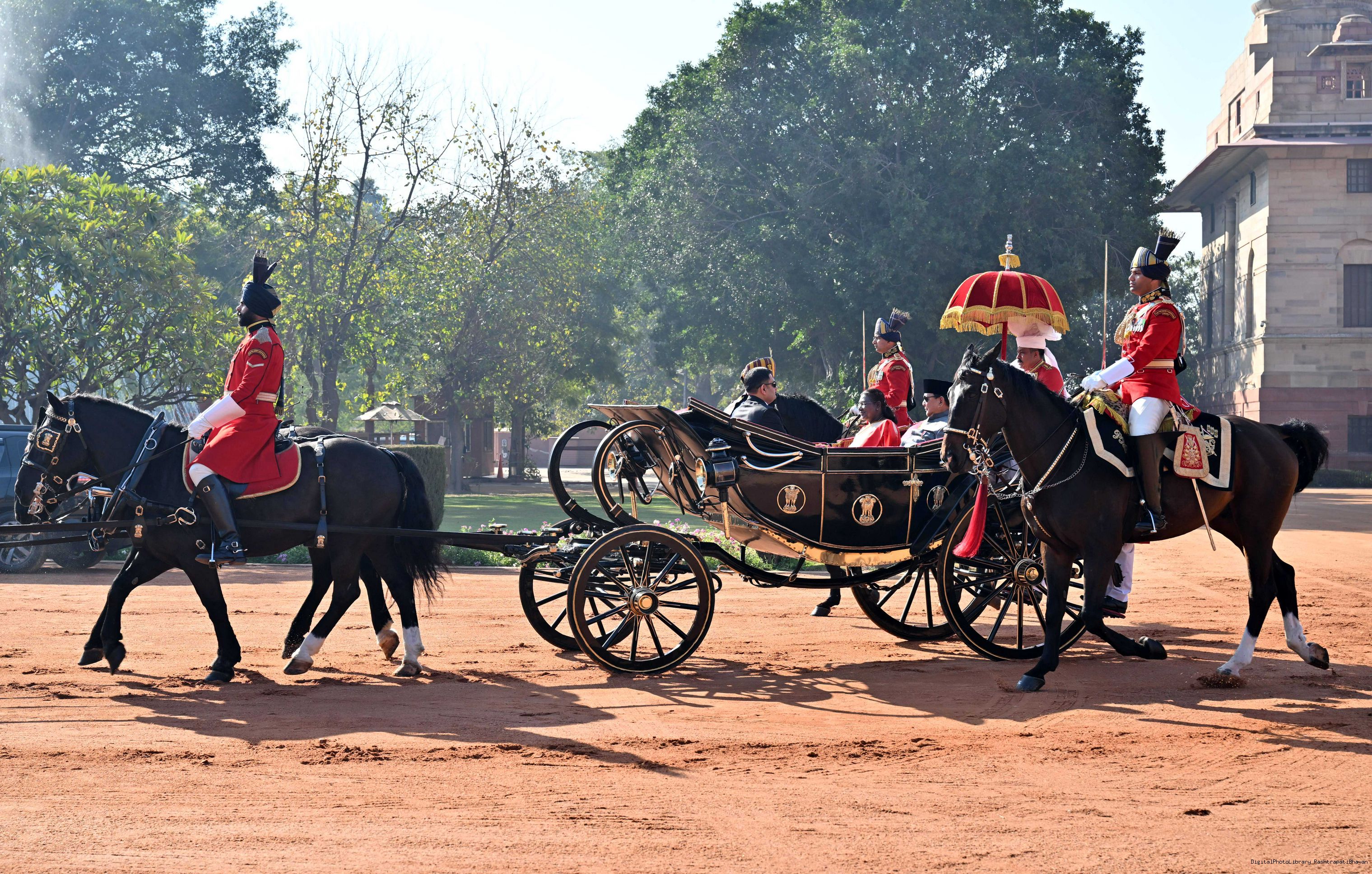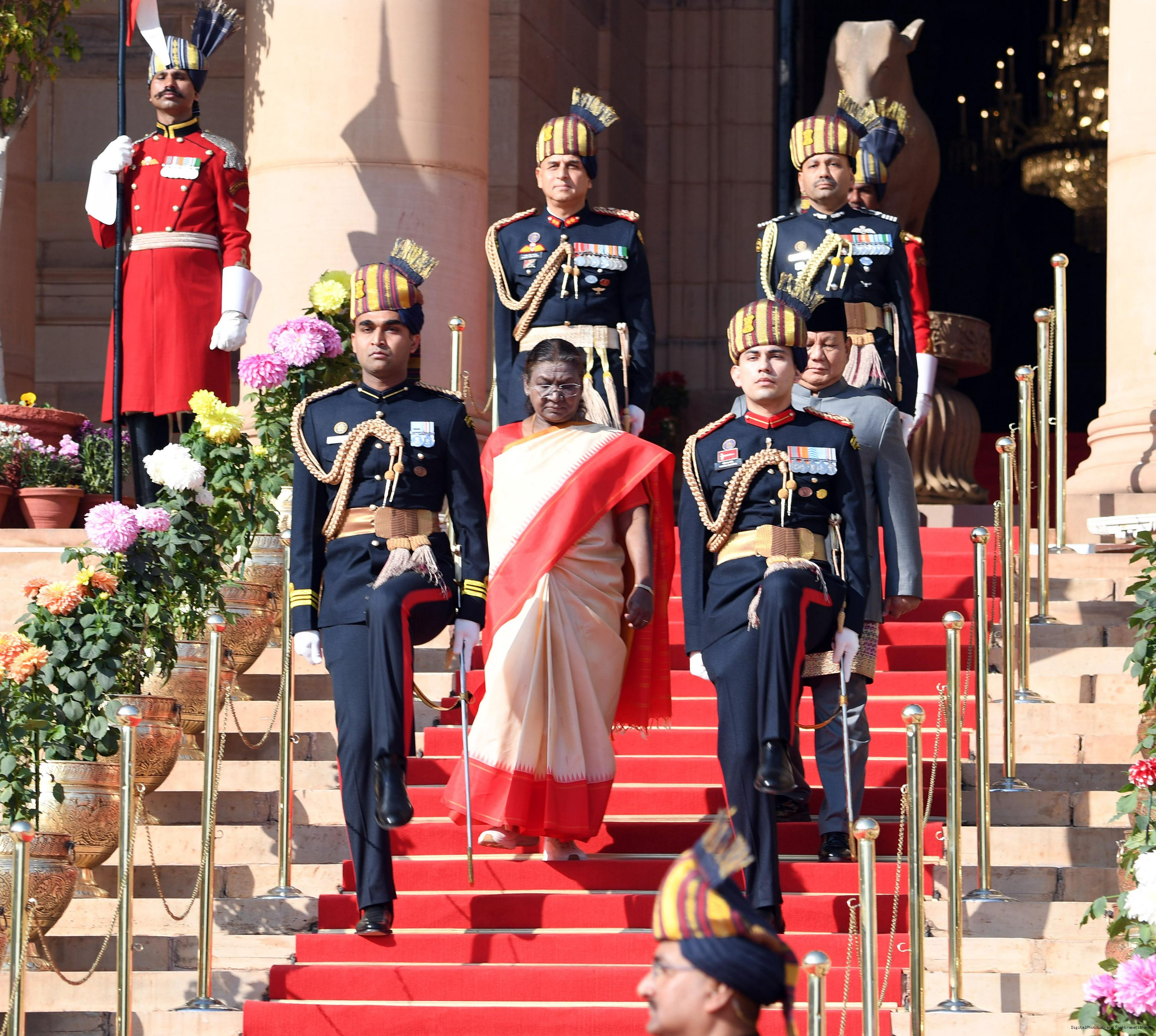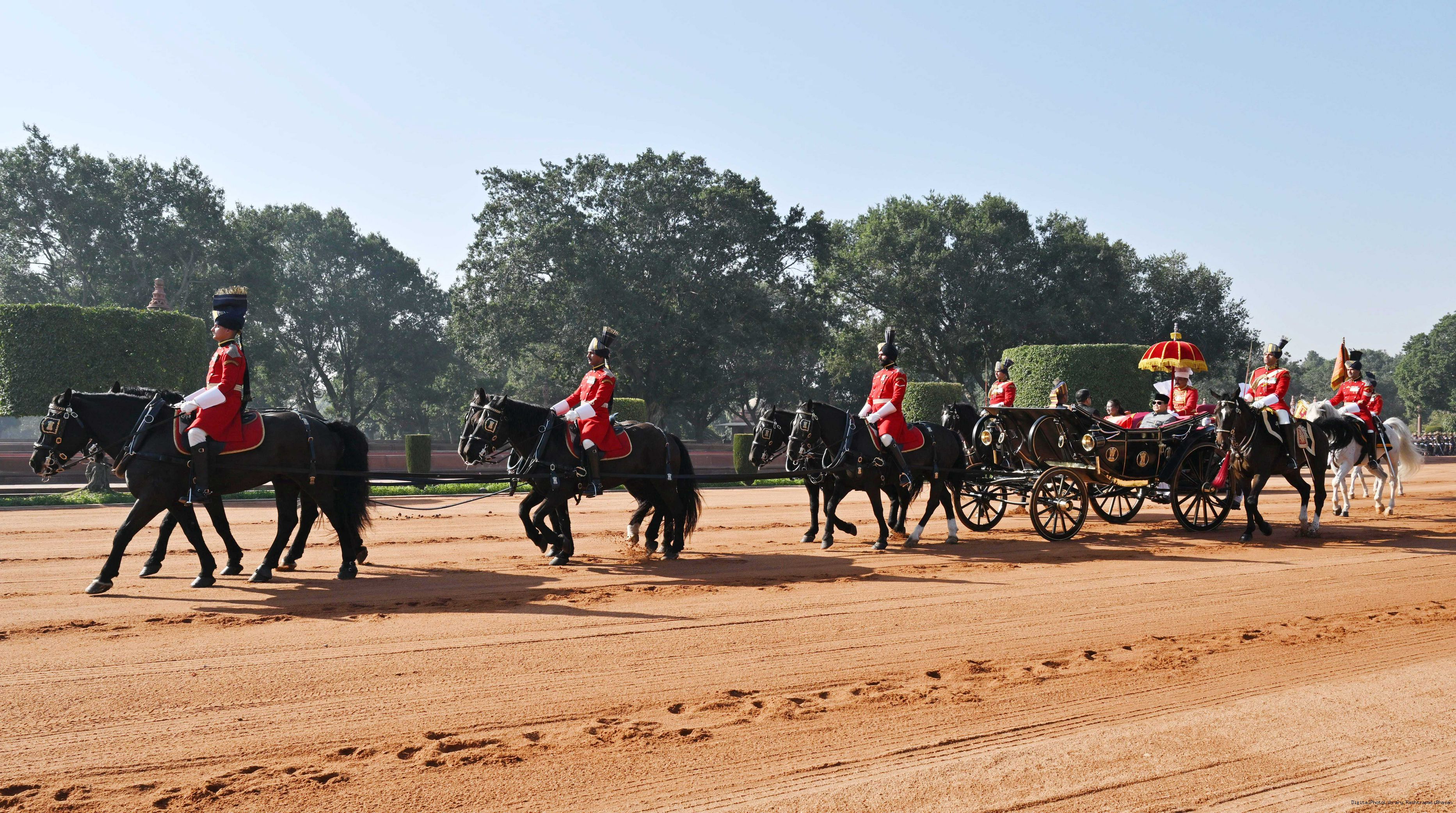 | Caption: | The PBG presenting the National Salute to the President of India, Smt. Droupadi Murmu at Rashtrapati Bhavan in New Delhi on January 26, 2025. |