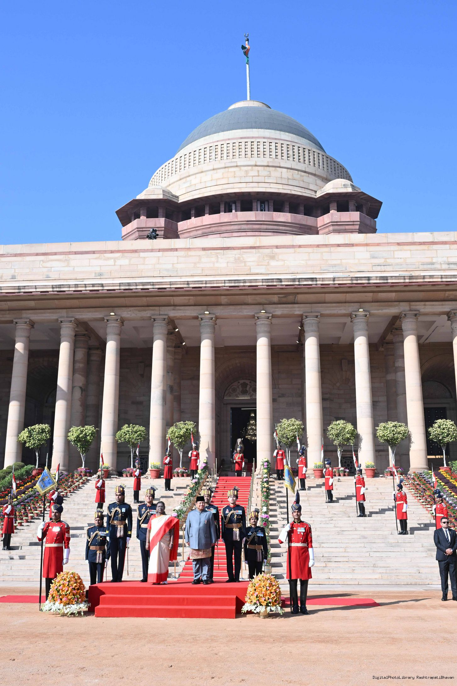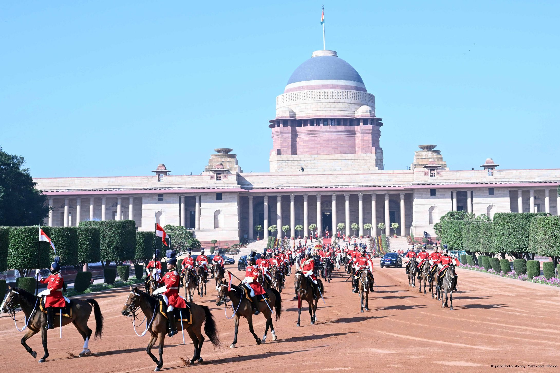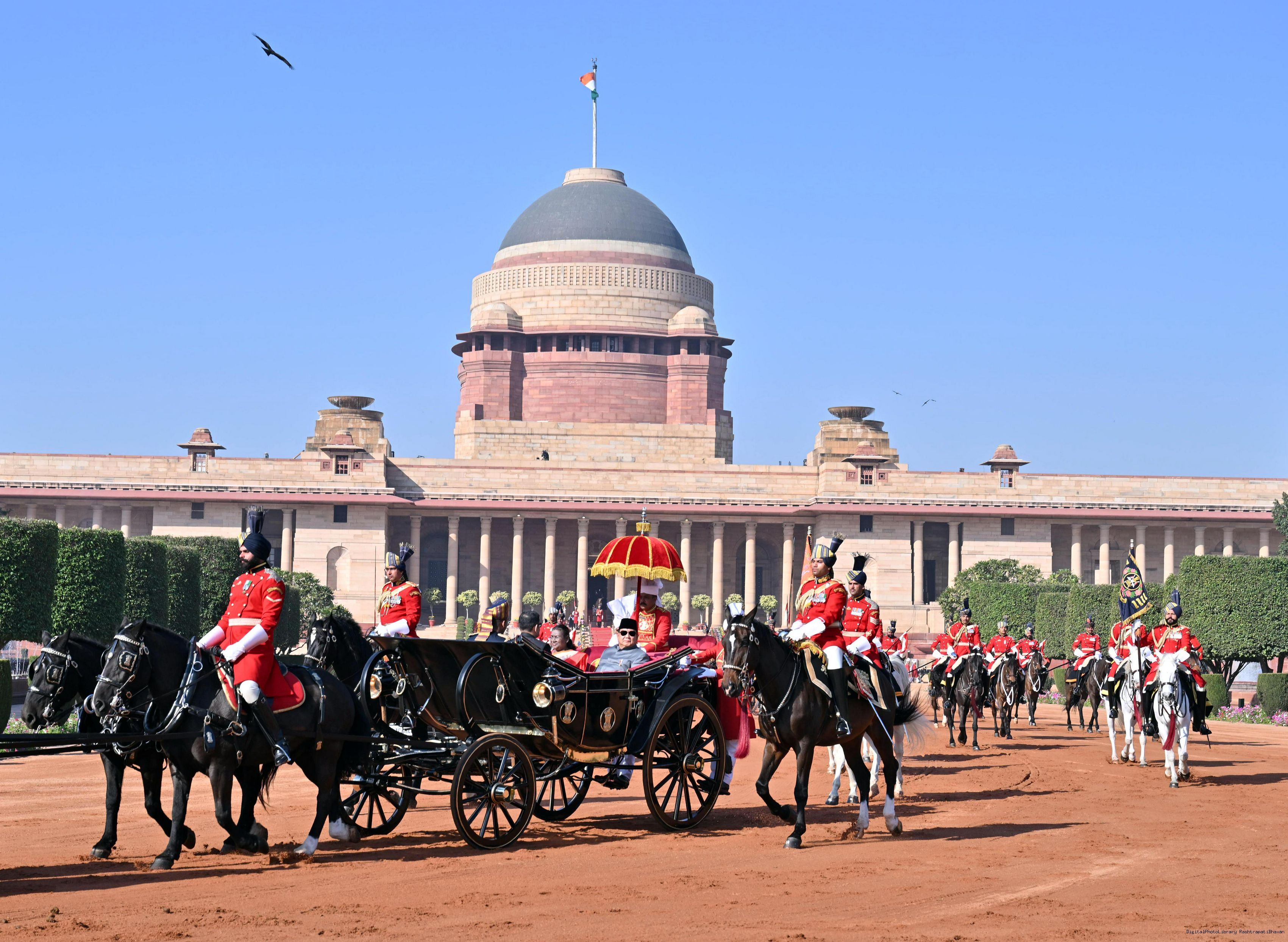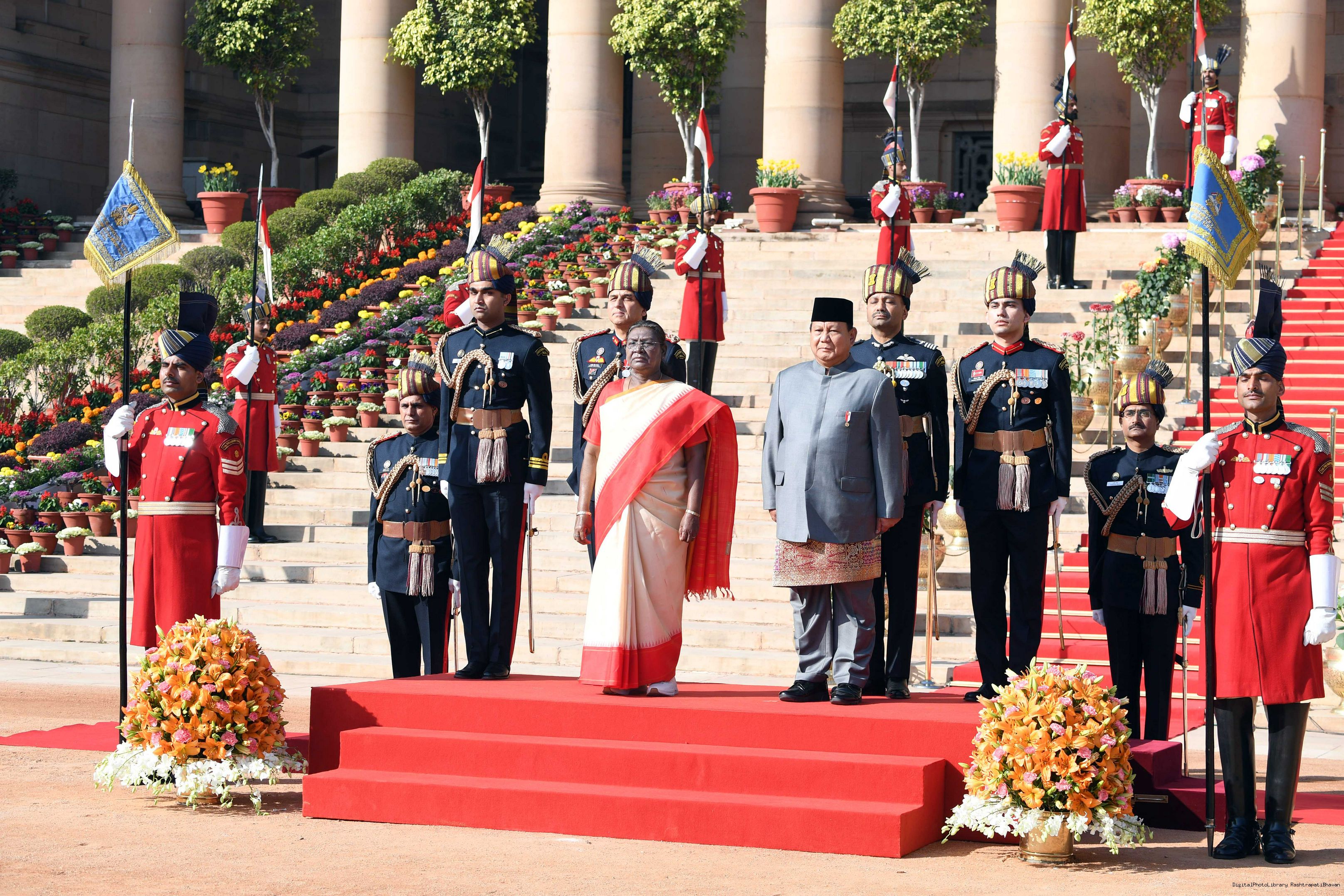 | Caption: | The PBG presenting the National Salute to the President of India, Smt. Droupadi Murmu at Rashtrapati Bhavan in New Delhi on January 26, 2025. |